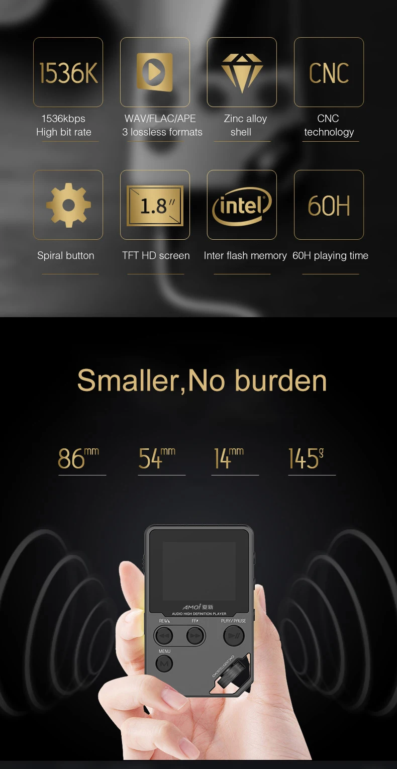 2.Двухчастотный декодер DAC,Поддержка DSD lossless play.