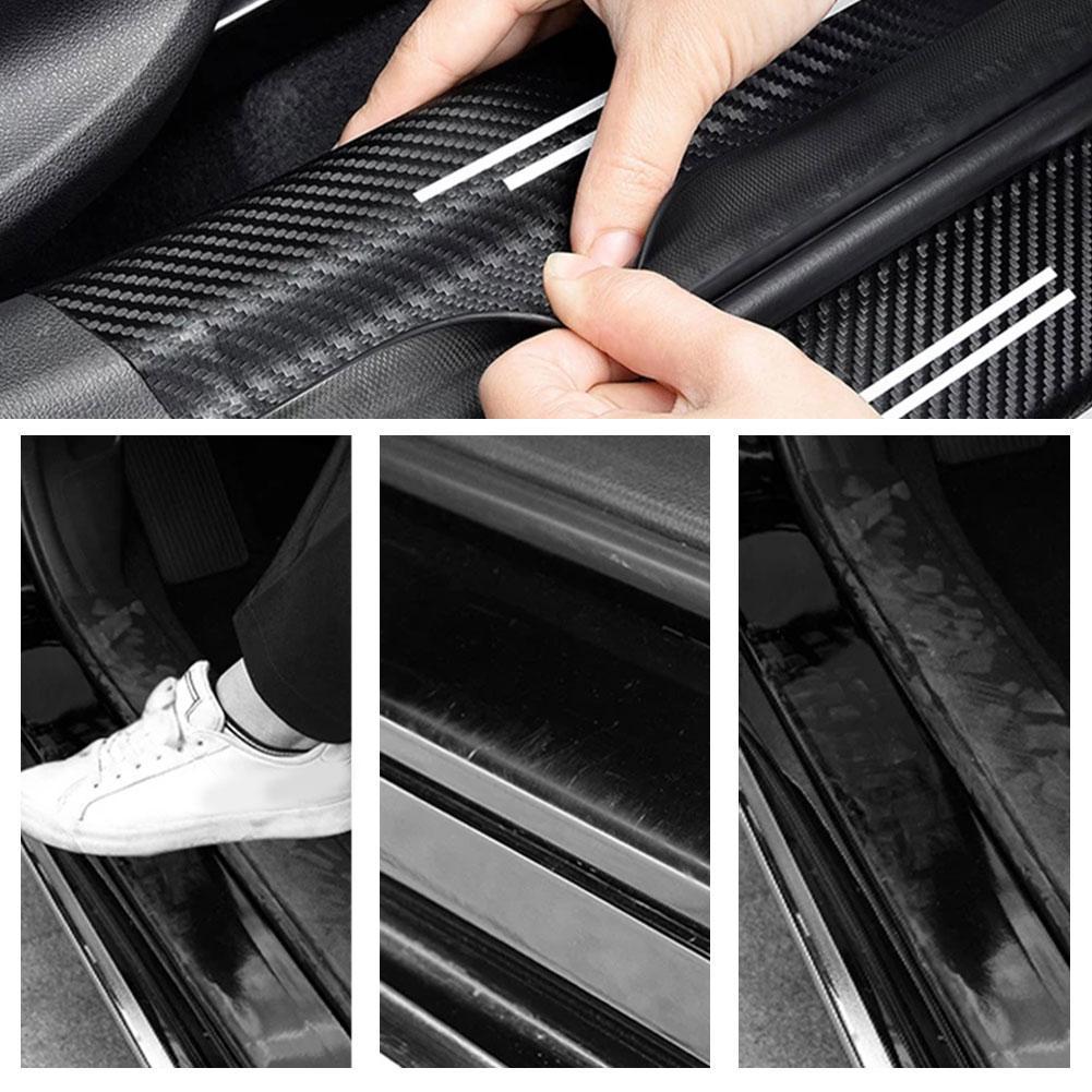 Высококачественный материал: 4D карбоновая черная наклейка. Накладка на порог изготовлена из виниловой пленки с текстурой из углеродного волокна, водонепроницаемая и устойчивая к высоким температурам. После нескольких тестов в высокие температуры и дождливые дни мы обнаружили, что он не плавится и не трескается. Высокое качество-наша цель, и мы верим в вас.