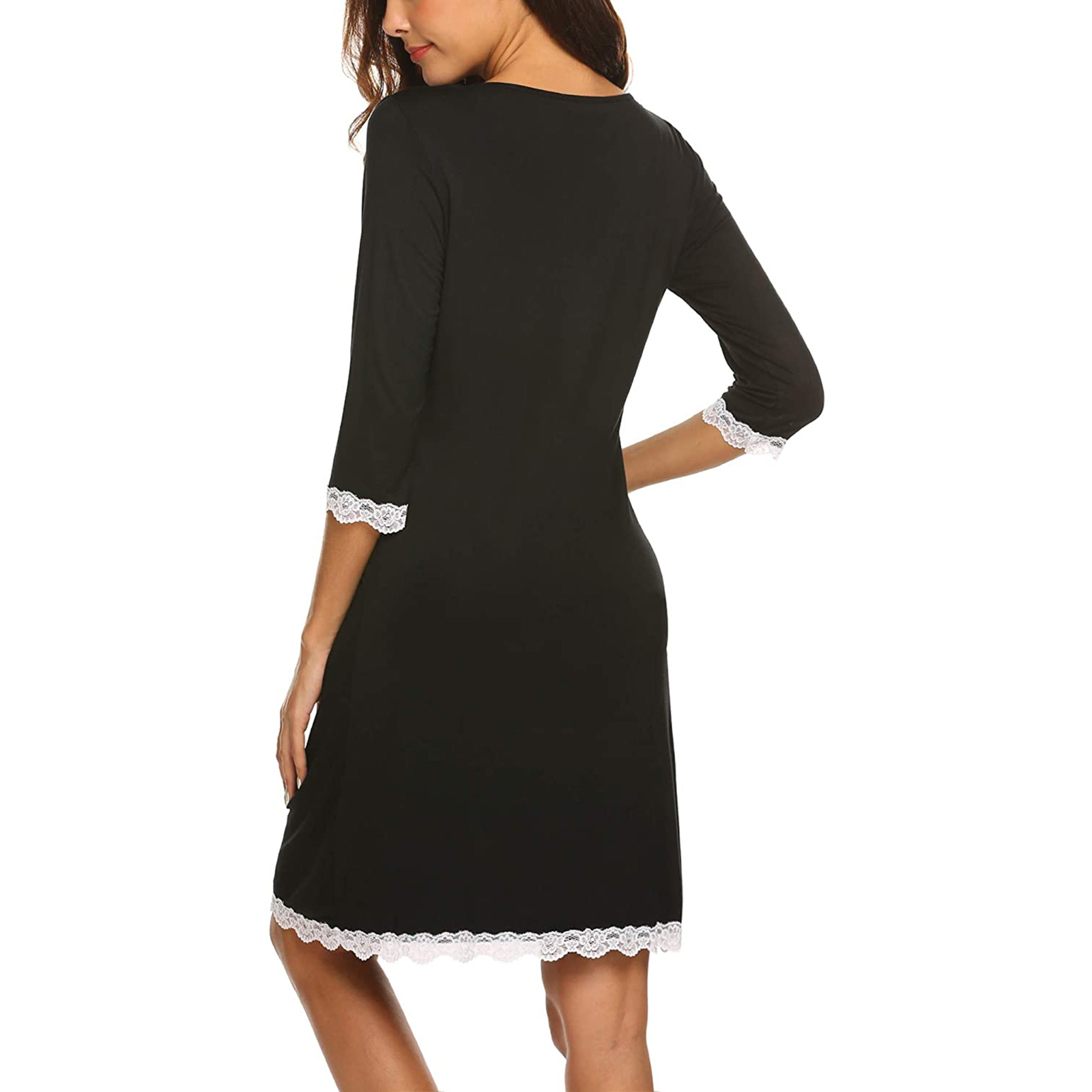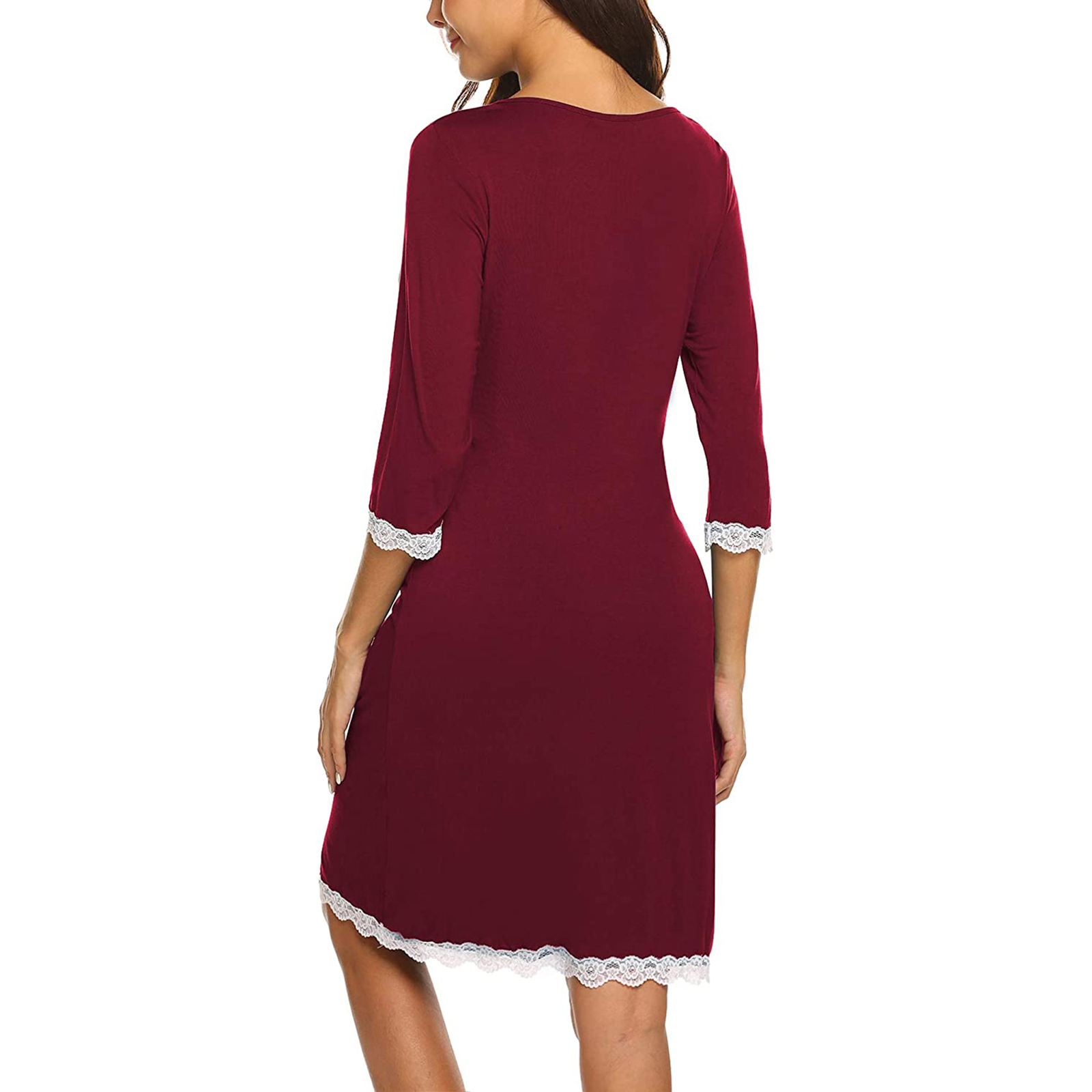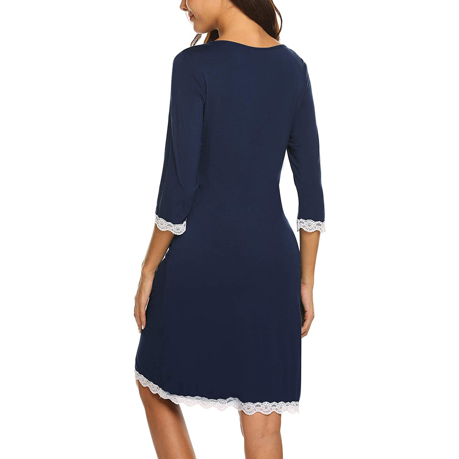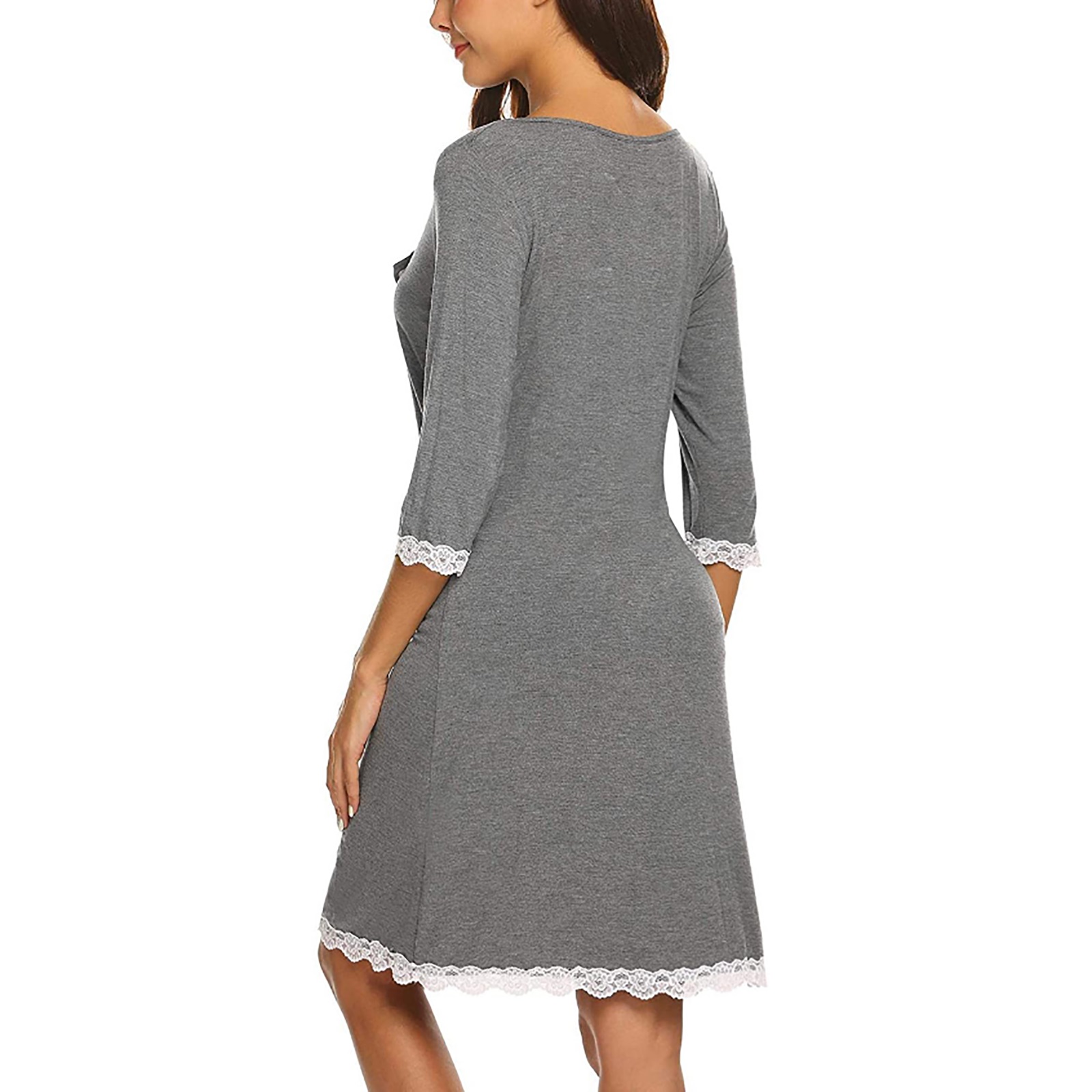 Платье со средним рукавом и круглым вырезом, Лоскутные кружева на манжетах и подоле, пуговицы спереди на груди, что очень удобно для кормления грудью.