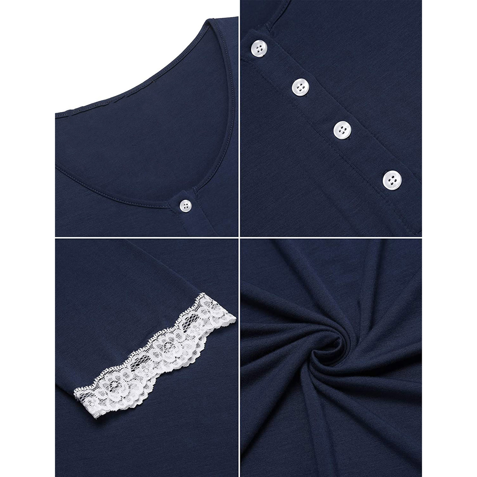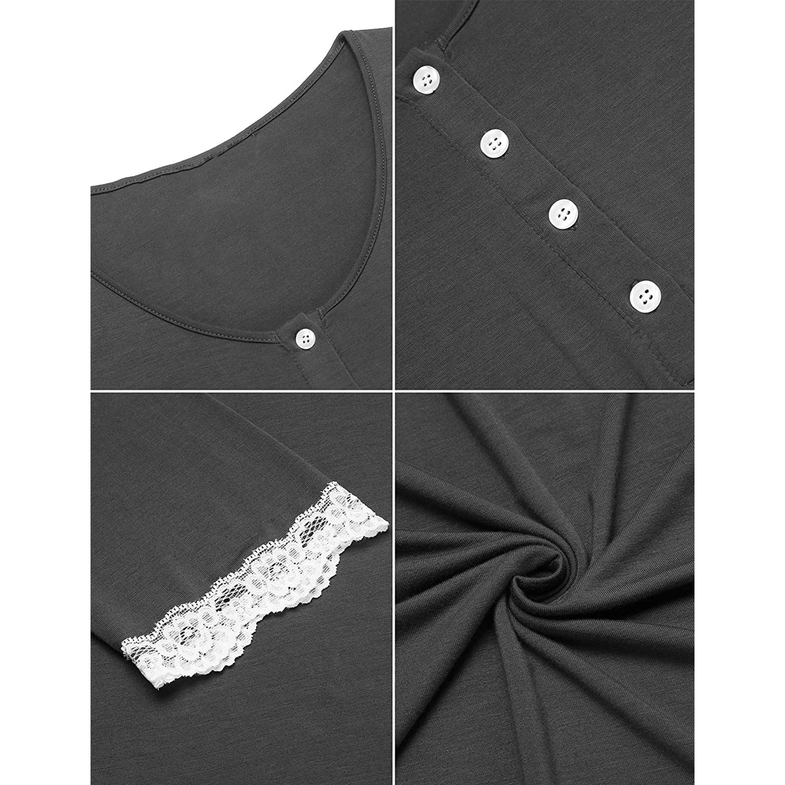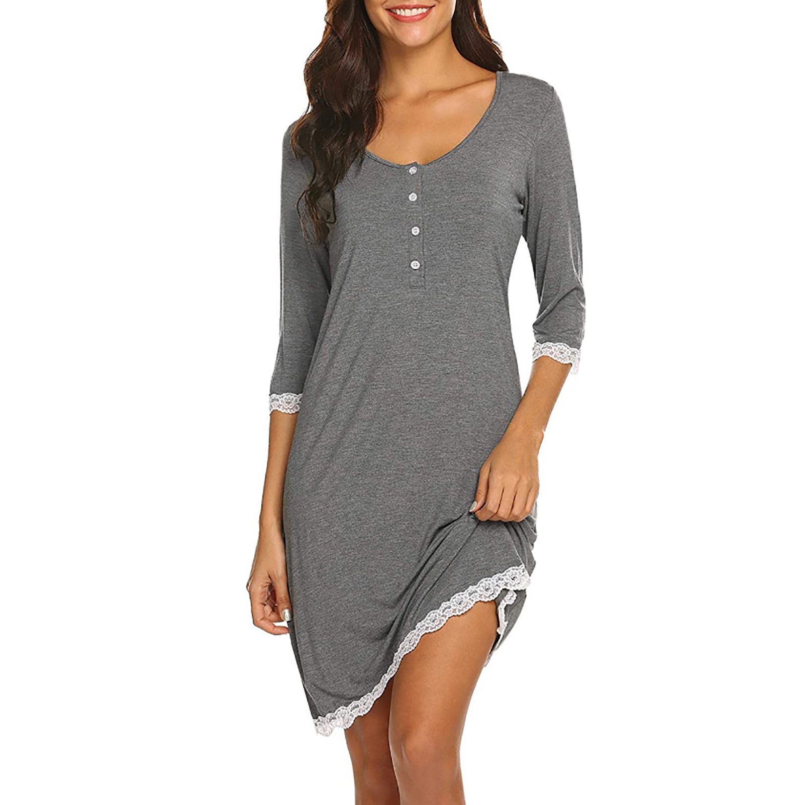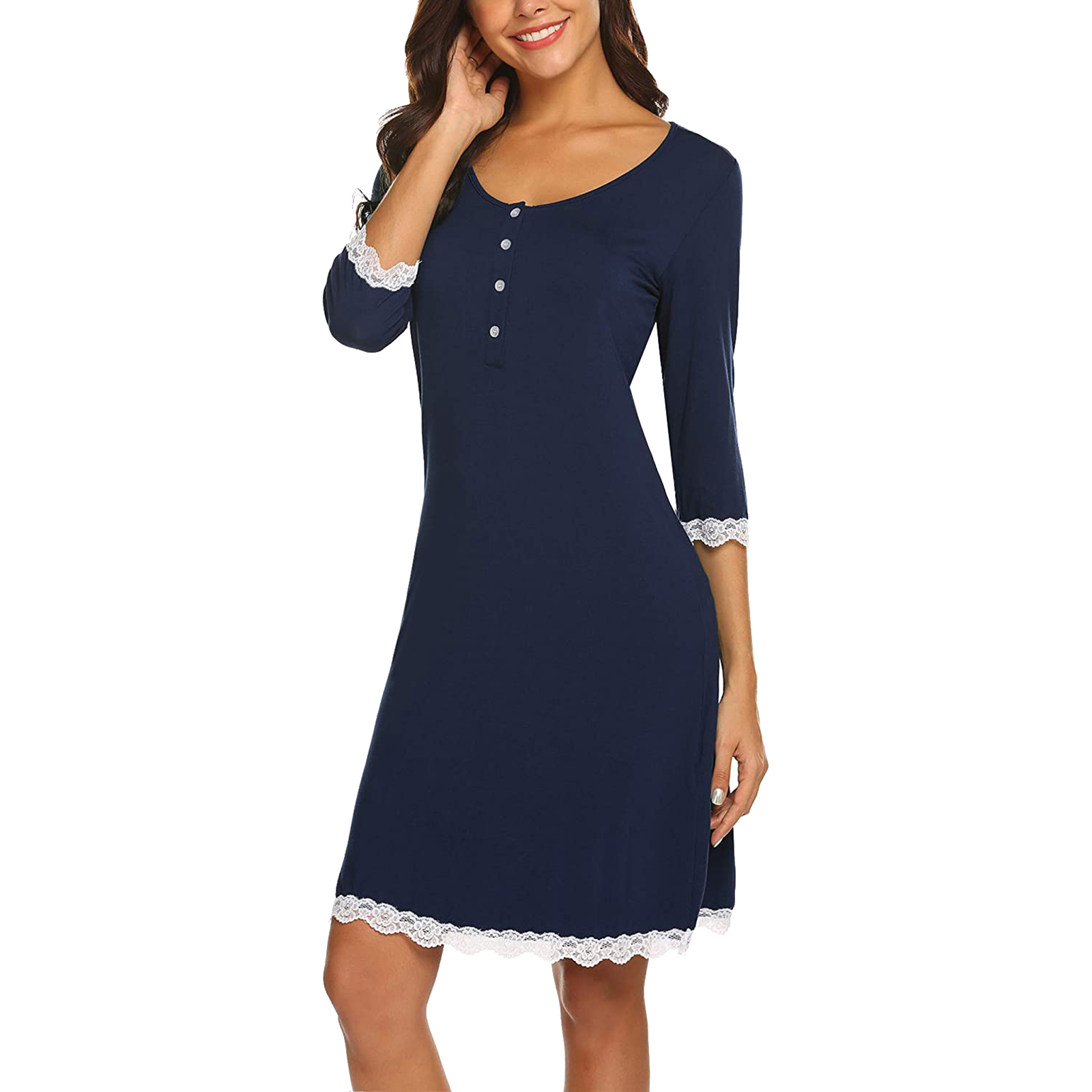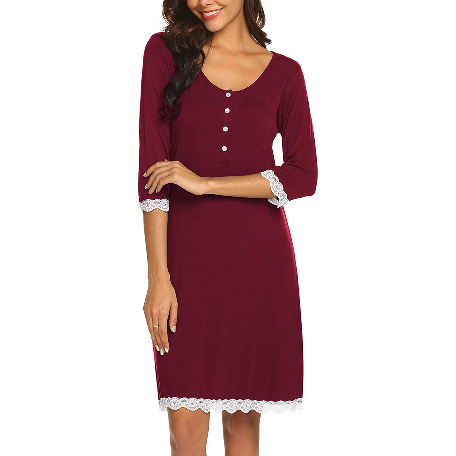 Платье со средним рукавом и круглым вырезом, Лоскутные кружева на манжетах и подоле, пуговицы спереди на груди, что очень удобно для кормления грудью.