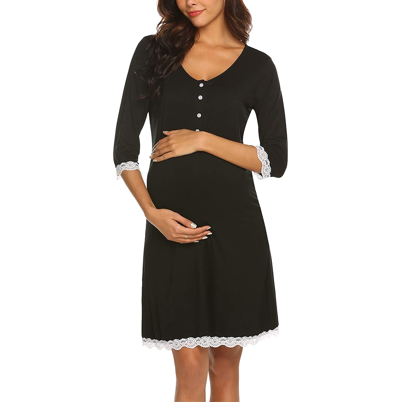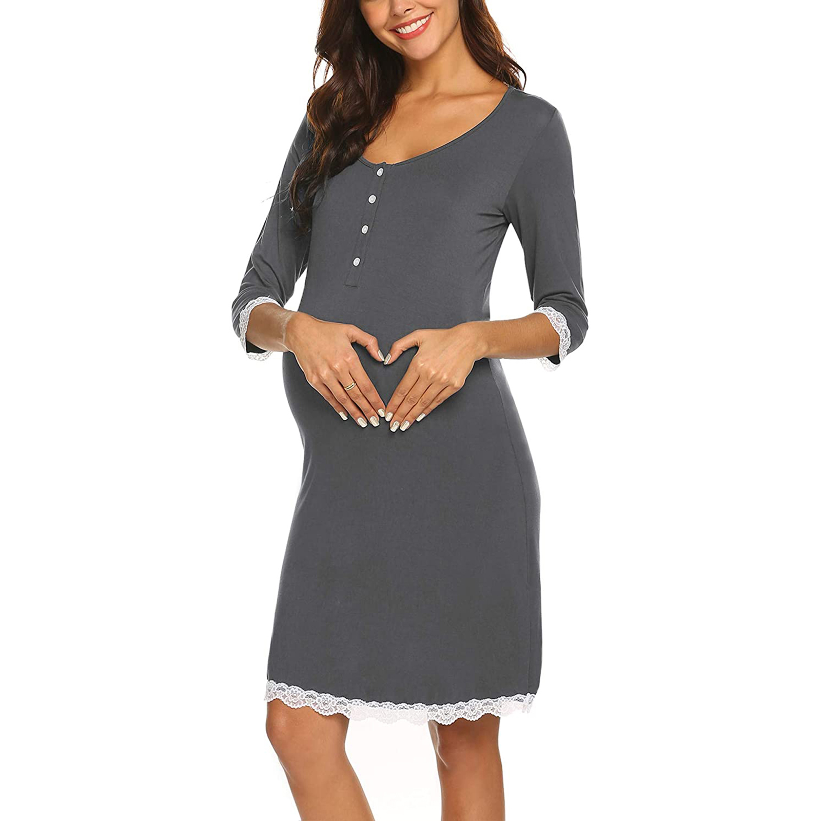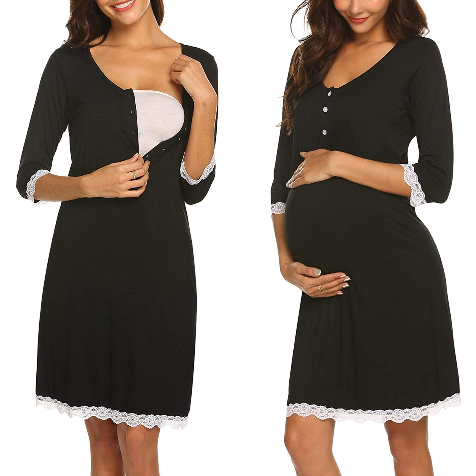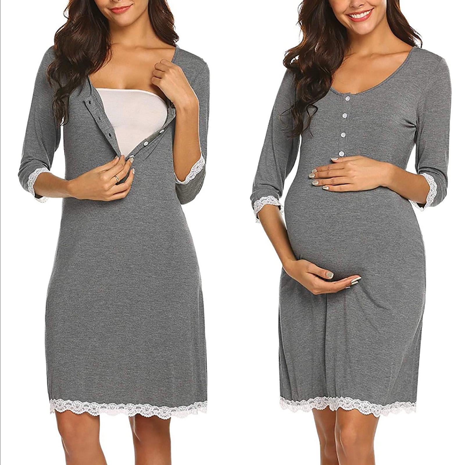Летняя одежда для беременных женщин платье до колена с кружевными манжетами и пуговицами спереди для кормления грудью.