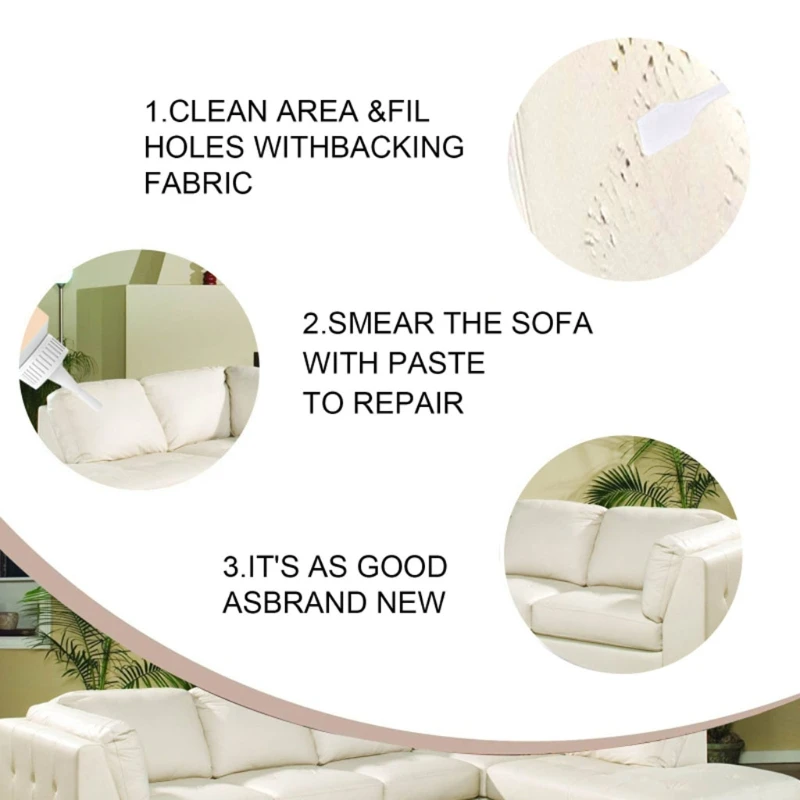 Это делает Восстановление очень легким для царапин, разрывов, разрывов, ожогов, трещин, пилинга и восстановления. Лучшее превосходное решение для любых цветов обуви, диванов, офисных стульев, ремней, сумок, кошельков. Дополнительное соединение Может накладывать большие площади, без тепловых инструментов, пластырей, краски, клея, краски, ленты, Нужна шпатлевка. Он может производить профессиональные результаты на новом или старом кожзам, искусственной, синтетической, бикаст или премиум обивки. Он может хорошо сочетаться с цветом самой вещи, что дает вам лучший опыт использования.