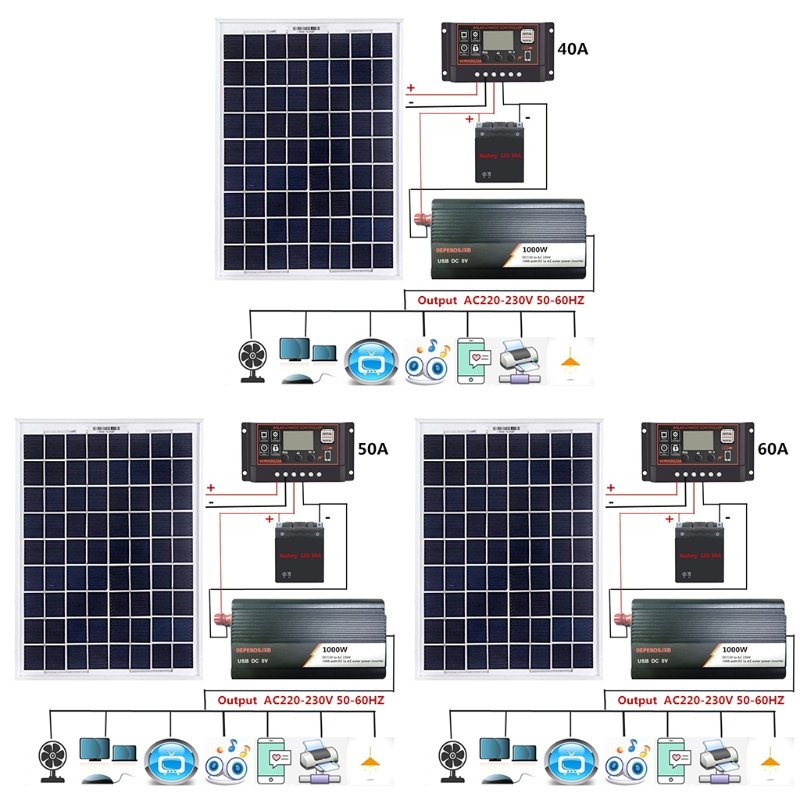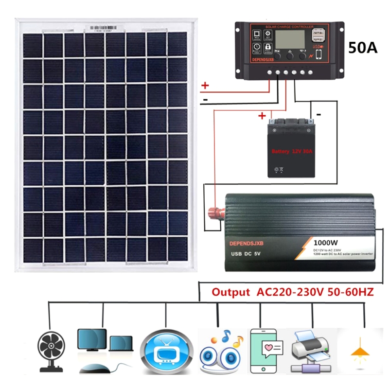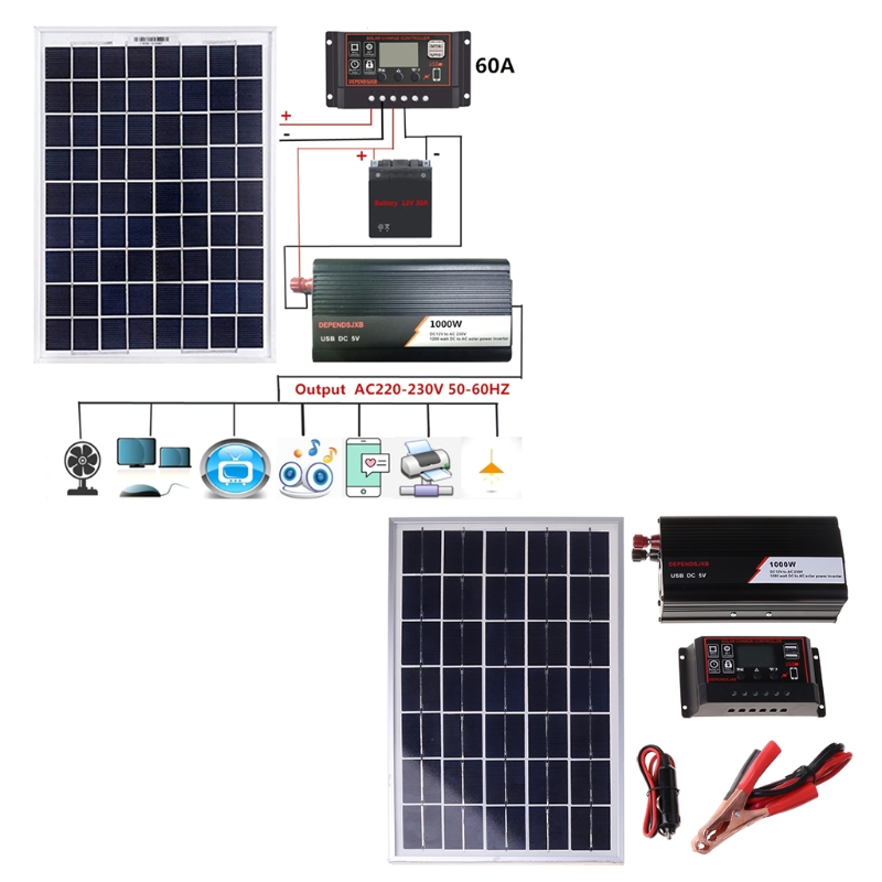 964E 18V 20W солнечная панель система питания + 12V / 24V цифровой контроллер + 1000W инвертор комплект для наружного дома