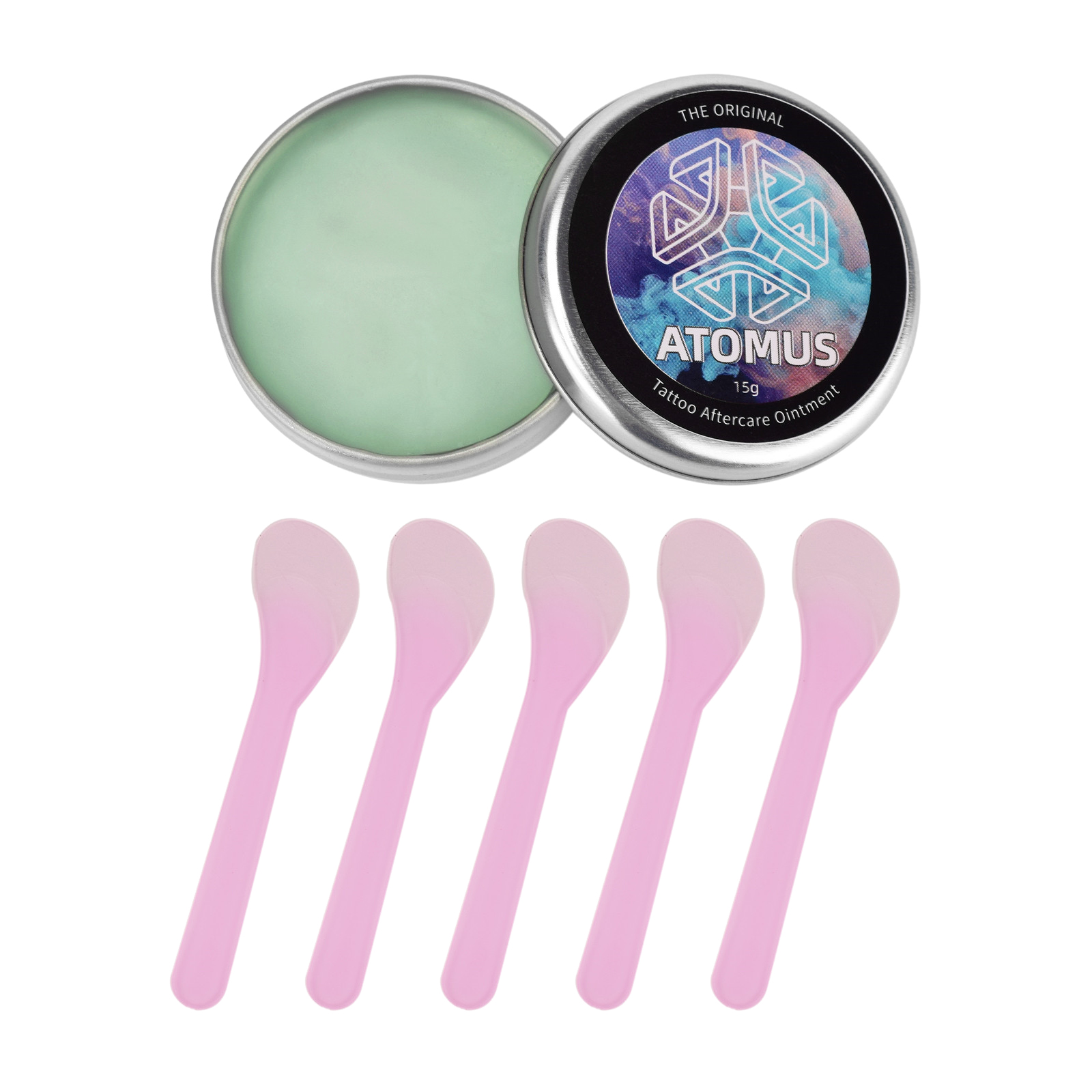 Упаковка включает розовый полупрозрачный одноразовый PP пластиковый мазок Стик для ремонта татуировки пасты скребок для протирания.