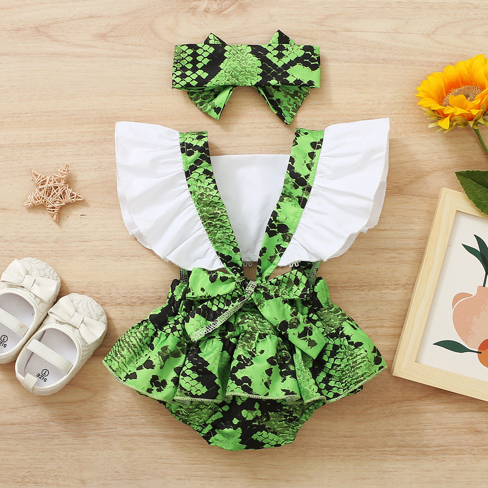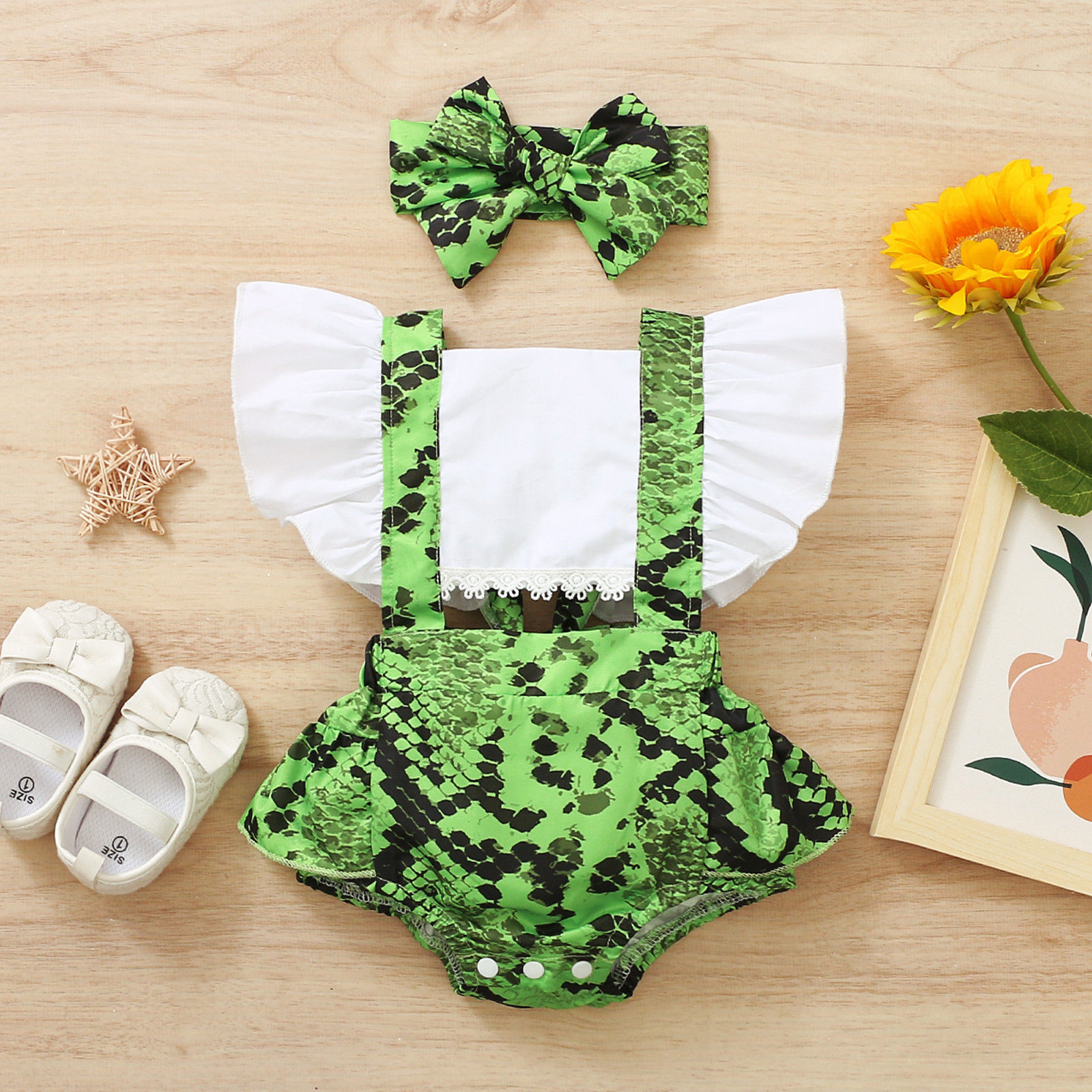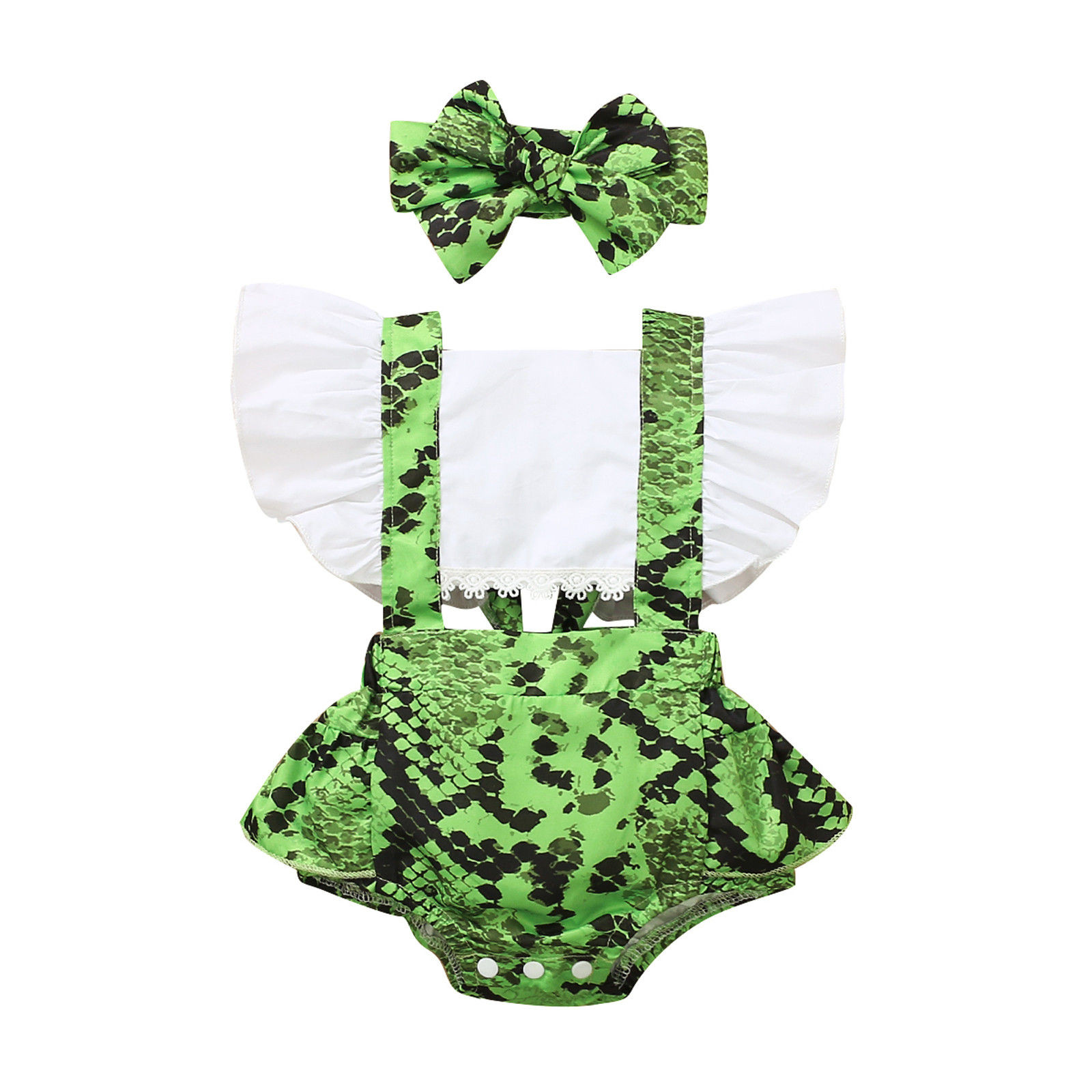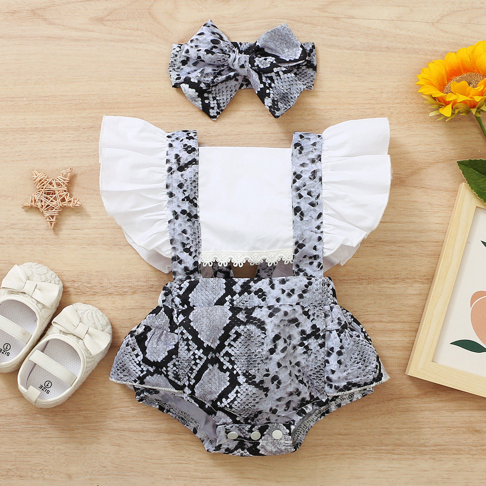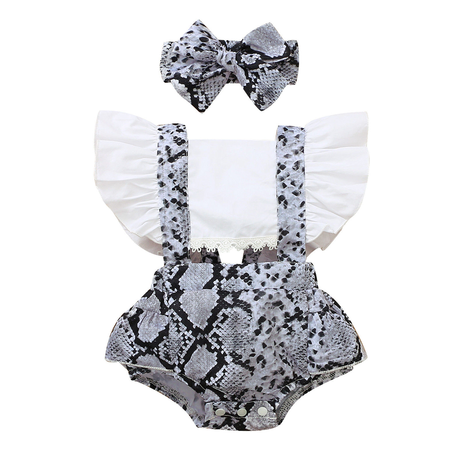 Комбинезон с рюшами и принтом змеиной кожи с открытой спиной для маленьких девочек; Боди + повязка на голову