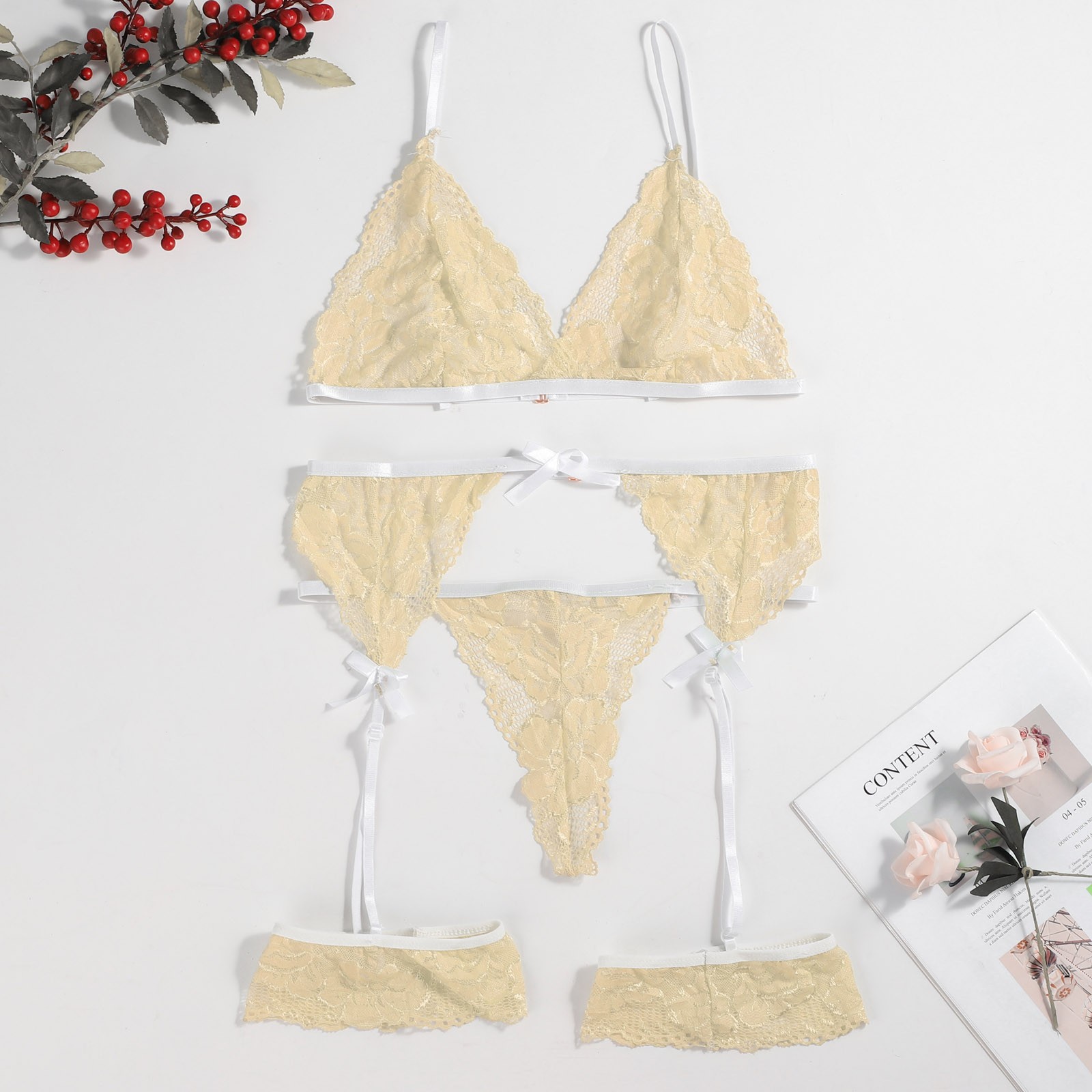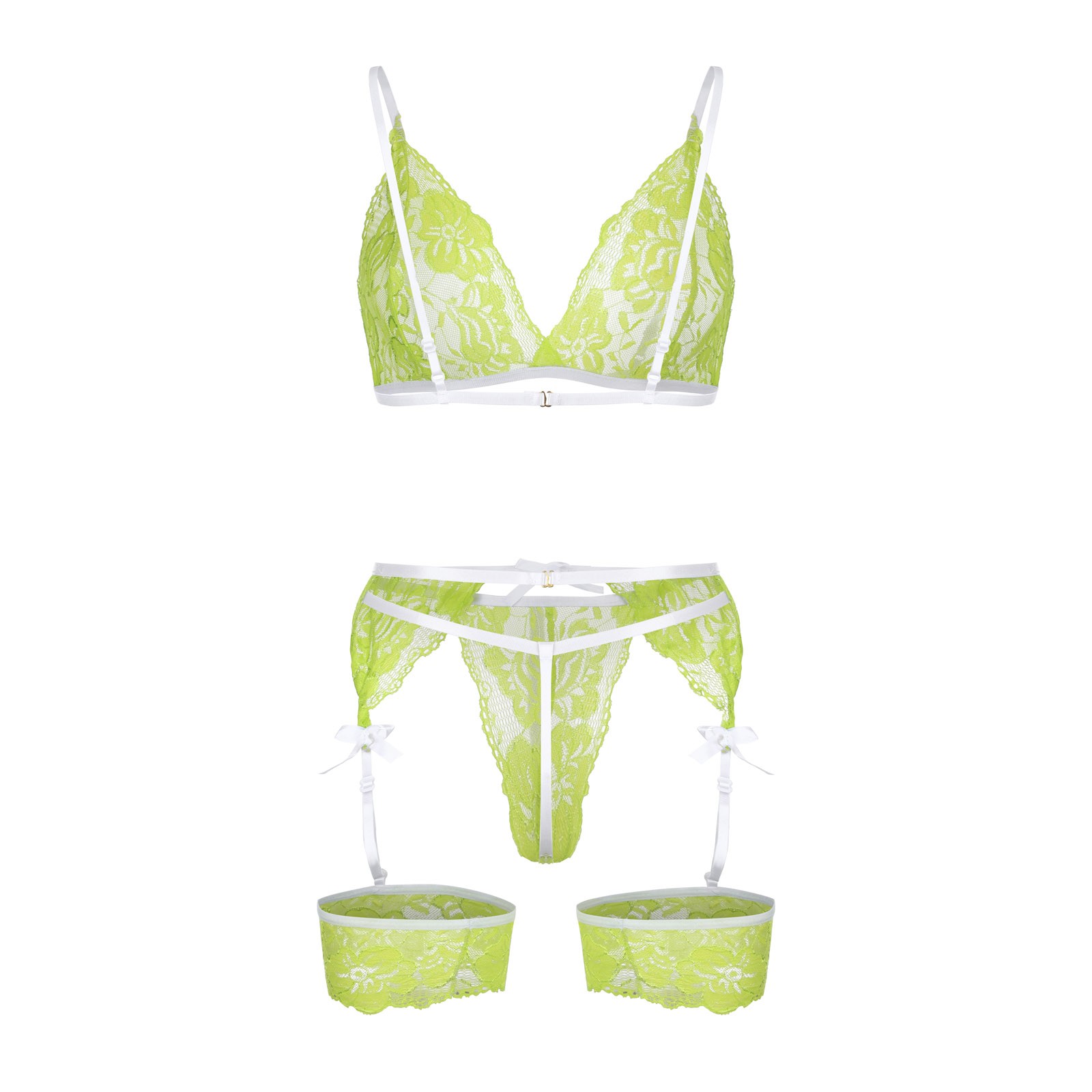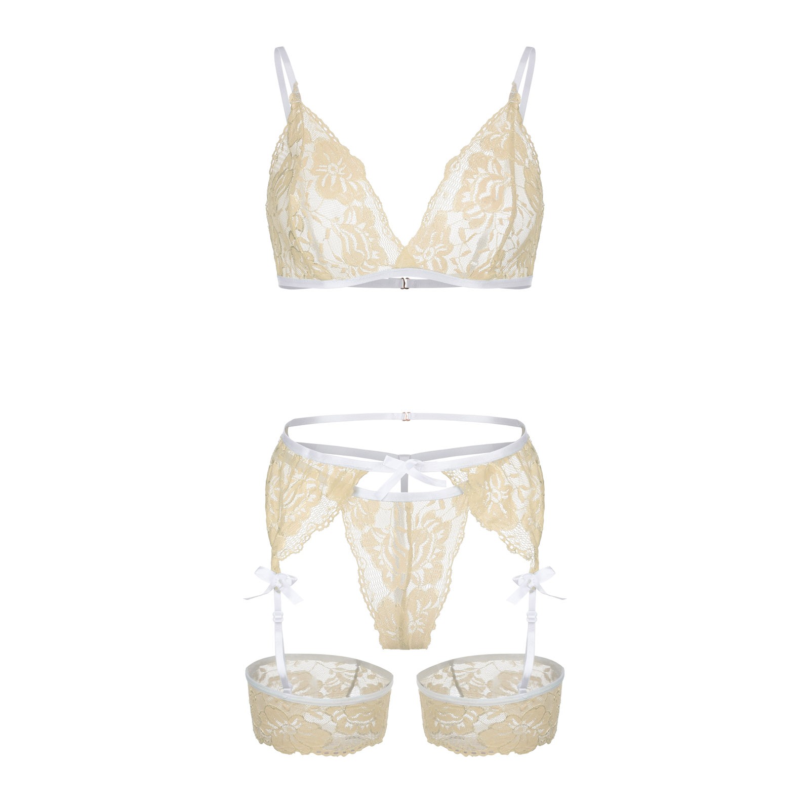 Вы получите:1 комплект пикантных пижам (1 бюстгальтер 1 подвязка 1 стринги)