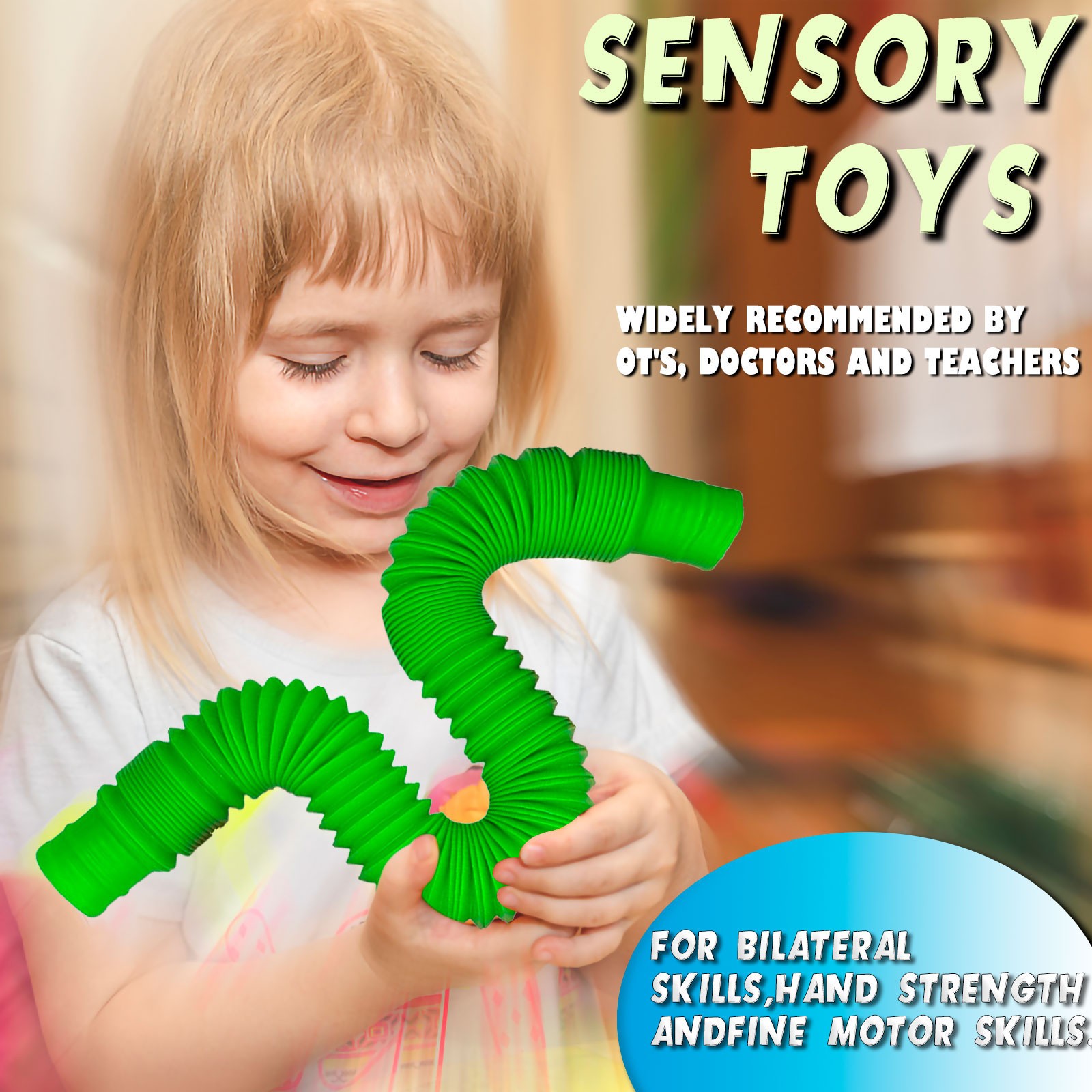 С новыми разъемами! Забавные и функциональные сенсорные игрушки, которые тянутся и соединяются, делая эти трубки игрушкой go-to для воспроизведения.