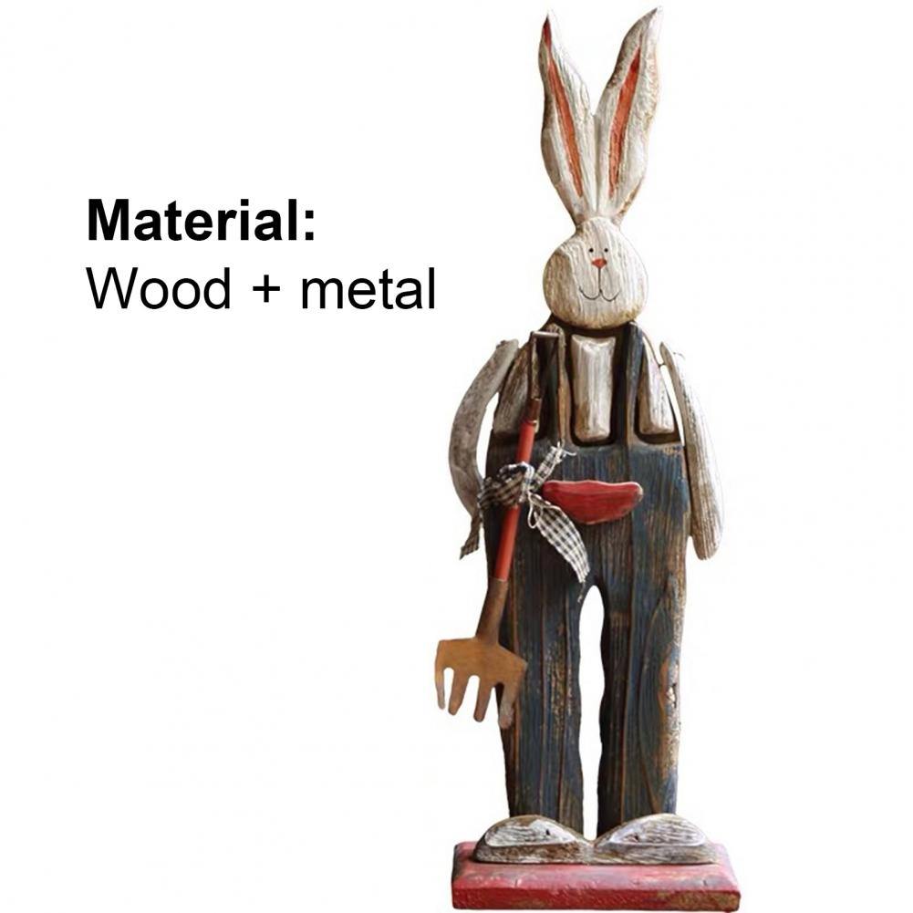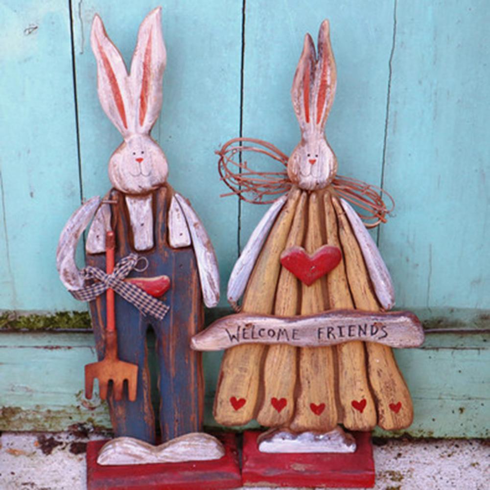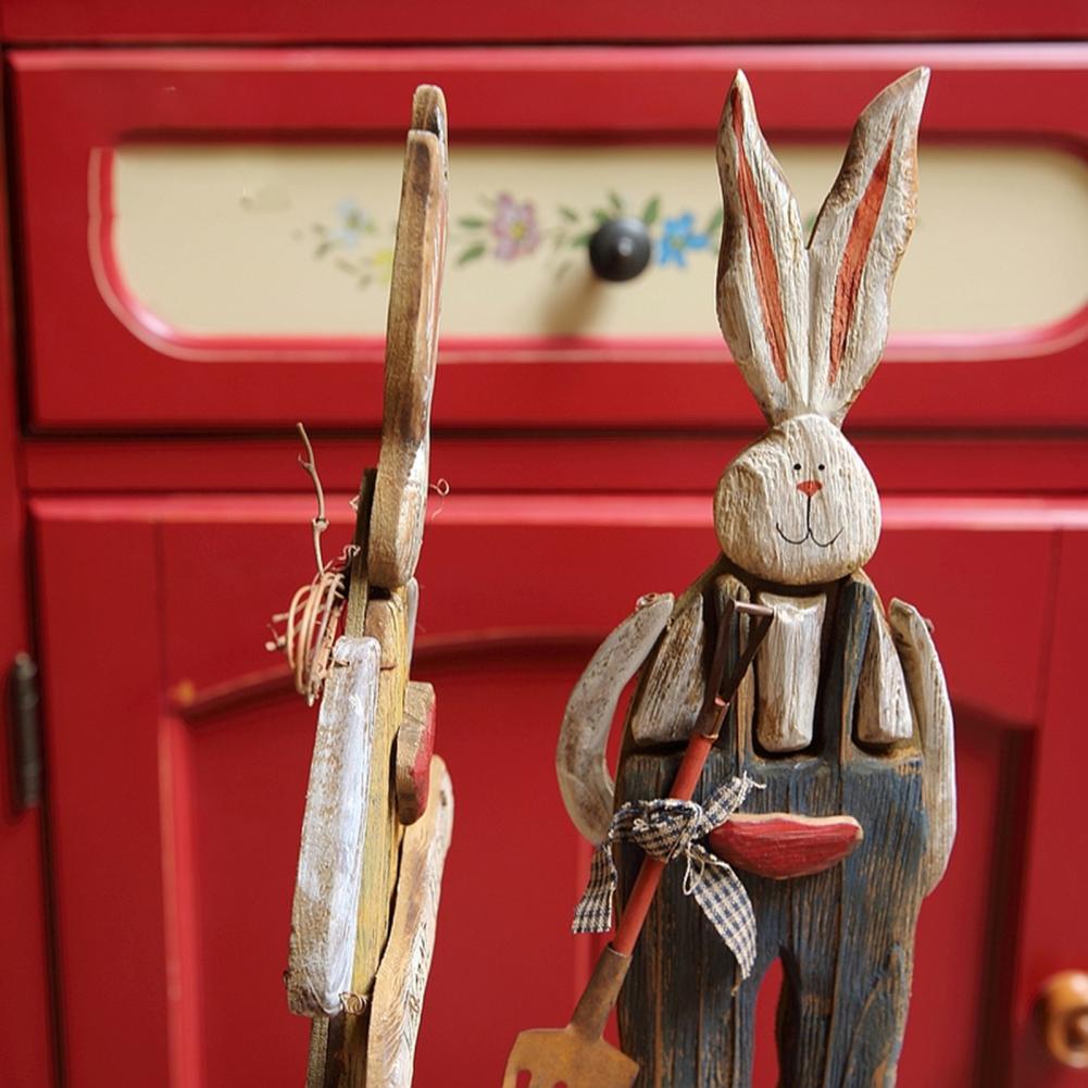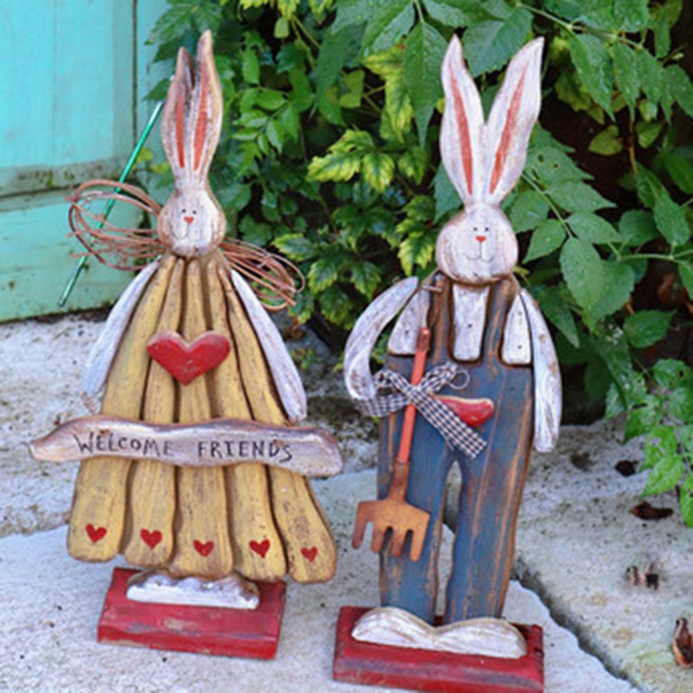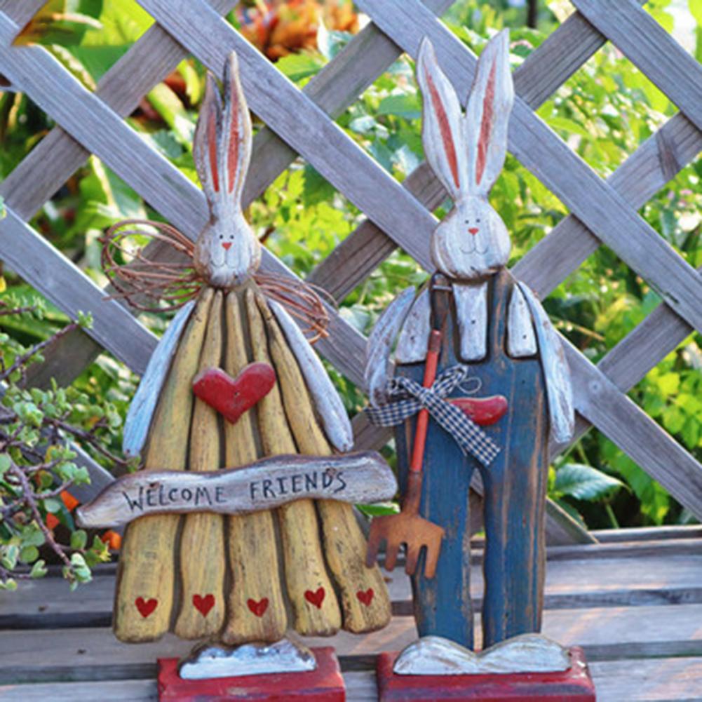 Садовая статуя в деревенском стиле с изображением кролика, дерево, многофункциональное животное, винтажное садовое украшение для подарков