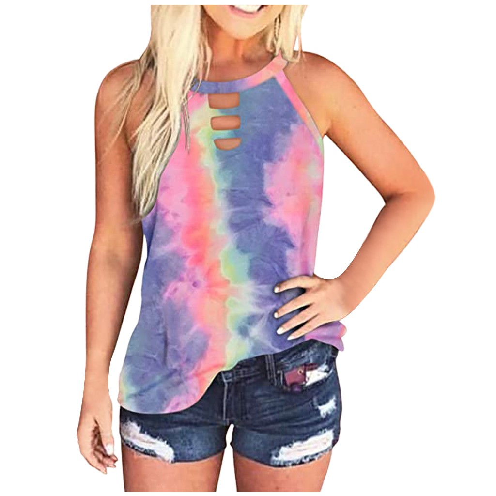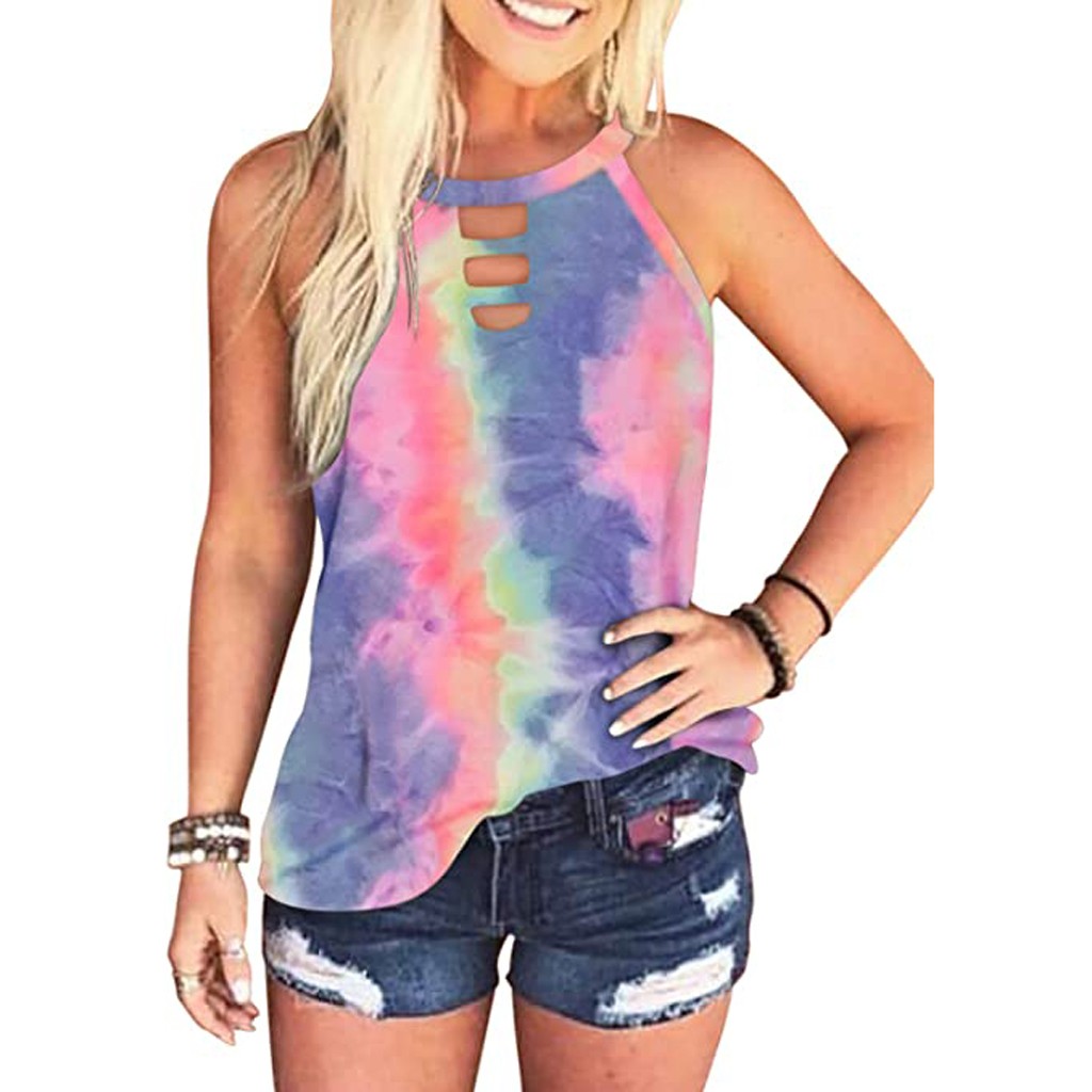 Модные женские леопардовые/галстук-краска без рукавов майка Повседневная летняя блузка Рубашки
