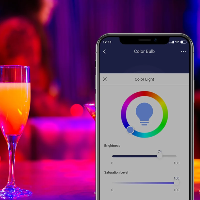 Умная лампа позволяет беспроводное управление светом из любого места. Просто используйте приложение для управления устройствами с дивана, кафе, автомобиля, даже за рубежом.