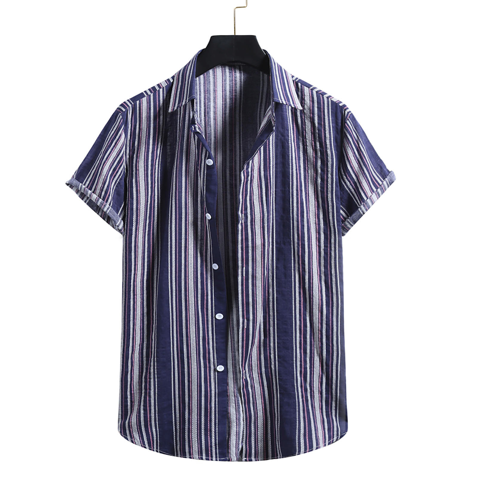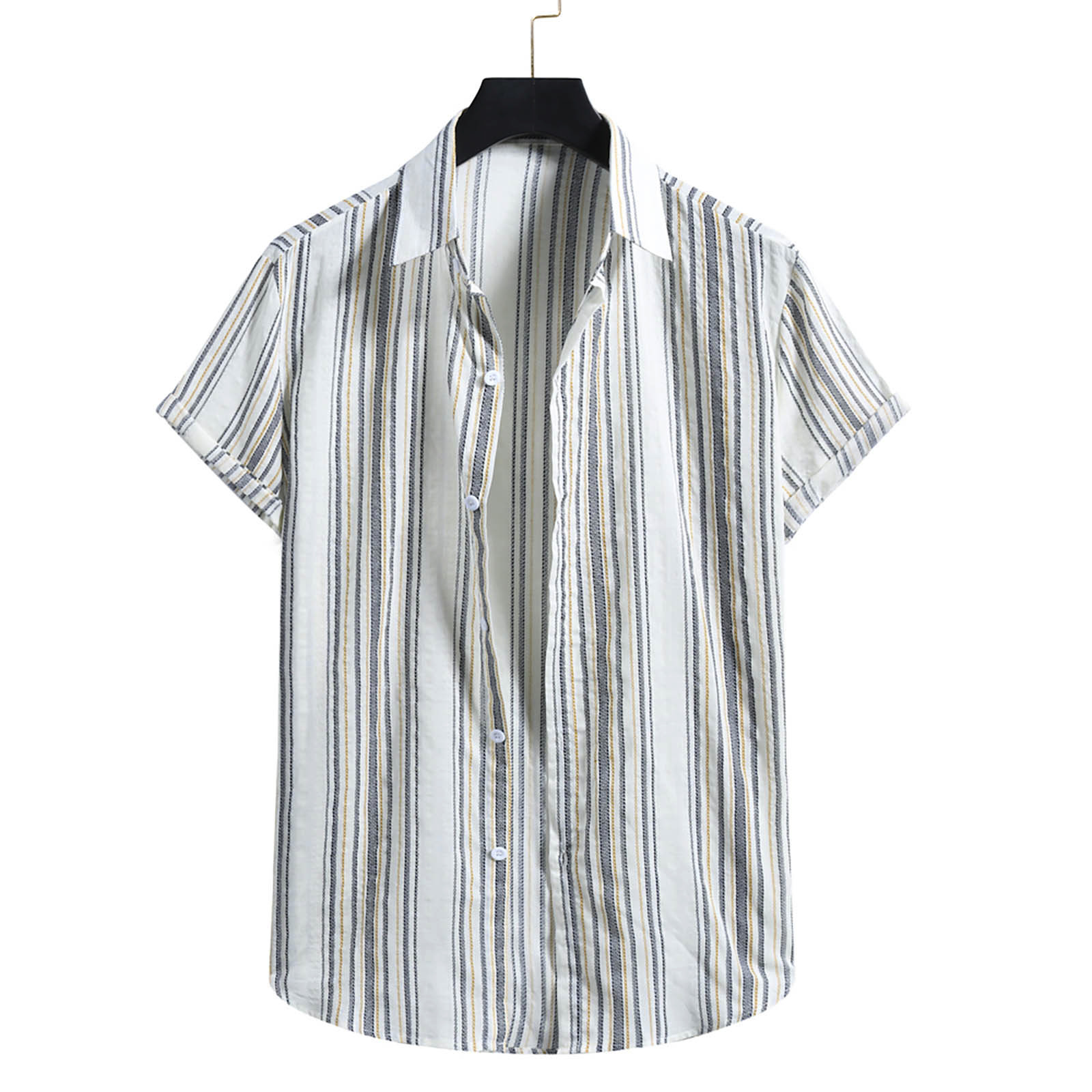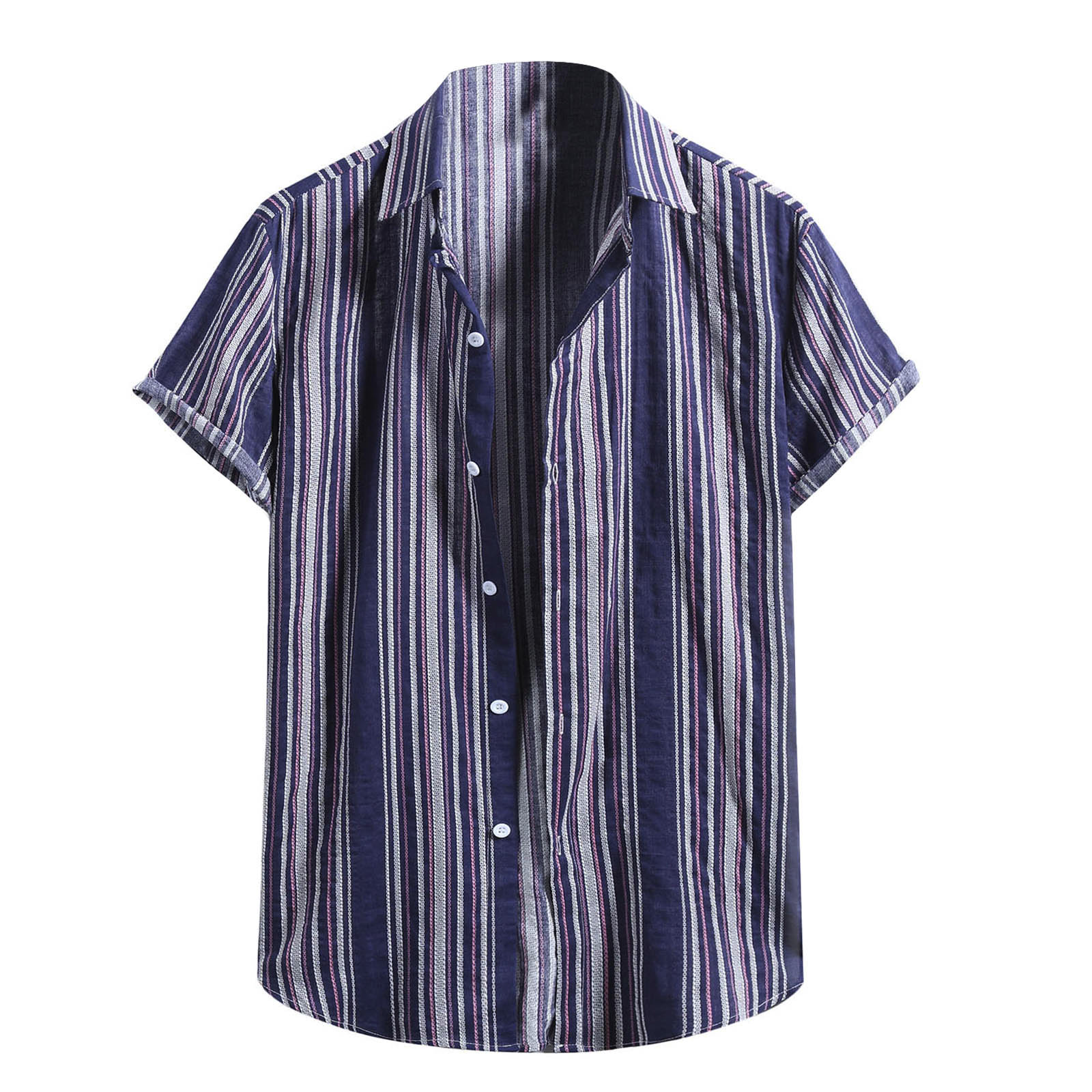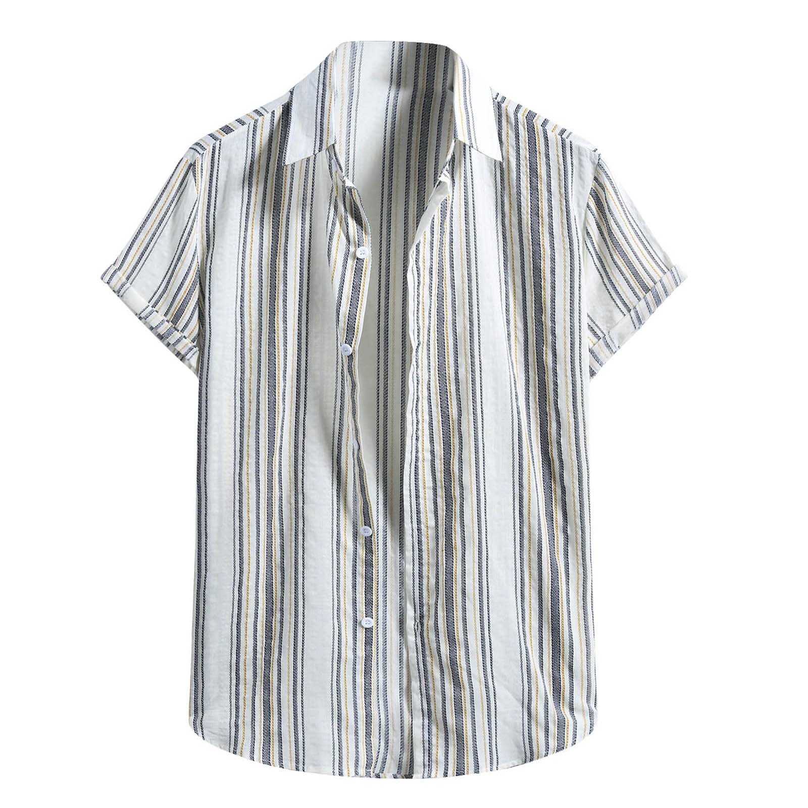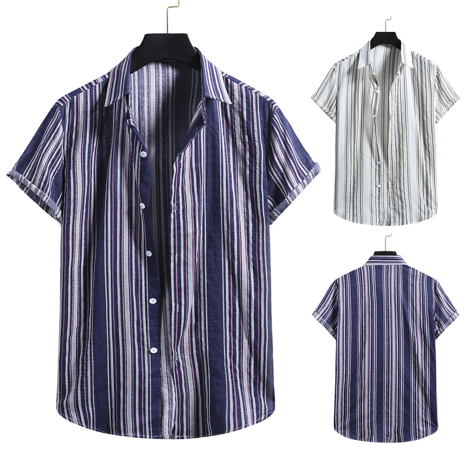 Мужская модная хлопковая льняная полосатая рубашка с короткими рукавами и принтом на пуговицах, блузка, Топ