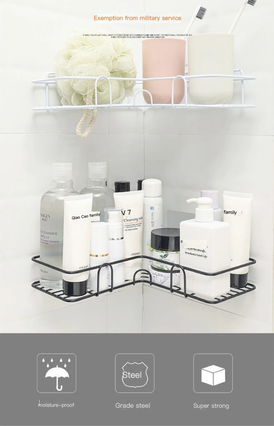 6. Хотите установить удобную угловую корзину в душе или кухне, используйте ее, чтобы разместить шампунь, мыло, кисти, полотенца, щетки для ванны и многое другое. Когда вы принимаете душ, Держите предметы первой необходимости под рукой. Экономьте на каждом пространстве, которое вы используете, а также на удобстве.