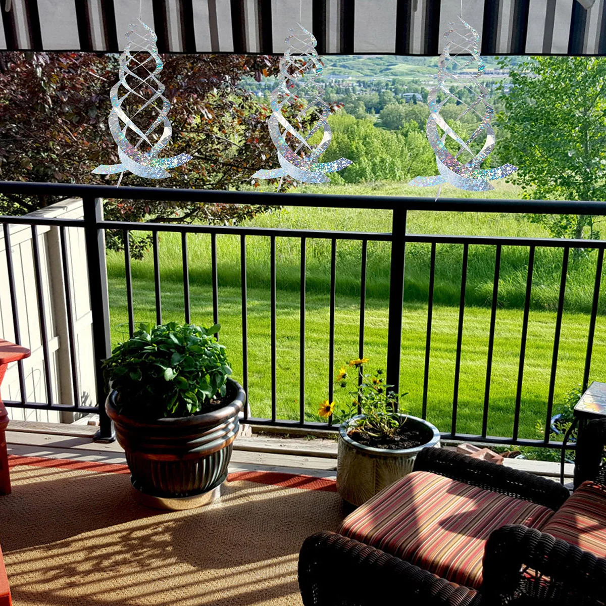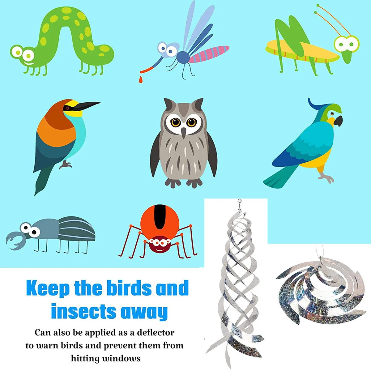 Решения для оказания помощи: серебристые спиральные отражатели Mylar изготовлены из безопасного, нетоксичного пластика, который не повредит окружающую среду и животных. Вместо того, чтобы пугать и вредить птицам, наше устройство отпугивания птиц гуманно пугает их, отражая визуальный светильник.