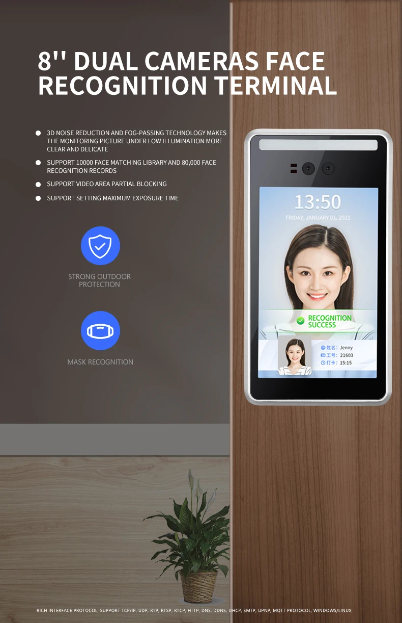 Прямая продажа с фабрики 8 дюймов Распознавание лиц id Система контроля доступа