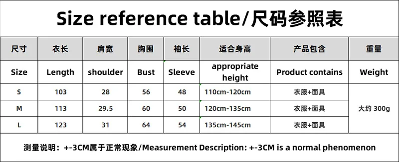 S подходит для роста 110-120 см, подходит для детей 3-4 лет