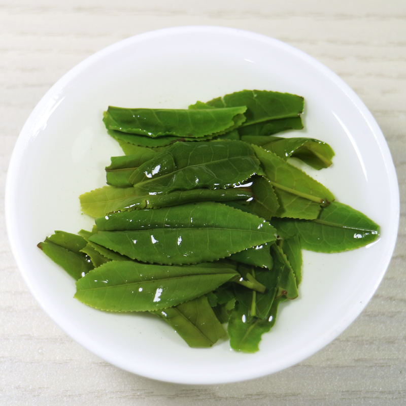 Свежие чайные листья, выбранные для производства ломтика дыни, сильно отличаются от других известных чаев. После выщипывания одного бутона с двумя или тремя листьями от чайного завода производители вовремя отделяют выдувные листья от нежных листьев. После этого как кончик листьев, так и стебель вырезаются из выдувных листьев. Таким образом, каждый лист ломтика дыни не имеет ни бутона, ни стебля. Тщательно ухоженные листья затем сковороду обжигают на медленном запекании над огнем на древесном угле и часто поворачиваются, чтобы придать нежный оттенок дымности. Ли у ломтик дыни скручивается по краям листьев и насыщенный зеленый цвет с белым морозом на поверхности. Аромат свежий, высокий и долговечный. Вкус мягкий, сладкий и освежающий