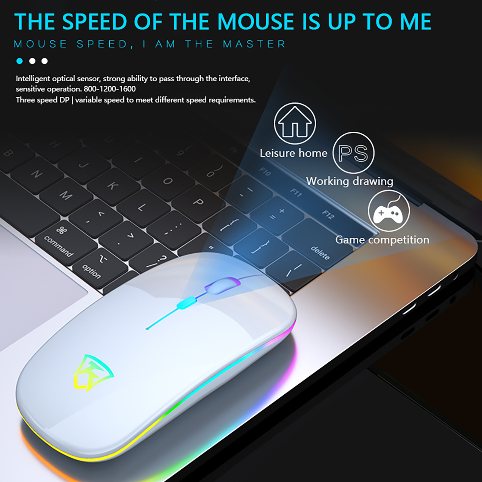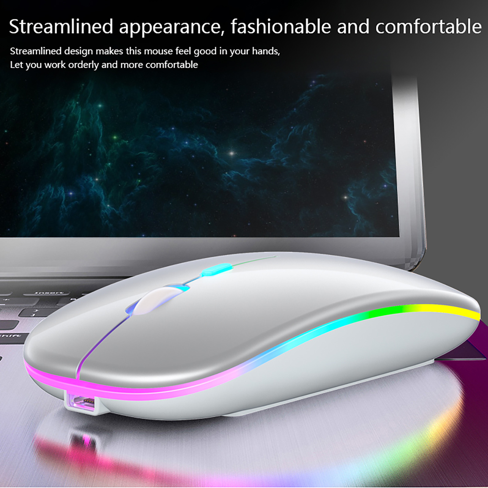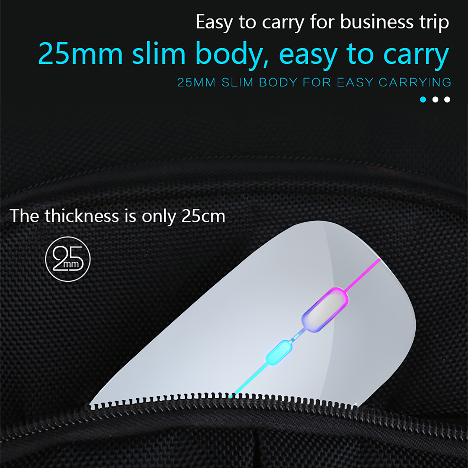 Бесшумные щелчки мыши, Подходит для офиса, игровых Интернет-кафе, библиотеки и других мероприятий. Ультратонкий корпус 25 мм, you Можно легко носить с собой, положить его в рюкзак или карман и использовать в любом месте Вперед. Большая емкость Перезаряжаемая батарея, зарядка в течение 2 часов, с 7 дней в режиме ожидания Режим и 30 дней в режиме ожидания в режиме выключения светильник. Глазурь поверхности Технология, хорошее ощущение руки, дизайн соответствует эргономике, обтекаемый Форма, удобная и не легко потеет. Красочные огни, оснащены С семицветными дыхательными огнями, привносят различные ощущения для работы.Спецификация: