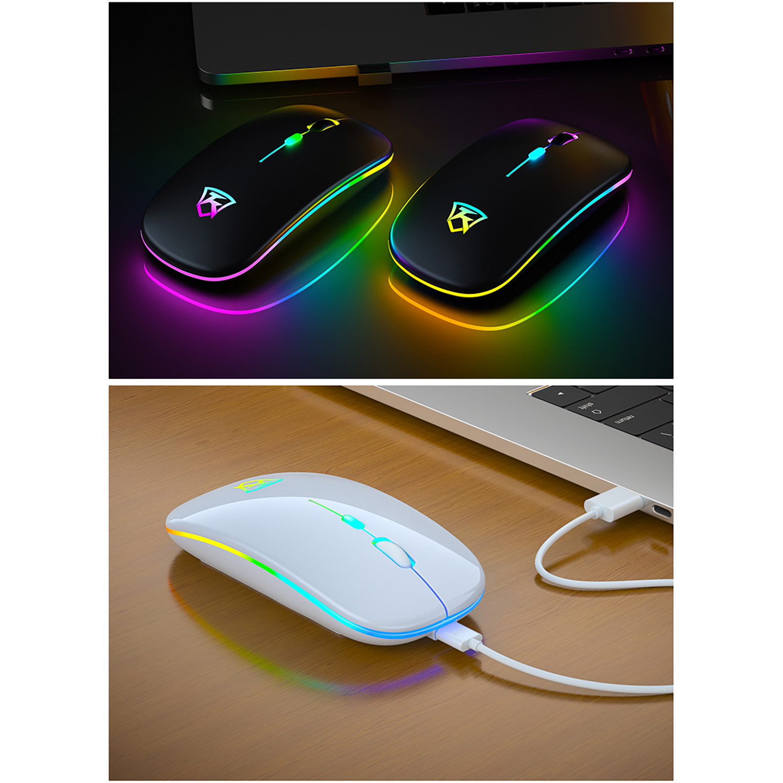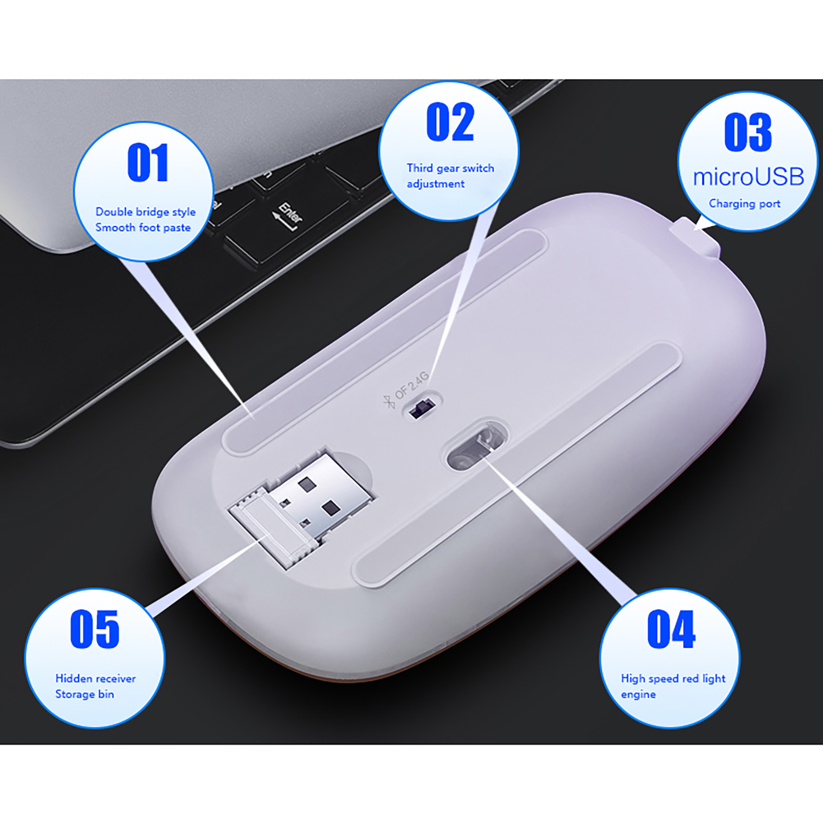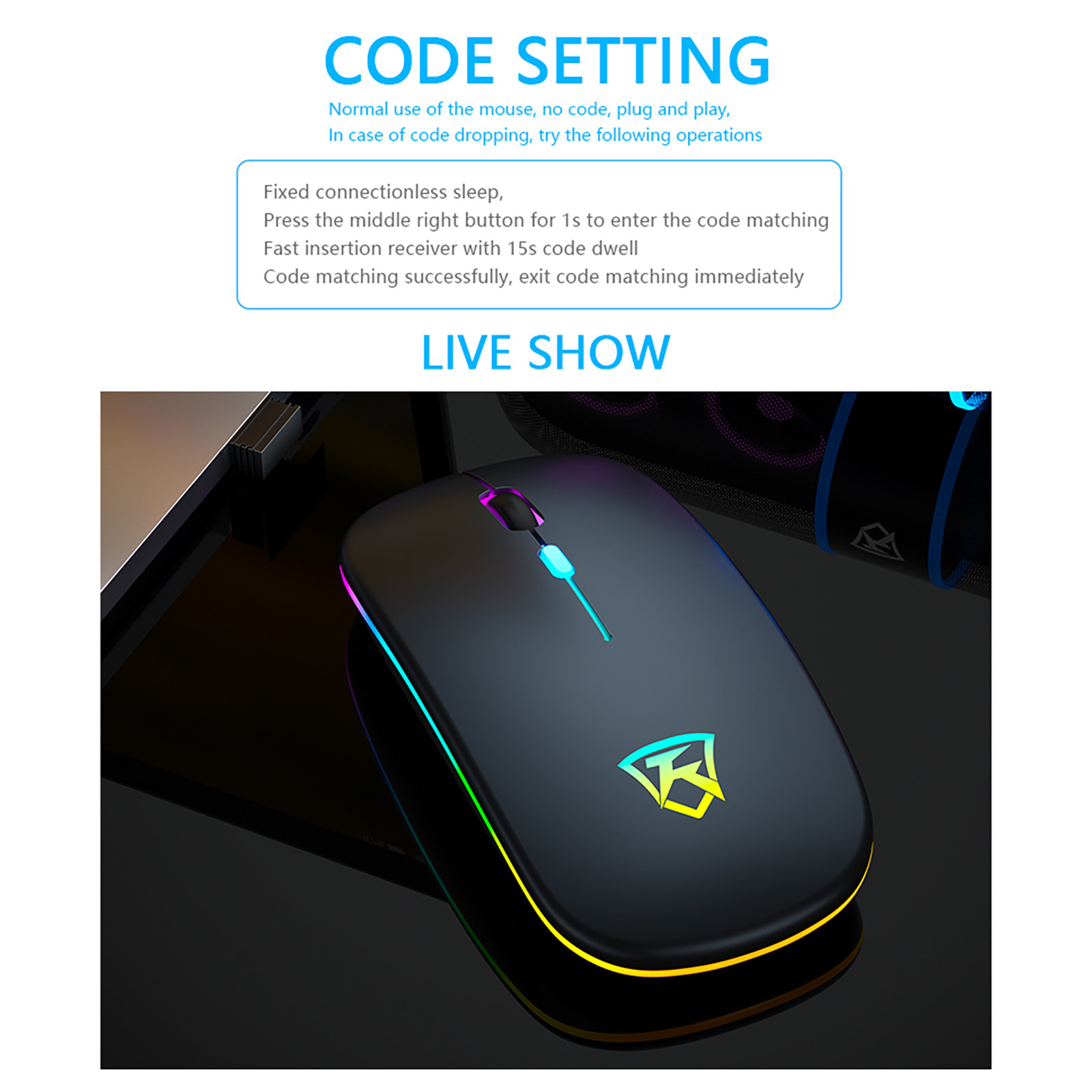 Бесшумные щелчки мыши, Подходит для офиса, игровых Интернет-кафе, библиотеки и других мероприятий. Ультратонкий корпус 25 мм, you Можно легко носить с собой, положить его в рюкзак или карман и использовать в любом месте Вперед. Большая емкость Перезаряжаемая батарея, зарядка в течение 2 часов, с 7 дней в режиме ожидания Режим и 30 дней в режиме ожидания в режиме выключения светильник. Глазурь поверхности Технология, хорошее ощущение руки, дизайн соответствует эргономике, обтекаемый Форма, удобная и не легко потеет. Красочные огни, оснащены С семицветными дыхательными огнями, привносят различные ощущения для работы.Спецификация:
