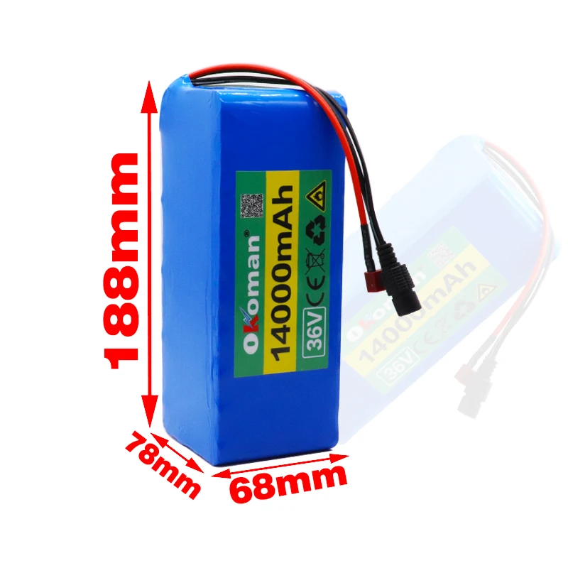 1. Литиевая батарея 36 в 14 Ач (по умолчанию поставляется штепсельная вилка T, если вам нужны другие типы штепсельных вилок, пожалуйста, оставьте сообщение в заказе)