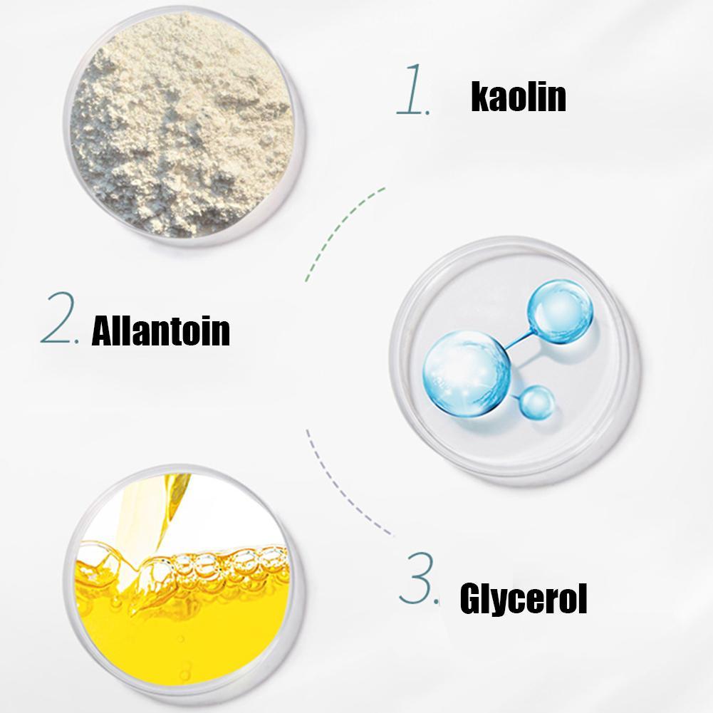 1. Каолин, осветляет тон кожи, уменьшает тусклость меланина и хлоазмы, сохраняет влажный и белый