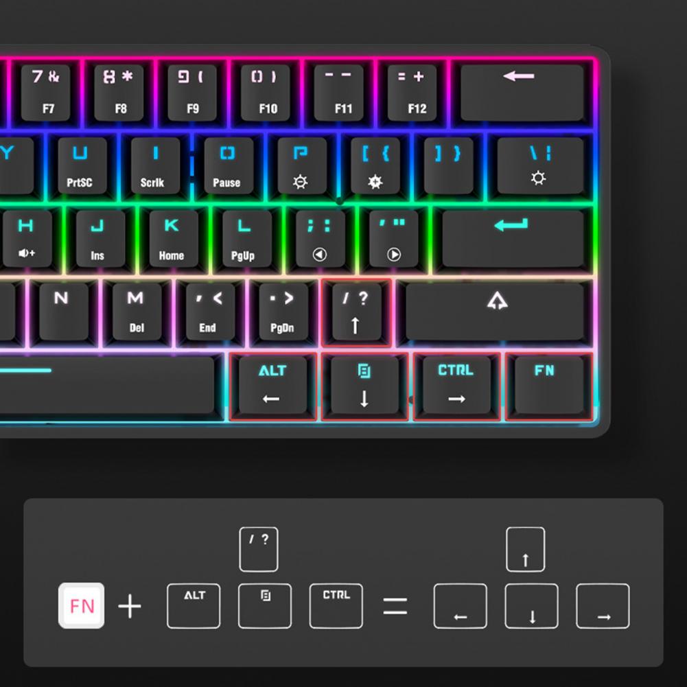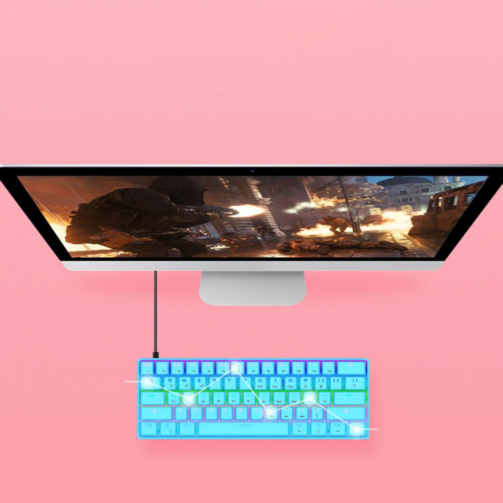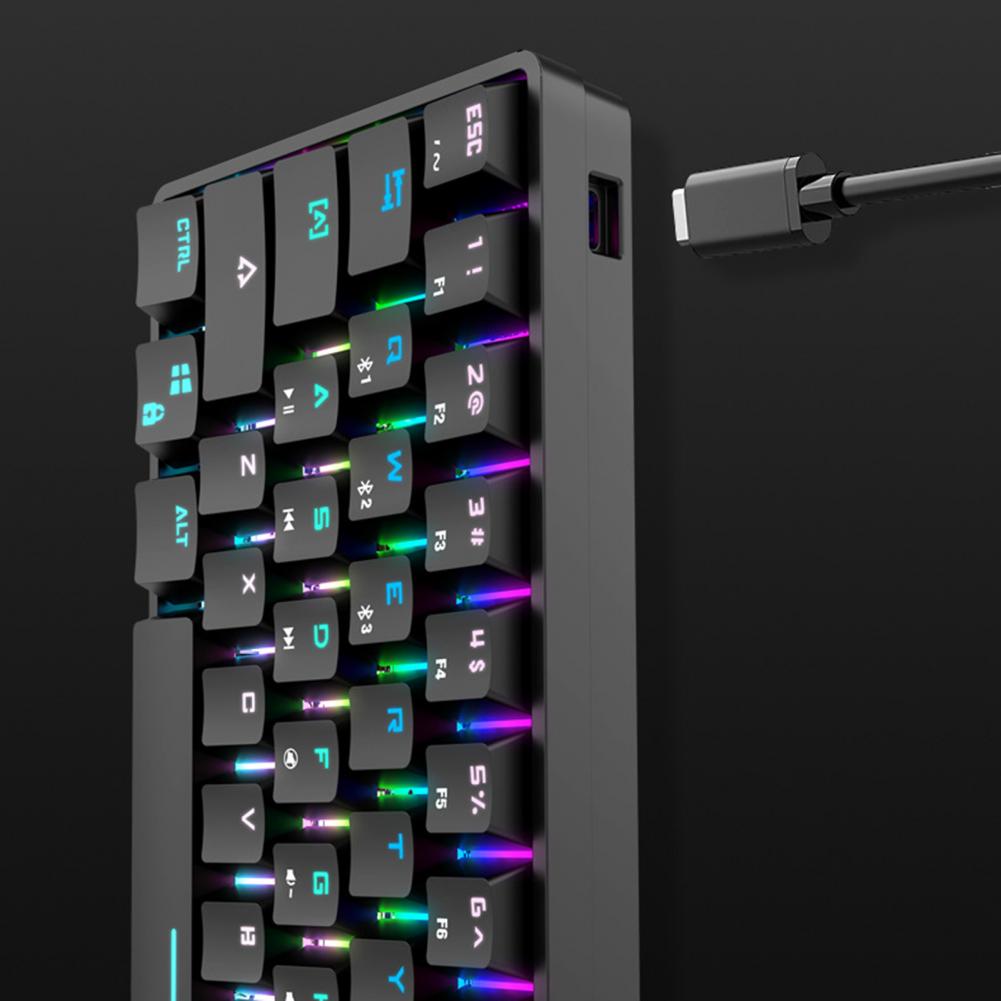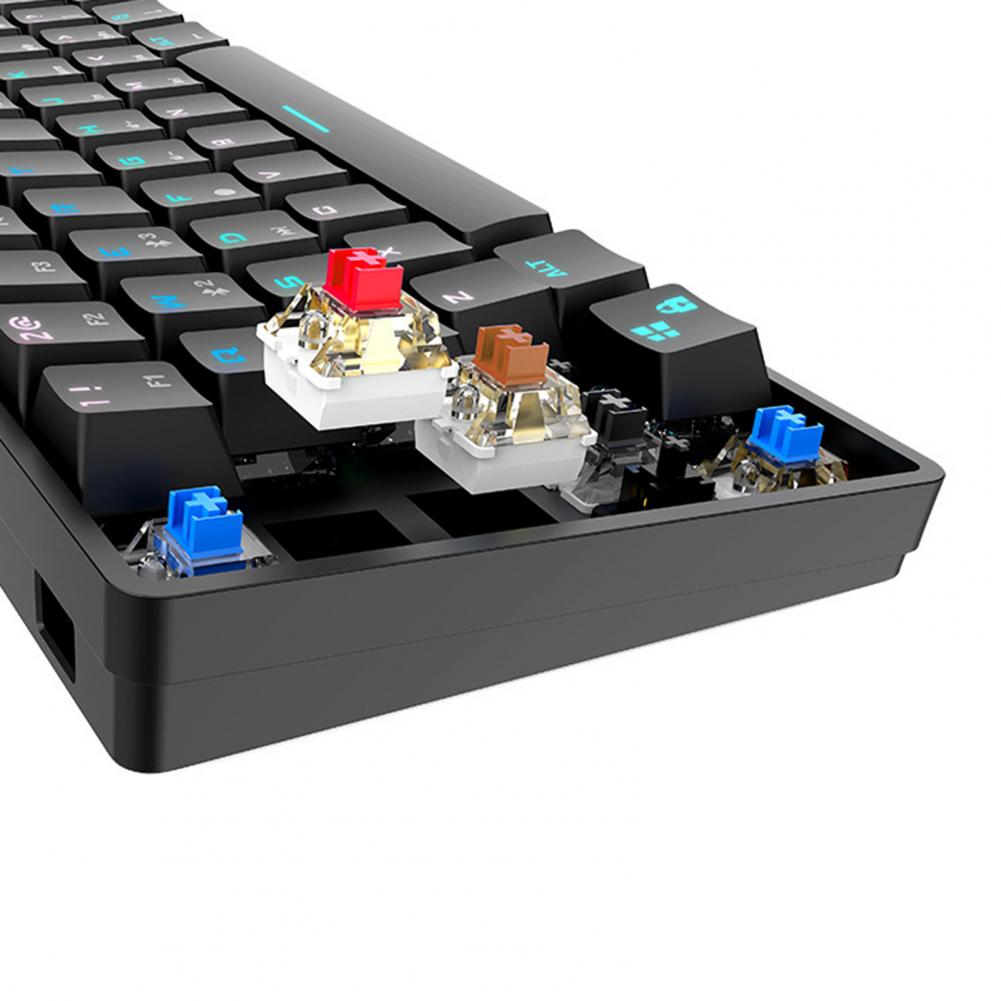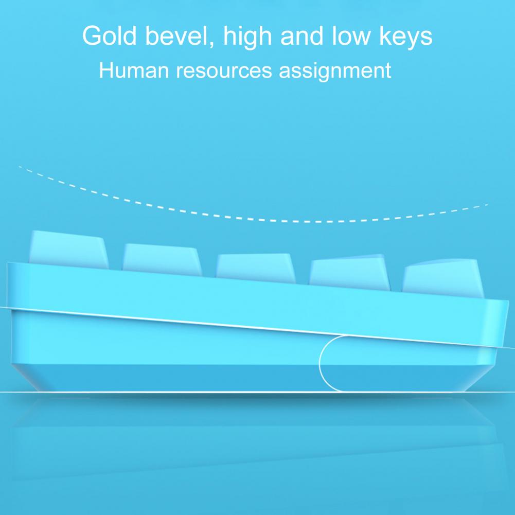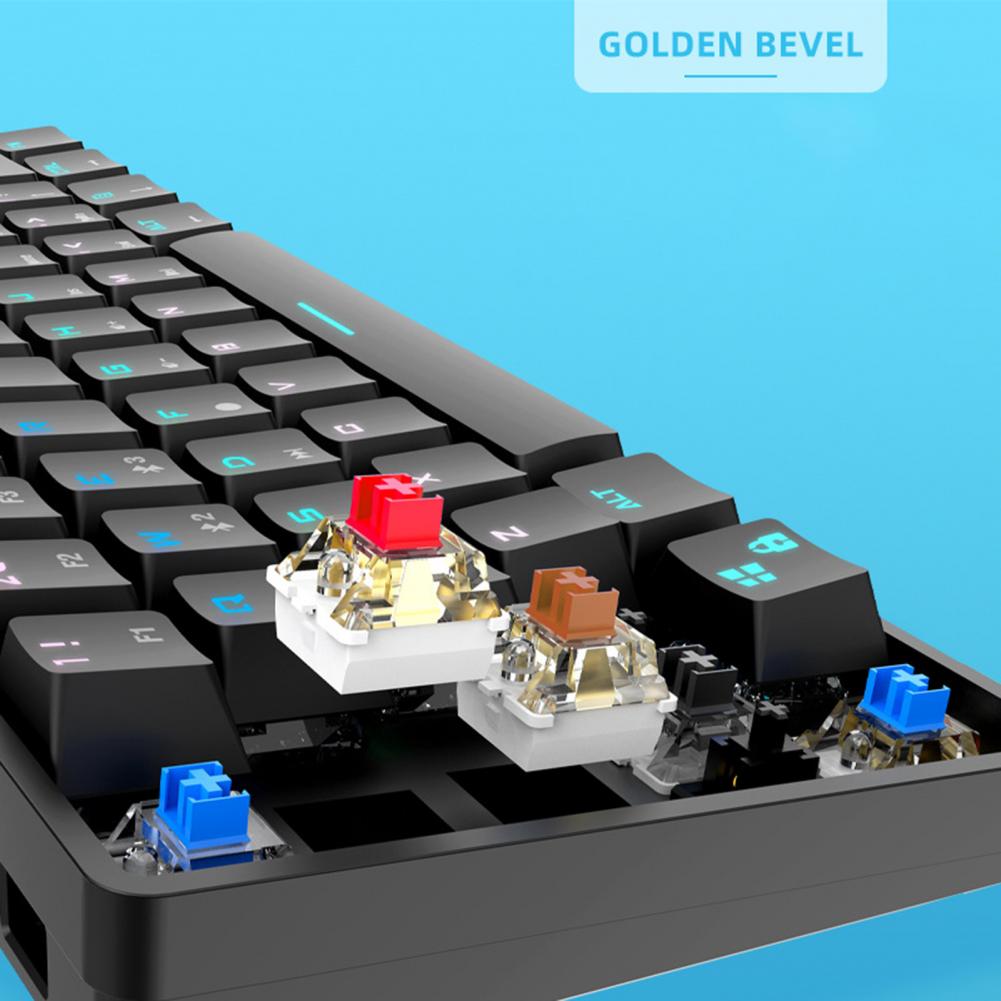 Изготовлен из высококачественного золота качественный АБС-пластик и металл материалы, клавиатура имеет компактный внешний вид, и имеет 60 процентов расположение полноразмерная клавиатура, которая сохраняет функции полной клавиатуры, будучи стильной и простой. Кроме того, он оснащен двухцветными литыми под давлением колпачками, которые имеют деликатное прикосновение и долгий срок службы. Более того, конструкция ключа с возможностью горячей замены позволяет свободно менять вал, и вы также можете менять различные валы в соответствии с вашими личными привычками.