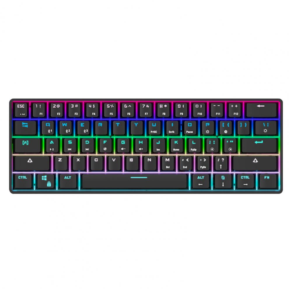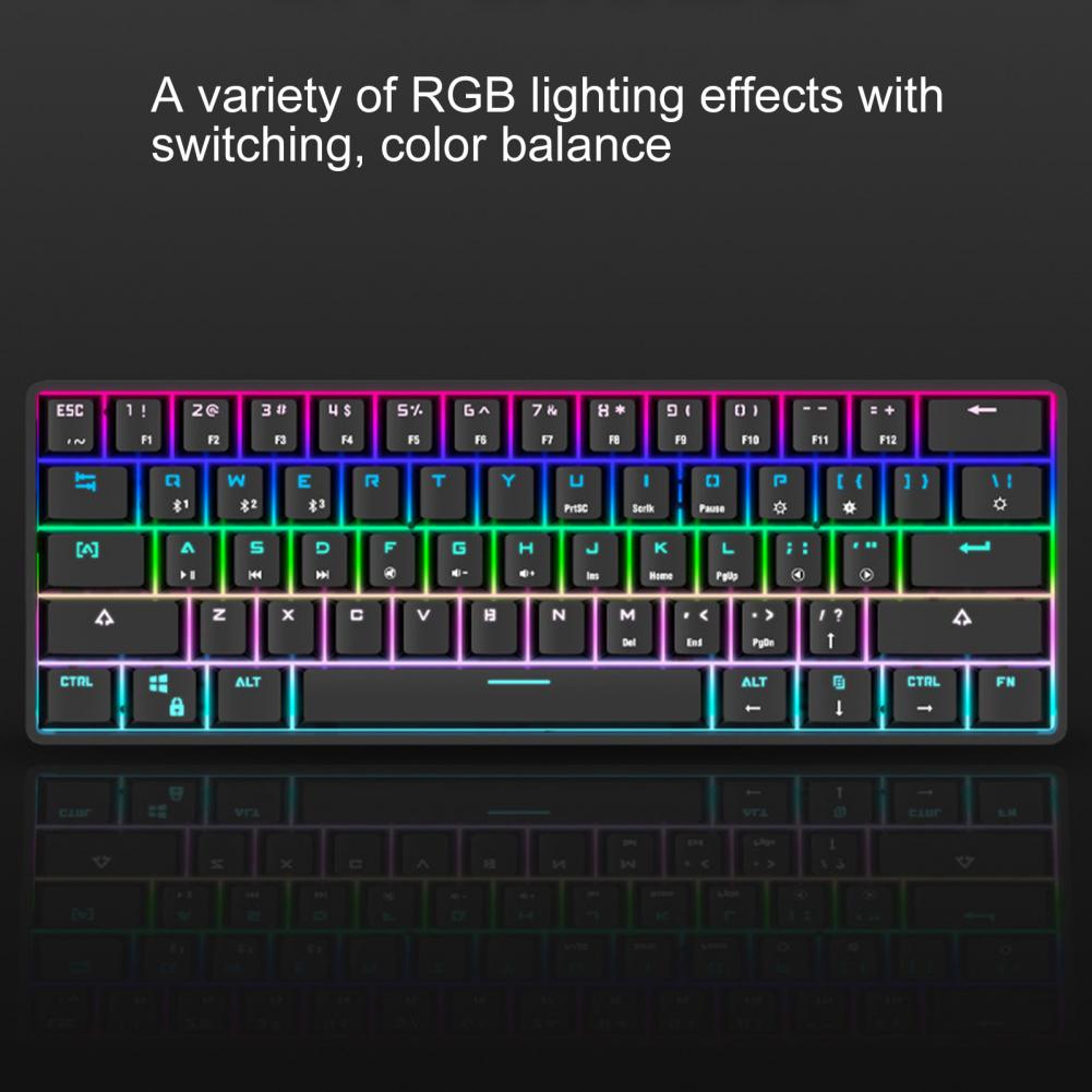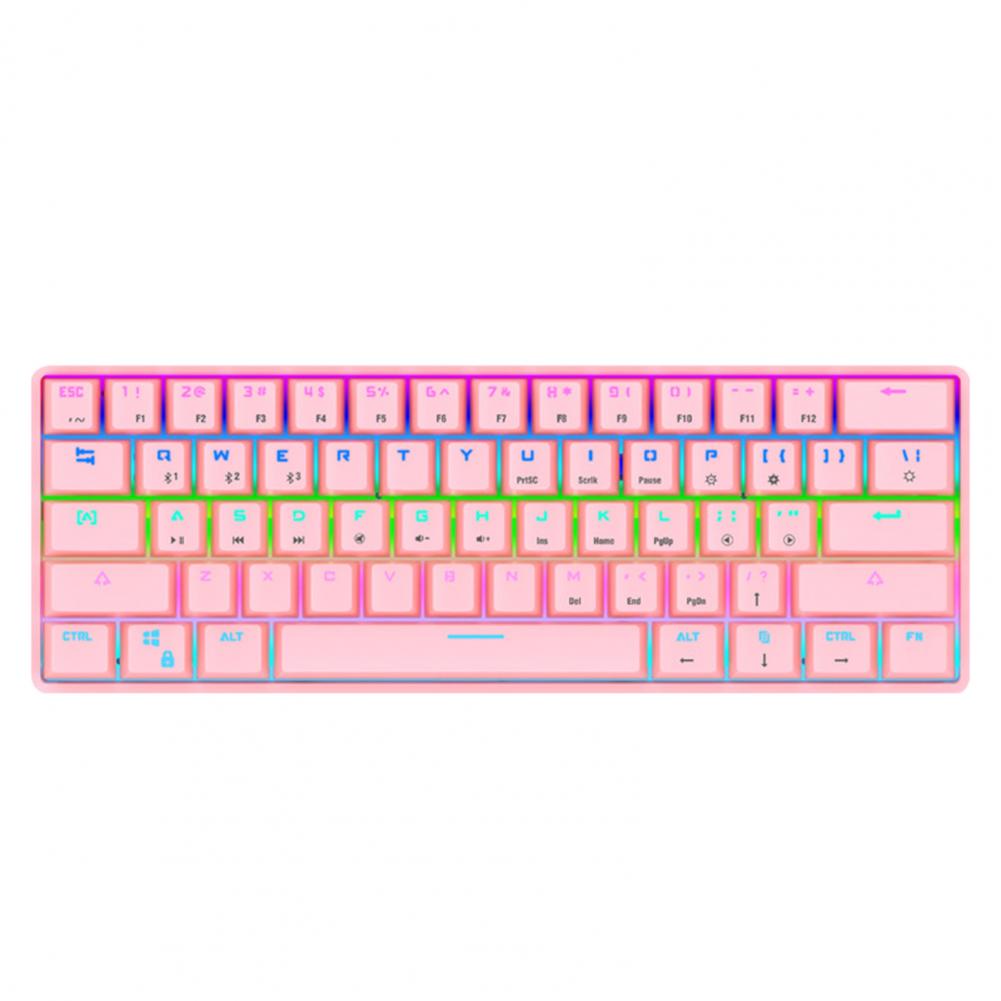 Это механическая клавиатура Bluetooth с RGB эффектом освещения, с высоким и низким дизайном клавиш, так что вы не будете утомлены после длительного использования.