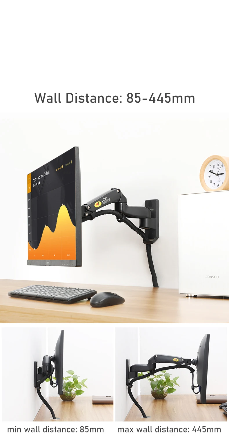 360 градусов газовая пружина алюминий 17 "-35" держатель монитора Arm NB F150 светодиодный LCD TV настенное крепление