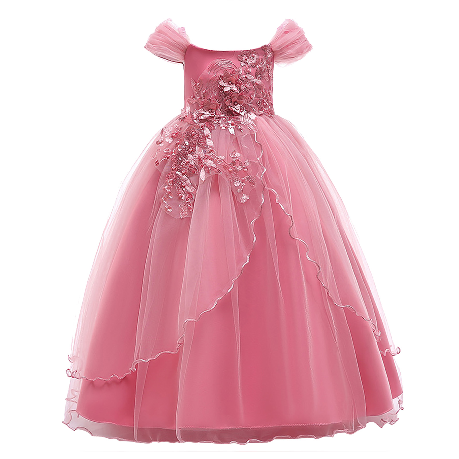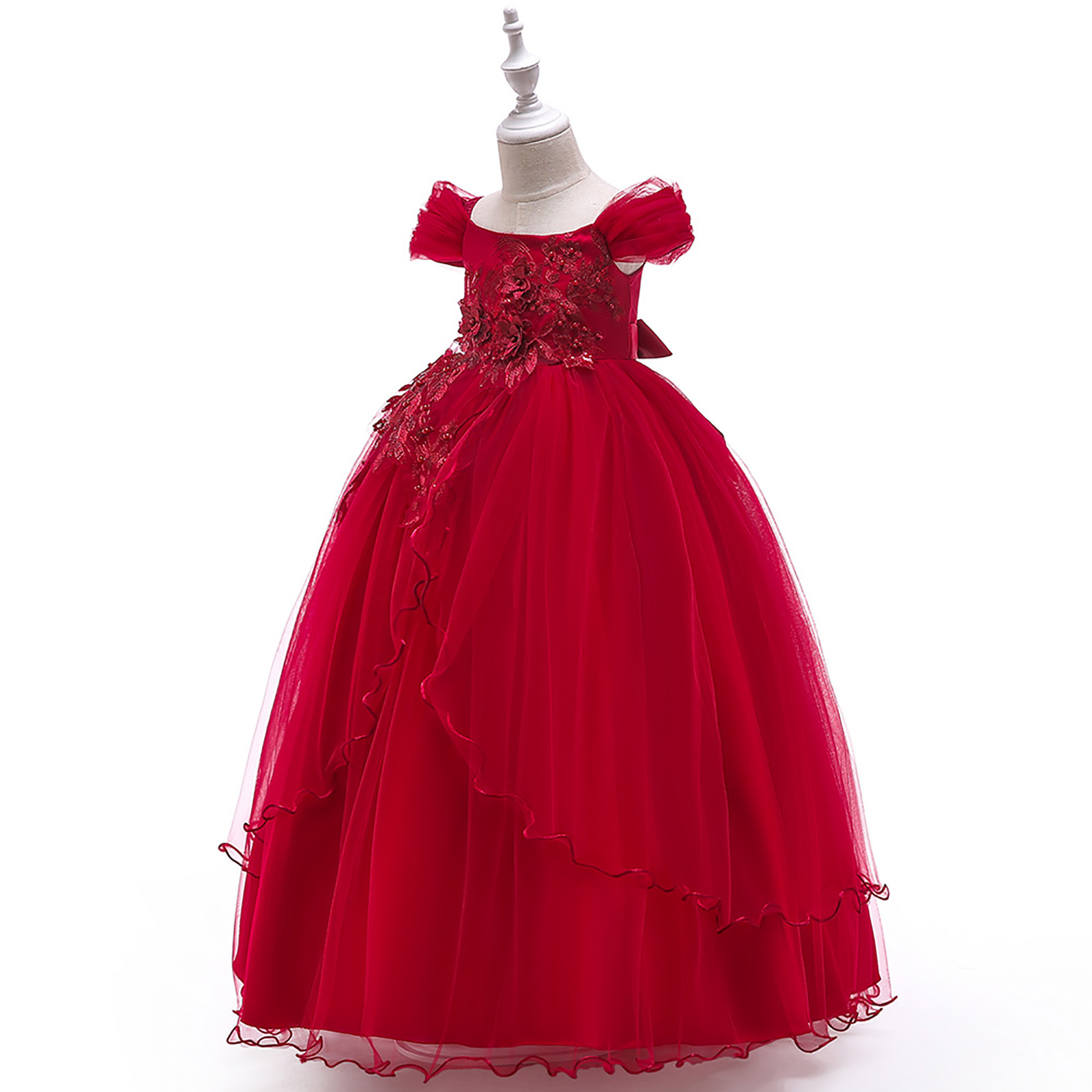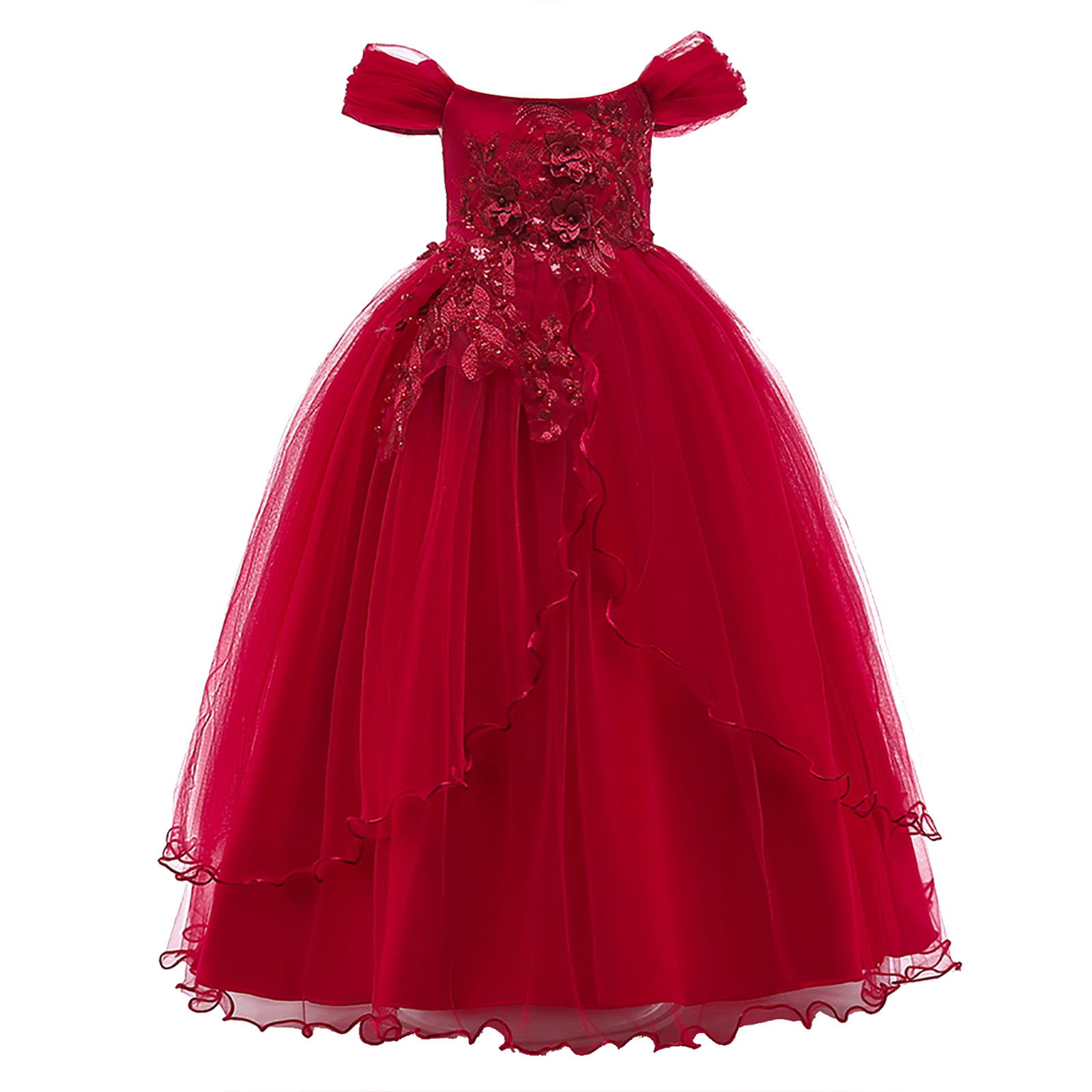 Детское фатиновое платье с открытыми плечами для девочек; Платье принцессы с объемной аппликацией и оборками; Платье для торжеств; Вечерние платья на свадьбу.