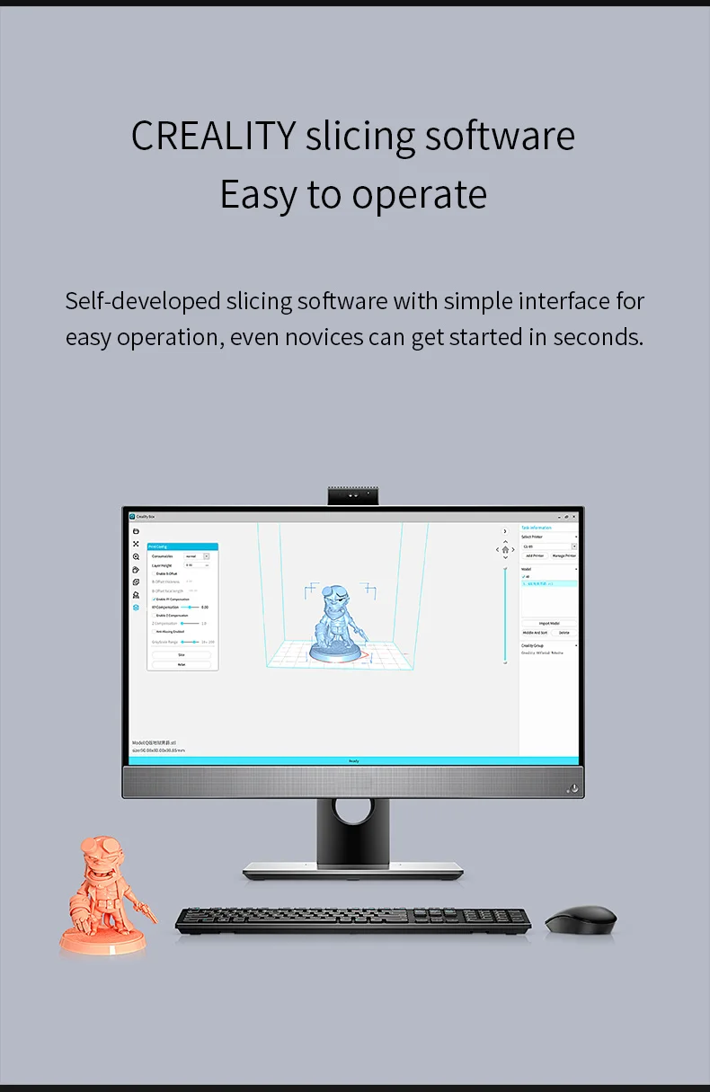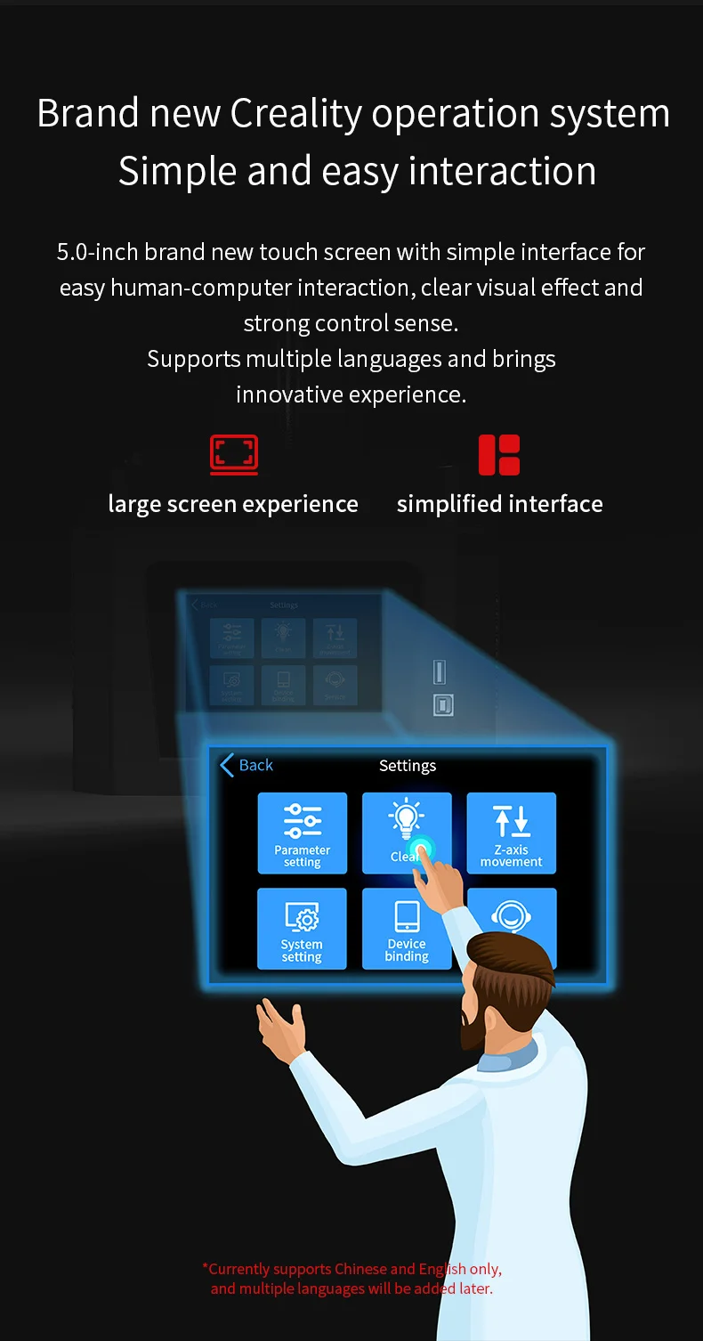 Новый светильник структура источника: 120 Вт мощность супер Точечный светильник, 4000uw/m, 90% Однородность. Автономный интегральный светильник, точный светильникВысокая гибкость нарезки, Creality новая система нарезки:Упрощенный пользовательский интерфейс и простая функция моделирования, а также поддержка параметров, настраиваемых с высокой стабильностью z-оси для высококачественной печати.WIFI-APP умное управление. Поддерживает Creality Cloud.