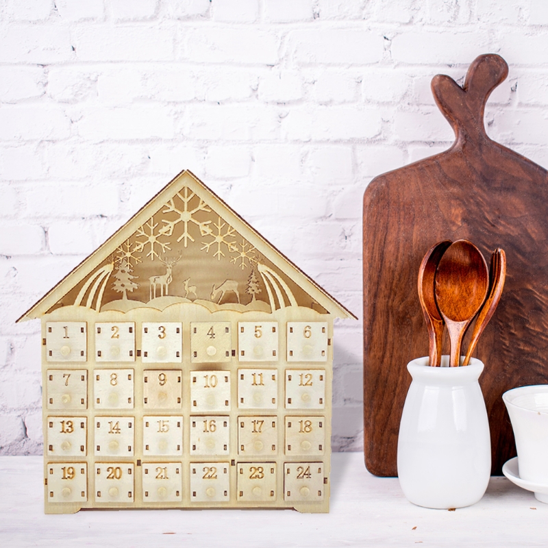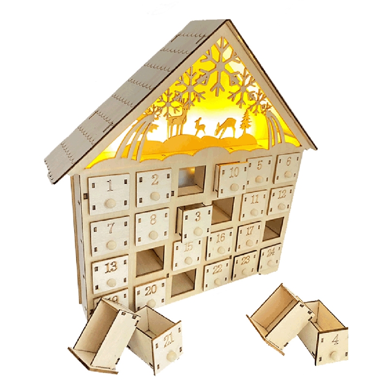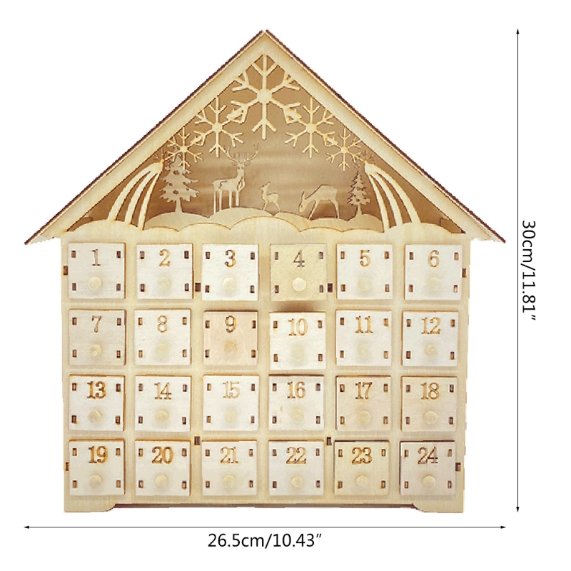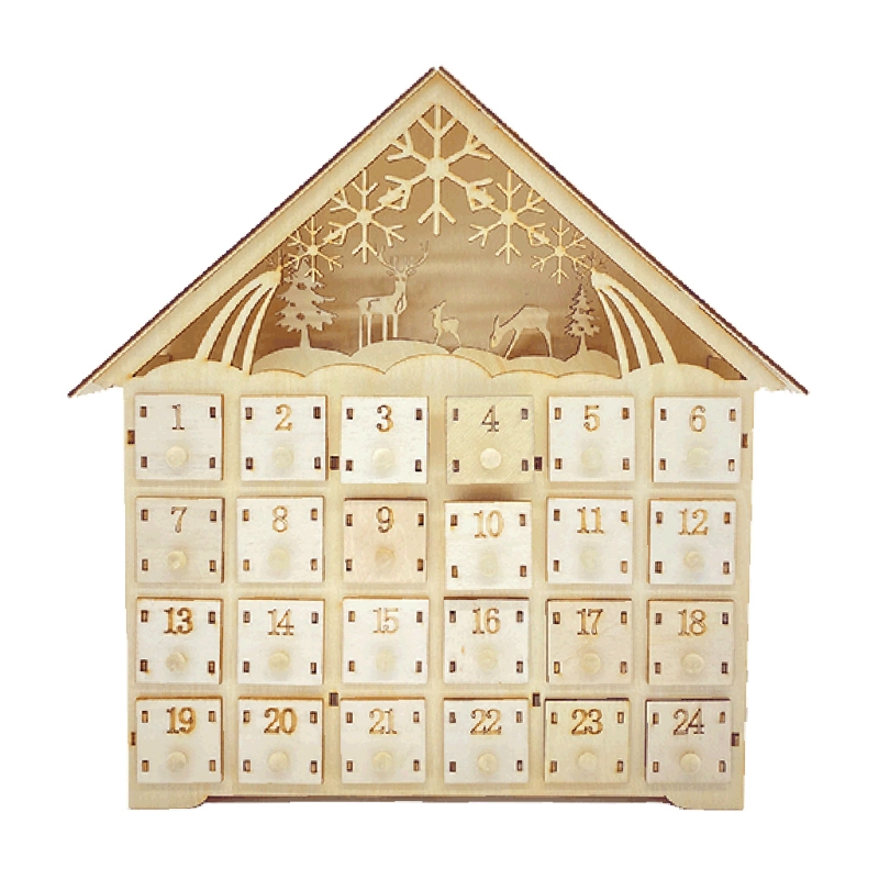 Y5LE Лось Снежинка деревянный Рождественский календарь обратного отсчета светодиодный светящийся деревянный дом рождевечерние Декор Адвент календарь 24 хранения милый