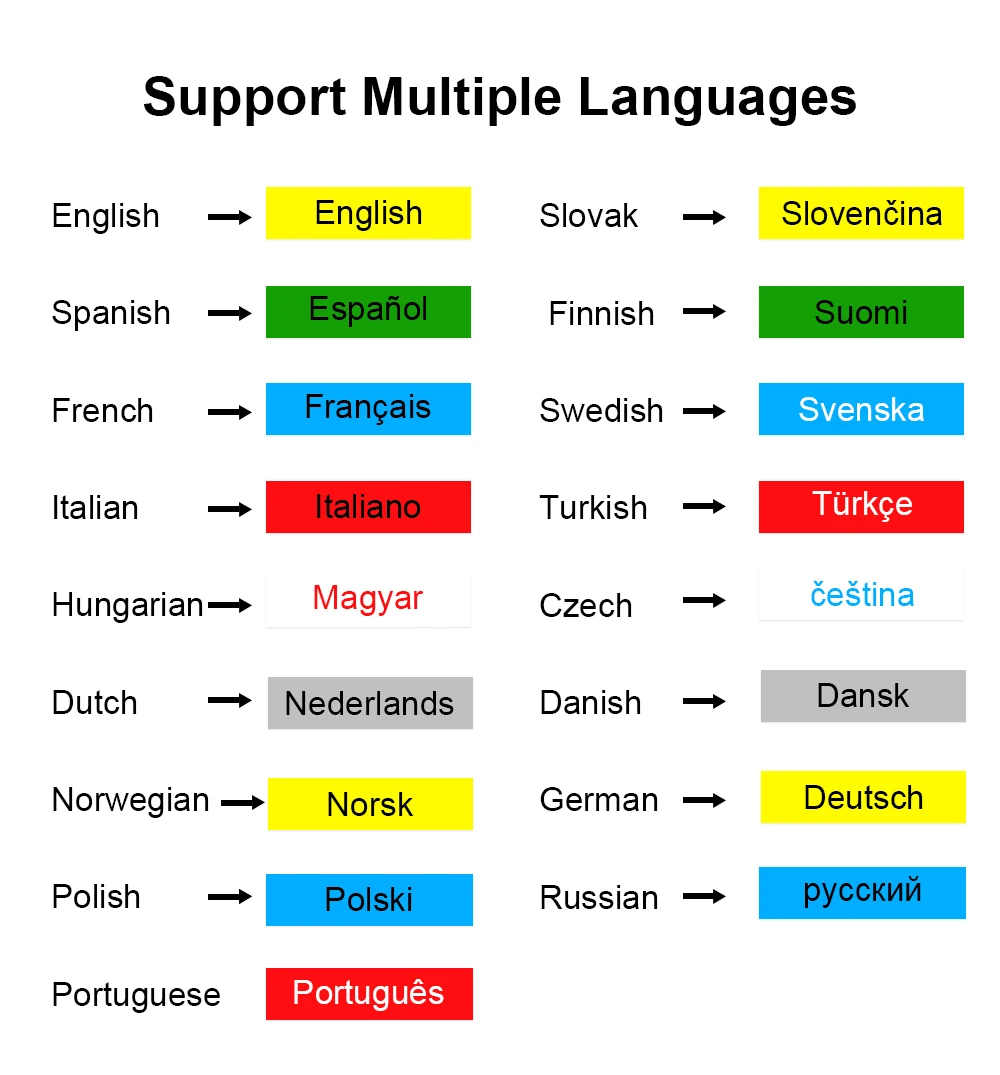 Поддержка 17 видов систем langauge
