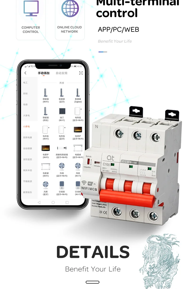 4、Remote control:by smartphone application anywhere ,our breaker need to in the WIFI condition.(the smartphone must connect to the internet in WiFi or 3g / 4g)