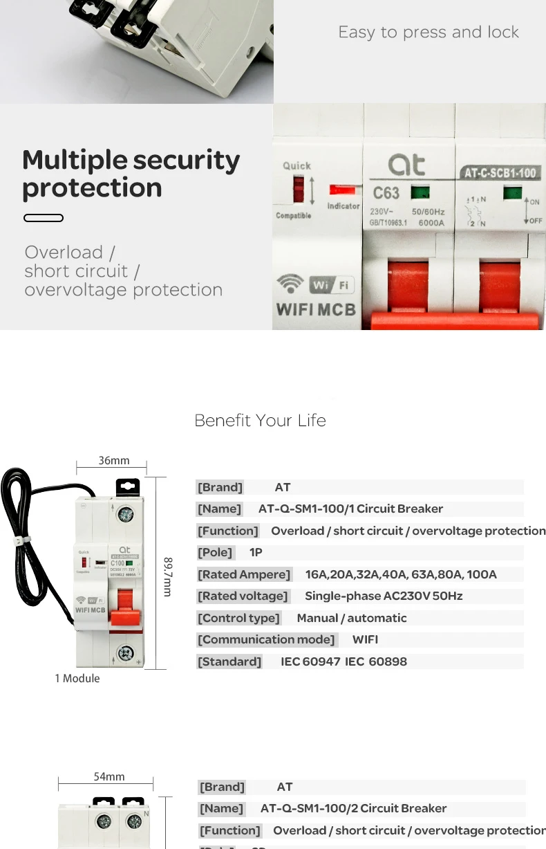 Executive standard: GB10963.1, IEC60898-1, GB/T21706