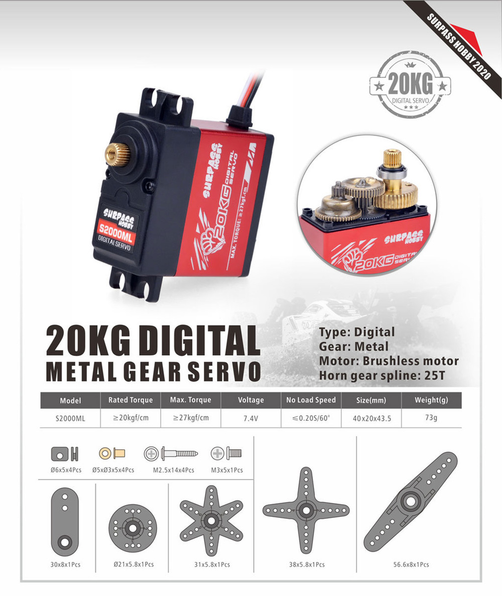SURPASS Hobby S2000ML 20 кг Цифровая металлическая Шестерня серводвигатель RC автомобиль для высокоскоростной 1/8 RC автомобиль Самолет RC лодка умный робот модель