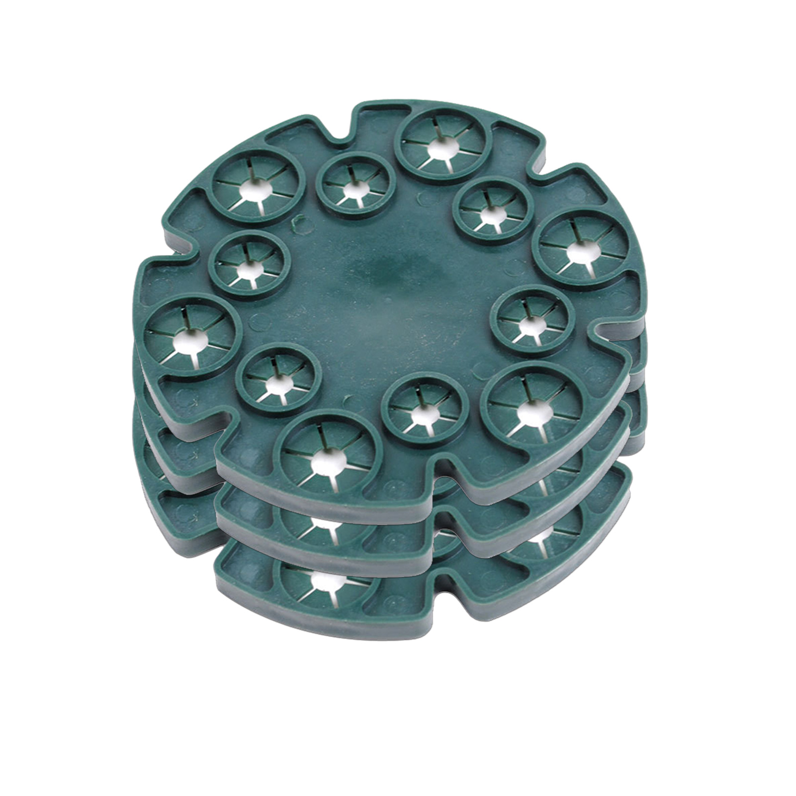 1. It is perfect for indoor or outdoor use. This round plate holder has holes where your canes or sticks go through.No tie needed, it stays on the canes and holds it firm and strong.