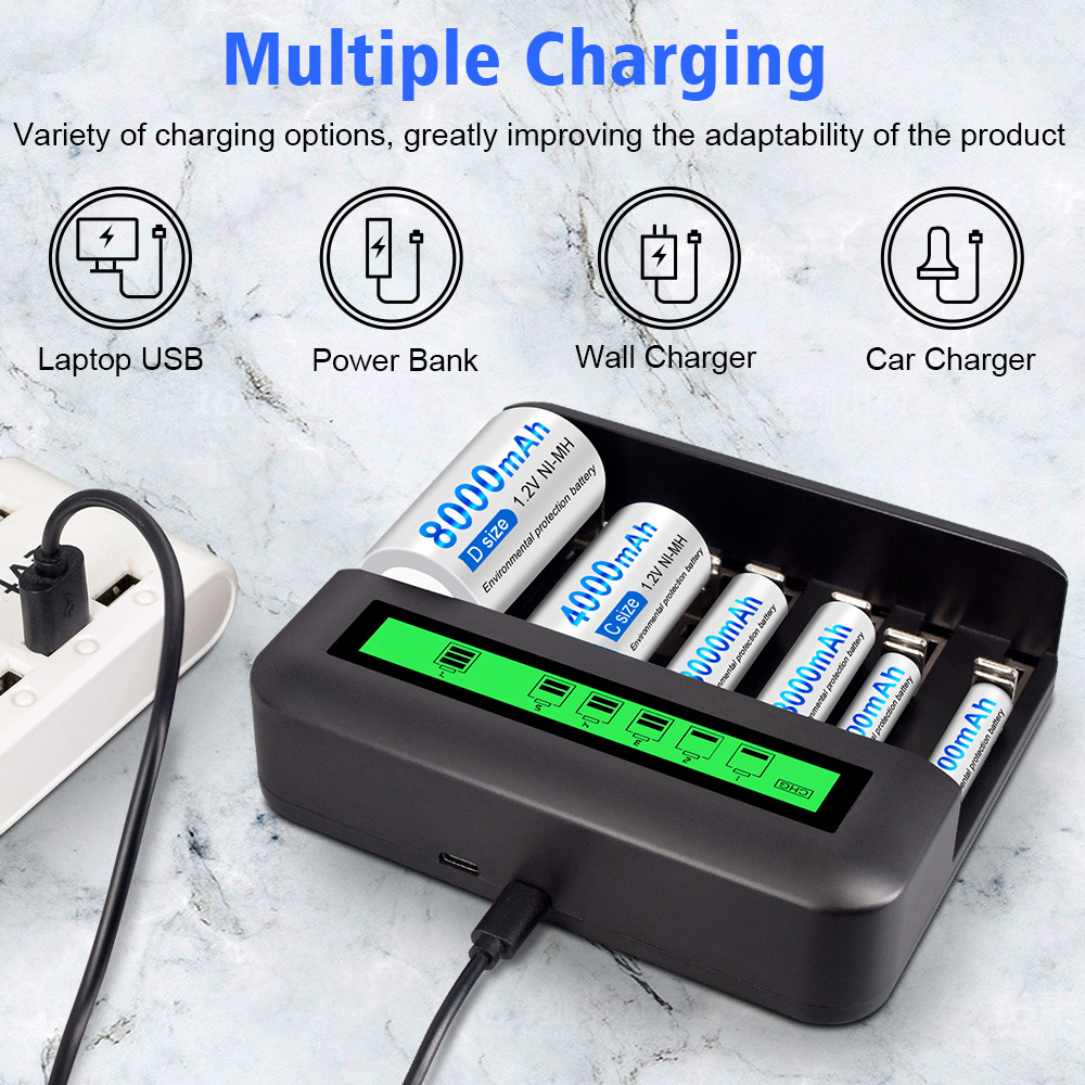 Зарядное устройство для аккумулятора AA подходит для зарядки аккумулятора AA, AAA, C, D.
