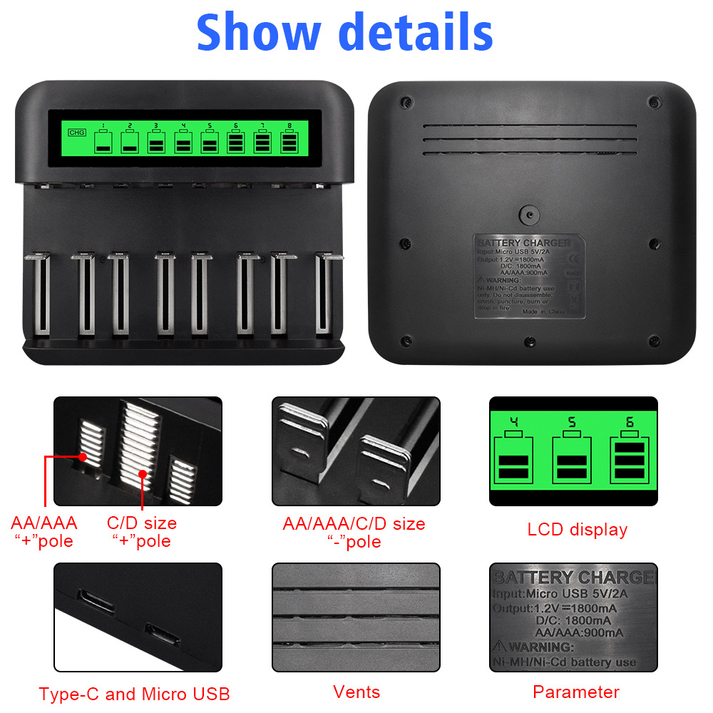 Зарядное устройство с перезаряжаемой батареей оснащено ЖК-дисплеем, что делает его более удобным для отображения состояния зарядки.