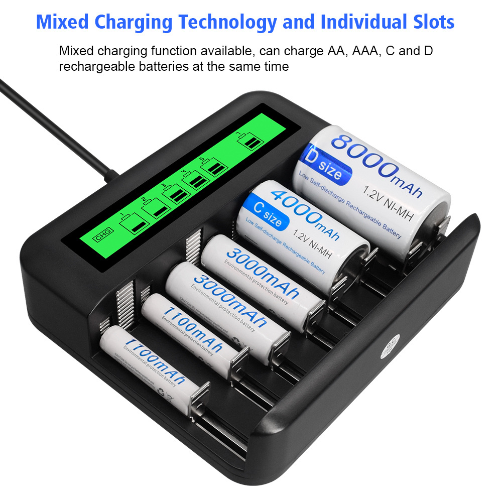 Это 8-разъемное зарядное устройство может заряжать 8 батарей одновременно, что экономит время.