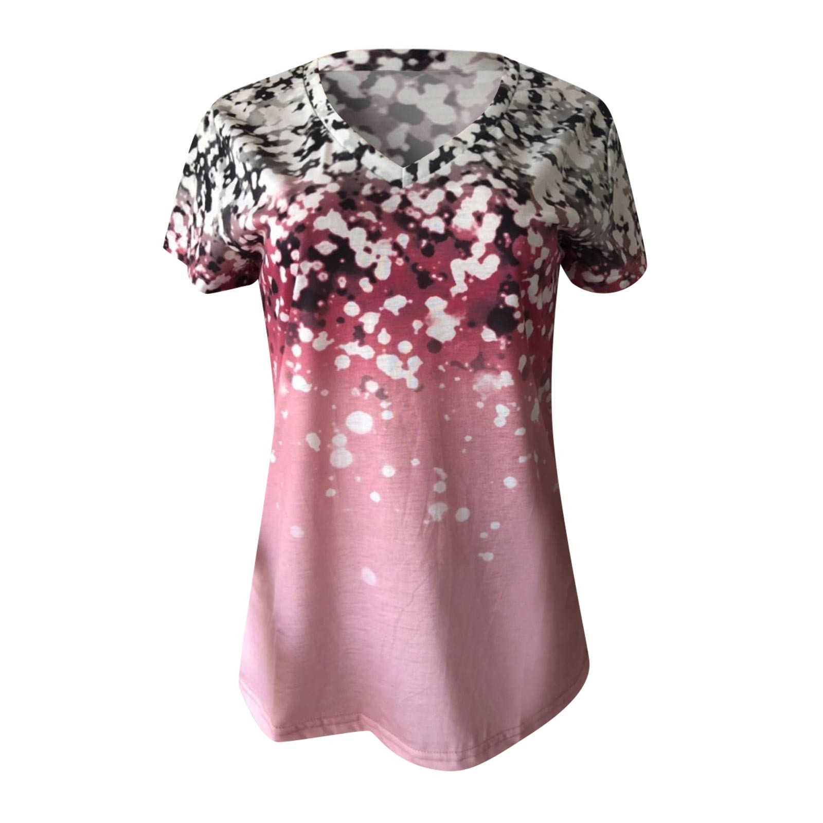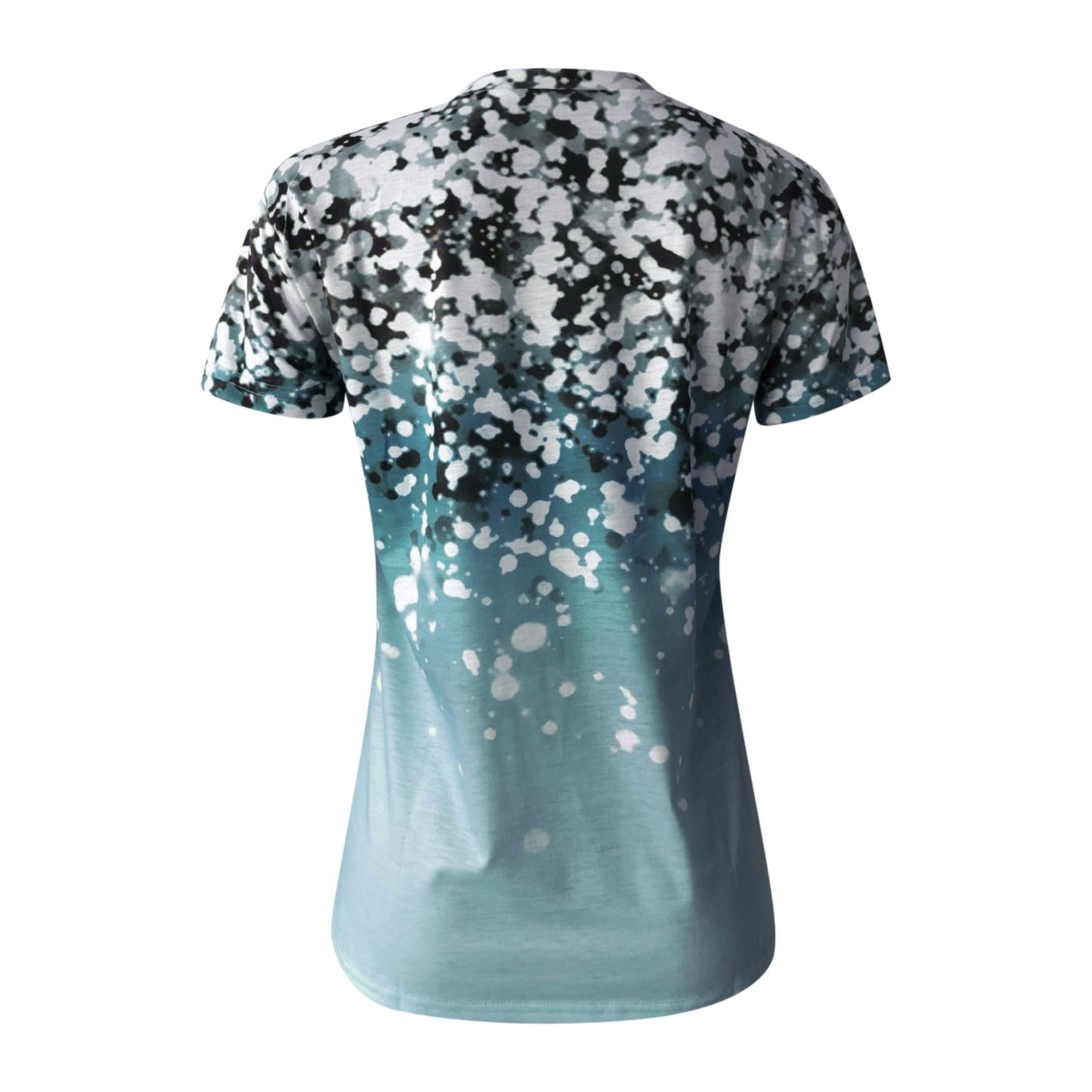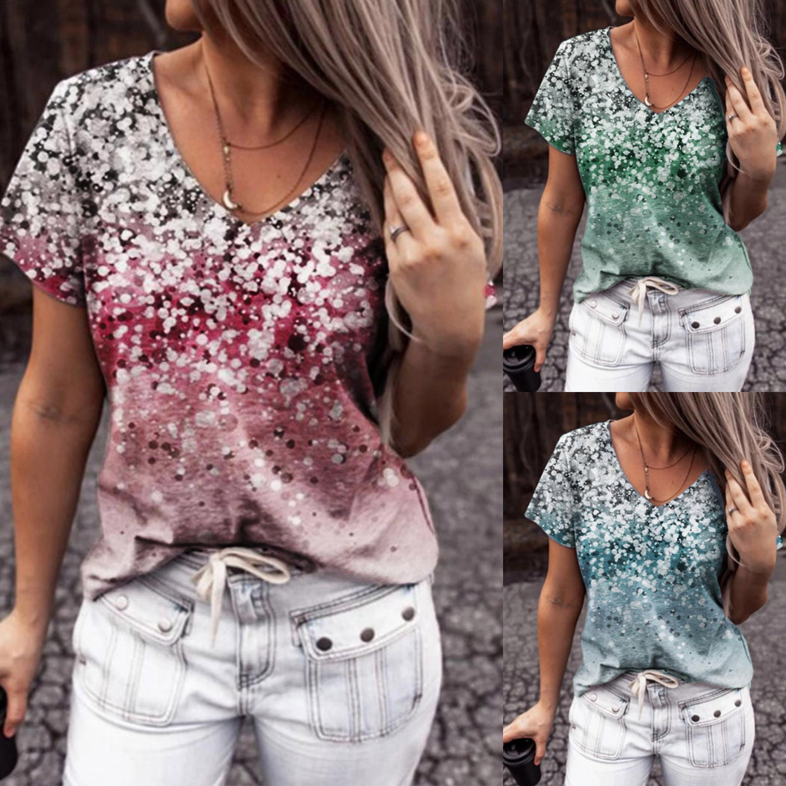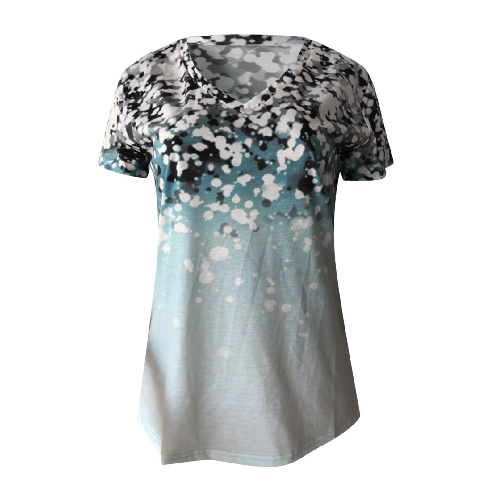 Gradient Flower Print T-Shirt Harajuku Womens V-Neck Short Sleeves Top Summer Casual Loose T-shirt Tops ropa mujer verano