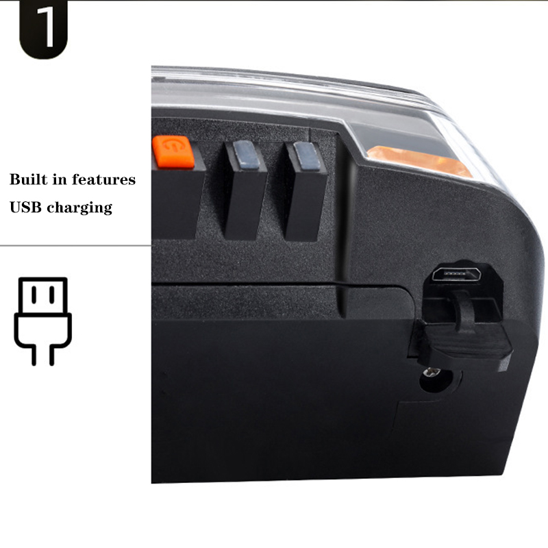 4. Время автономной работы: длинный светильник в течение примерно 20 ч; Быстрая вспышка около 32h; Левые и правые флэш-около 5 часов; Средние + левые и правые флэш-около 5 часов; Флэш-память о 6,5 ч; медленная вспышка около 45 ч. Легкая зарядка через порт USB.