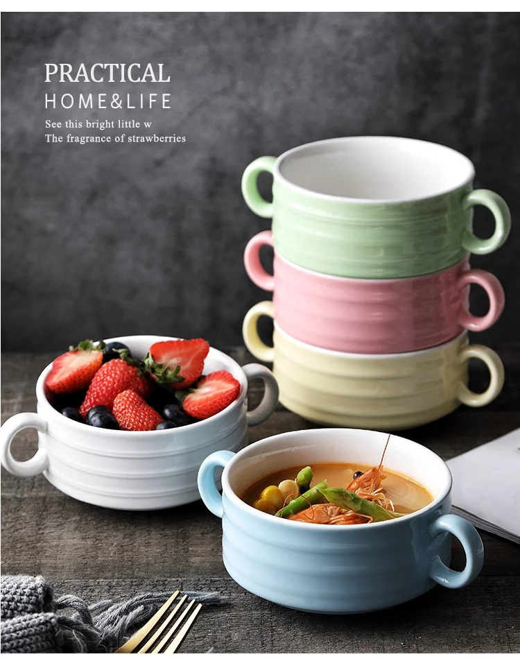 Креативная бинауральная миска для завтрака маленькая миска для каши десертный суповой кастрюли ramen миски керамическая посуда для выпечки