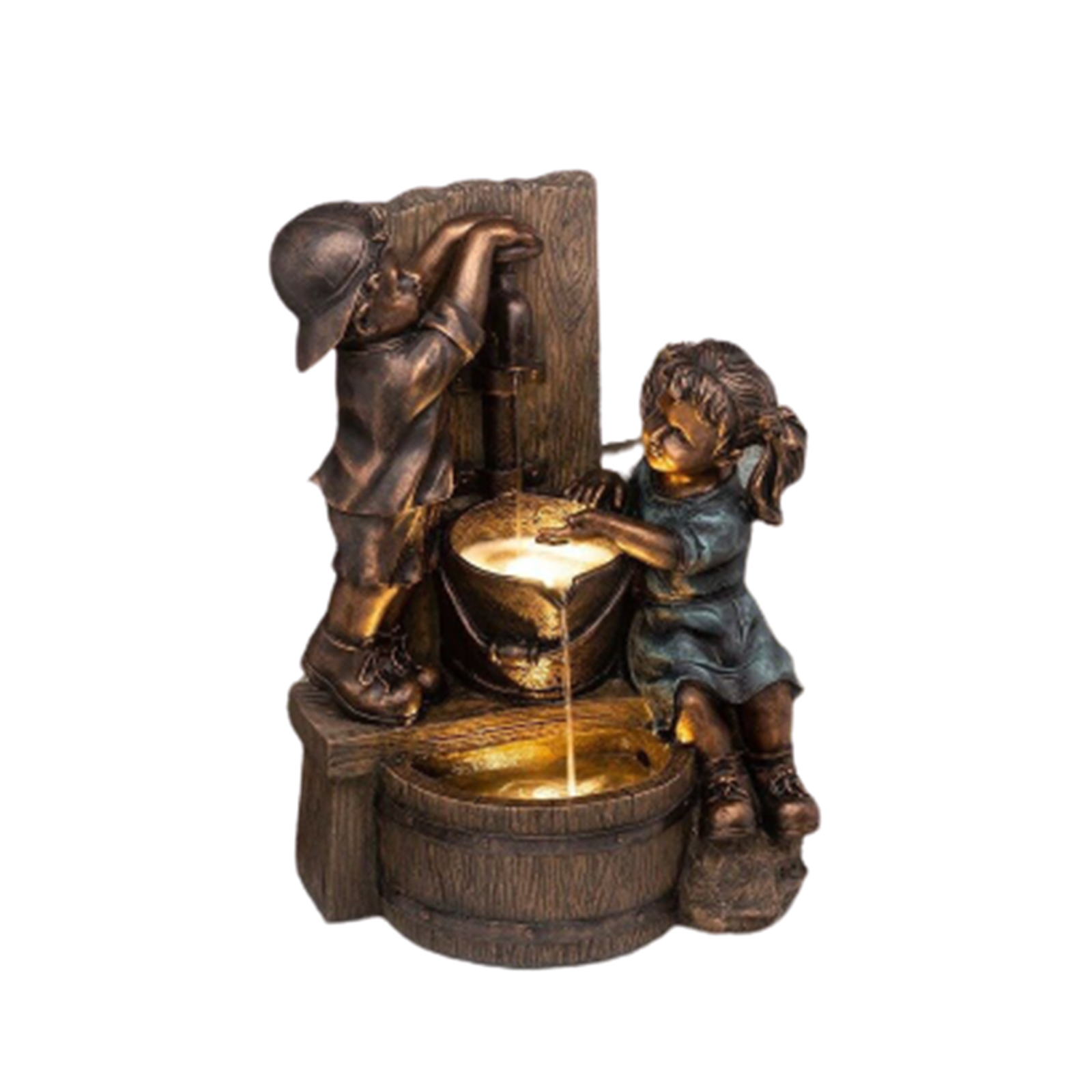 1. Уличная статуя:Причудливая девочка и мальчик, играющие в водяной статуе, отлично смотрятся на вашем дворе или в саду, или помещаются на палубе или крыльце