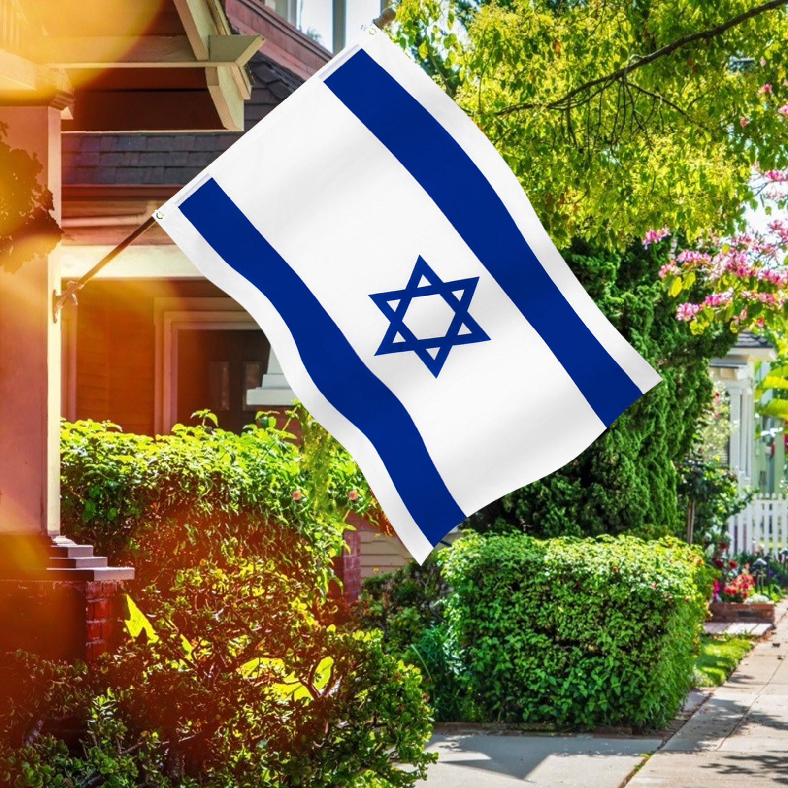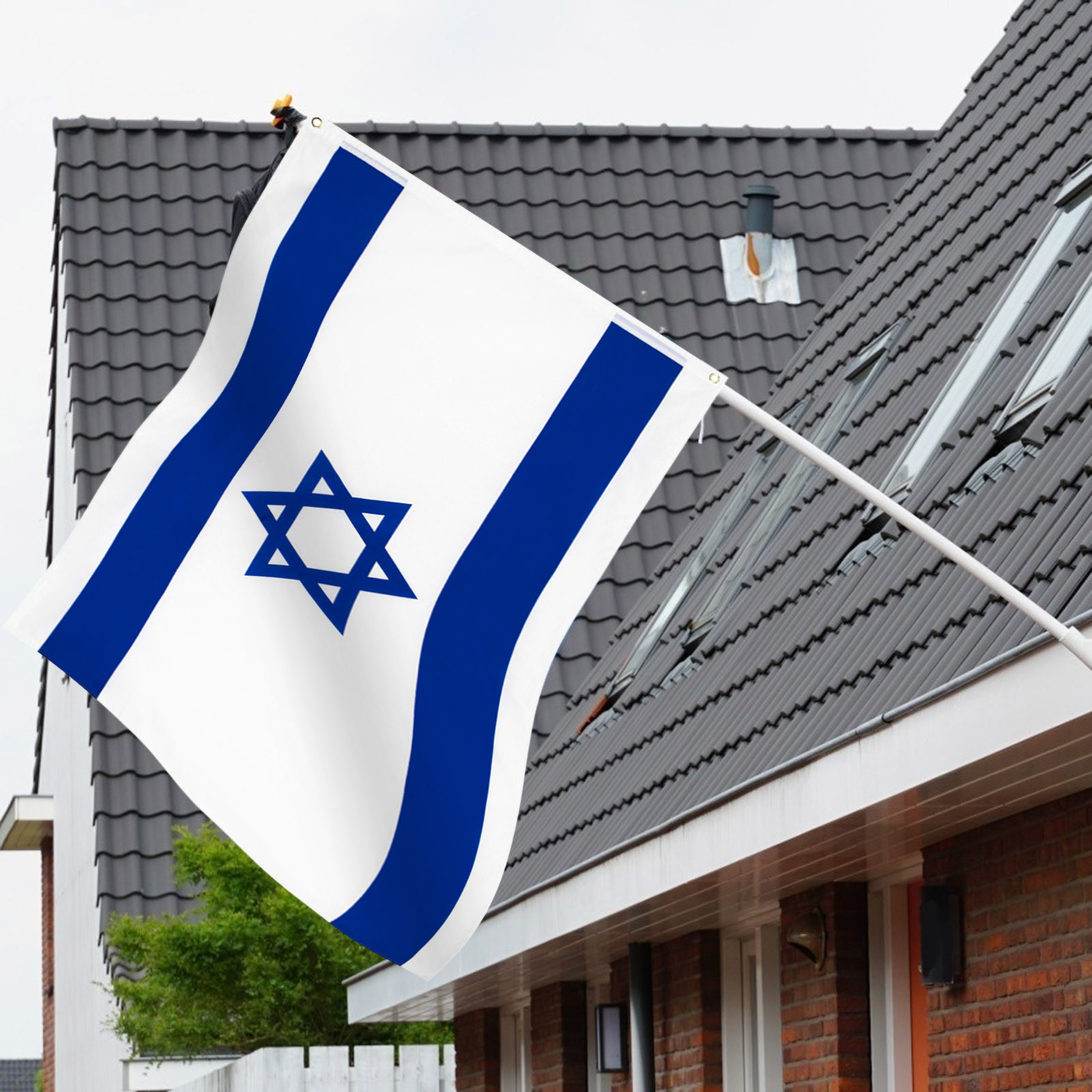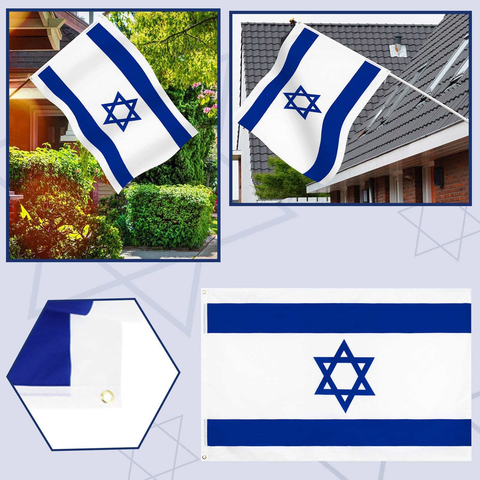 Изготовлен из 100% полиэстера посылка входит один израильский флаг Fly Breeze 3x5 футов.