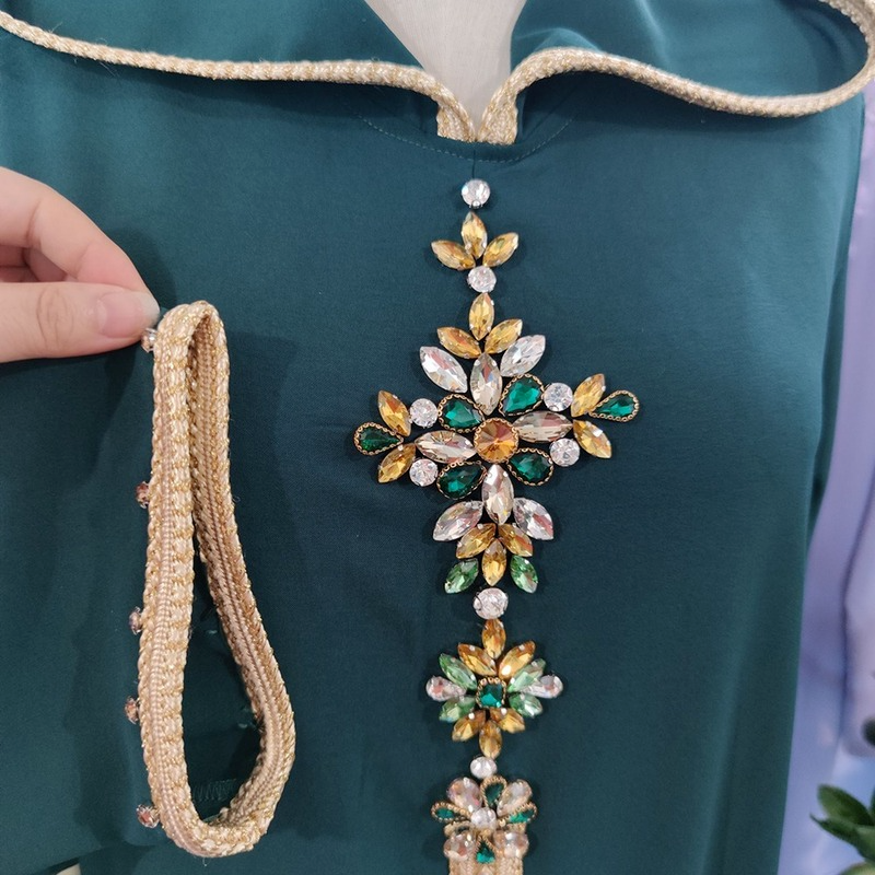 Дубай абайя джеллаба марокканский кафтан для женщин Алмазная коса отделка с длинным рукавом мусульманский хиджаб Maxi платье халат Арабский исламский одежда