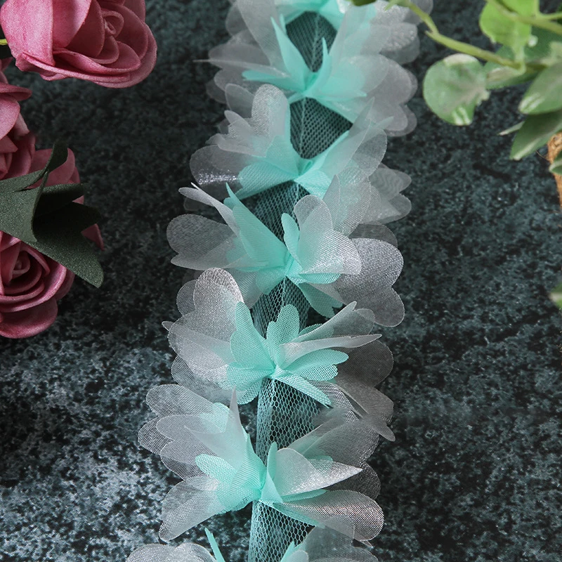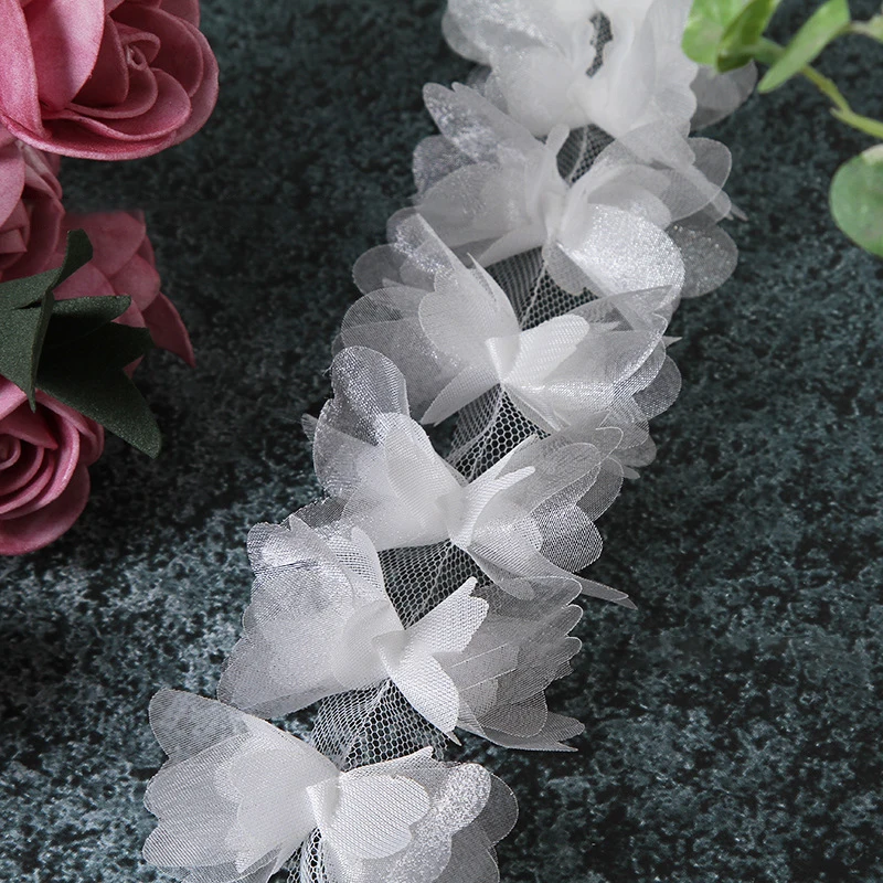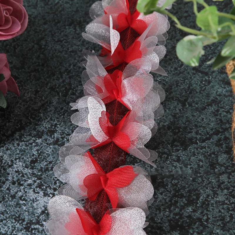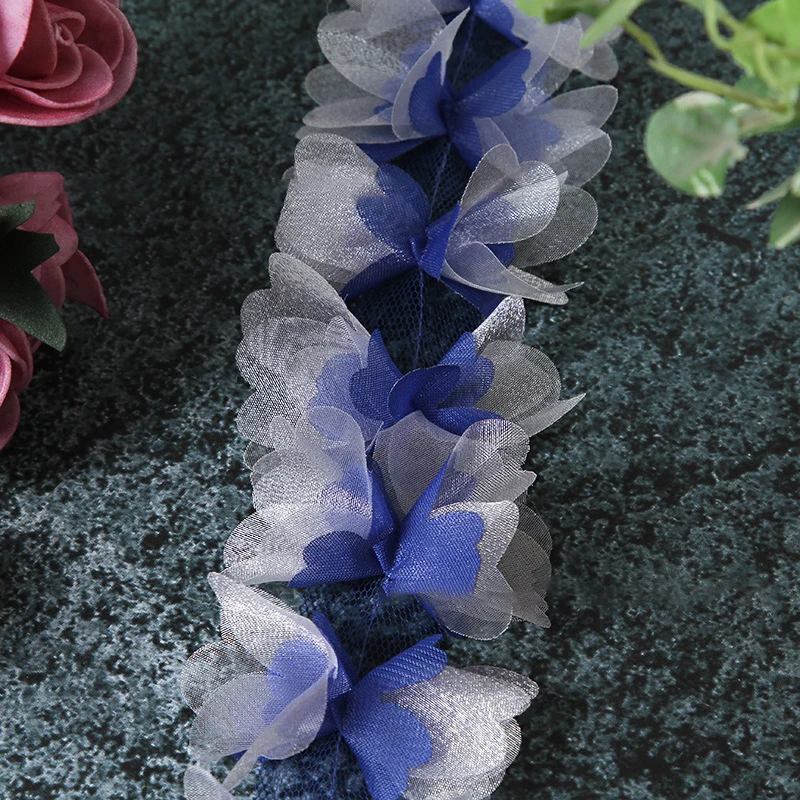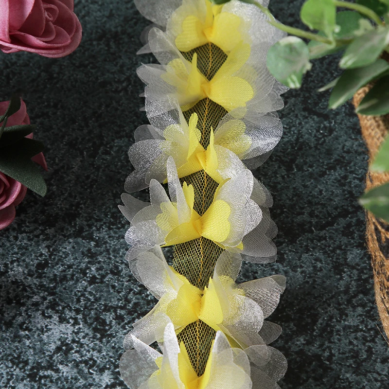 2 ярда 65 мм двухслойная блестящая пряжа шифон Цветы органза кружевная лента DIY головные уборы украшения одежды аксессуары отделка