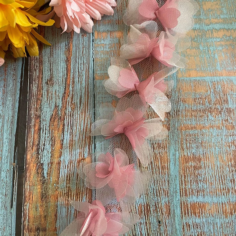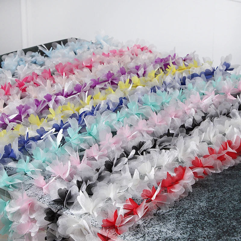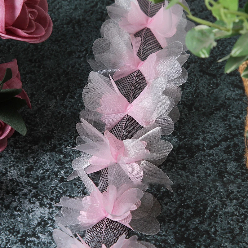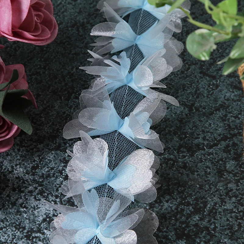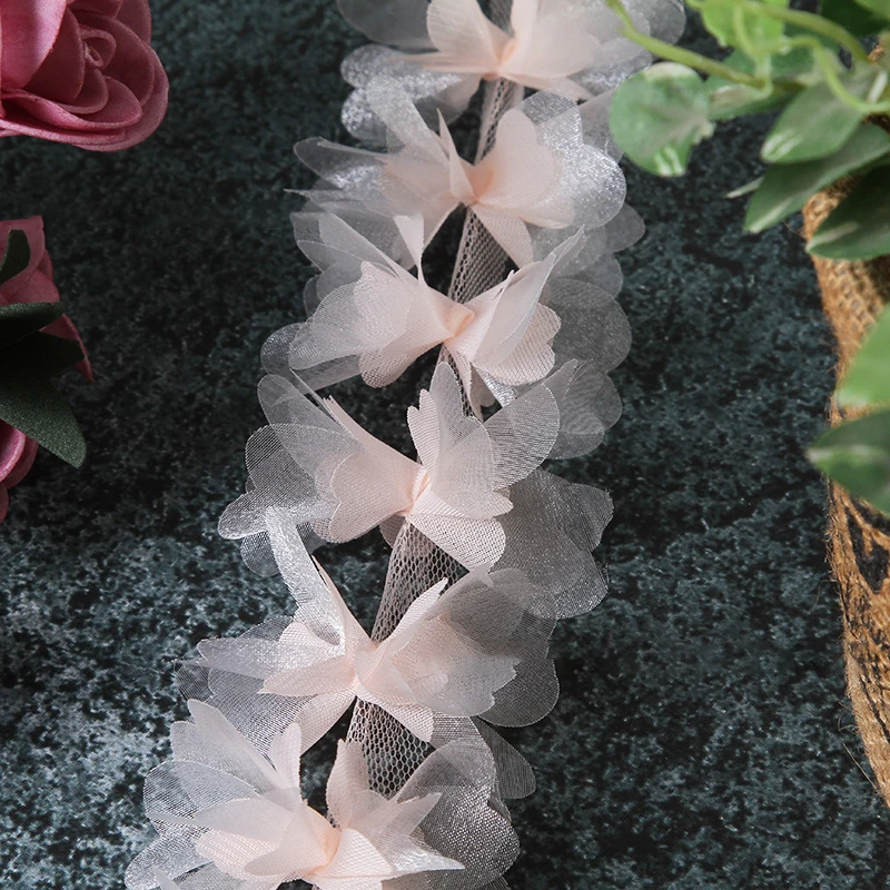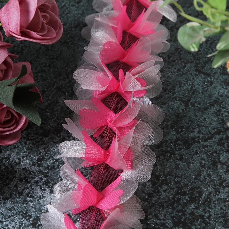 2 ярда 65 мм двухслойная блестящая пряжа шифон Цветы органза кружевная лента DIY головные уборы украшения одежды аксессуары отделка