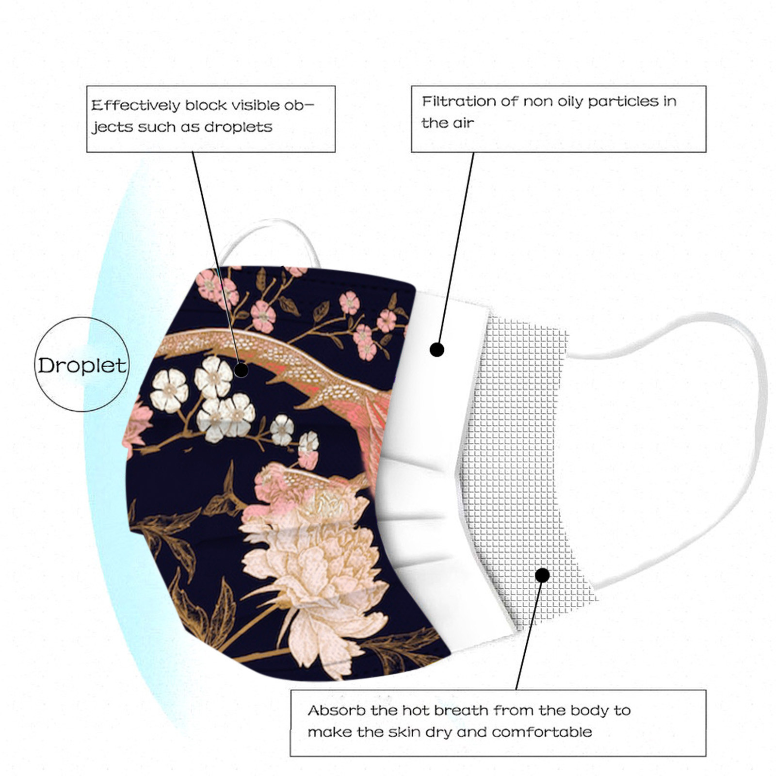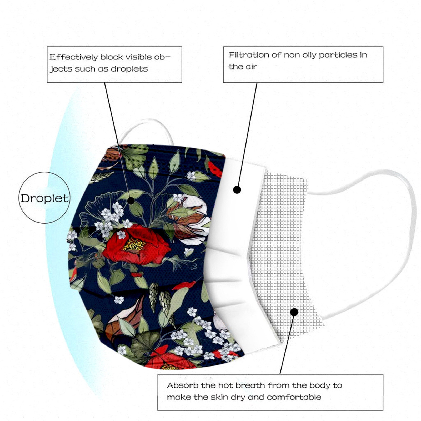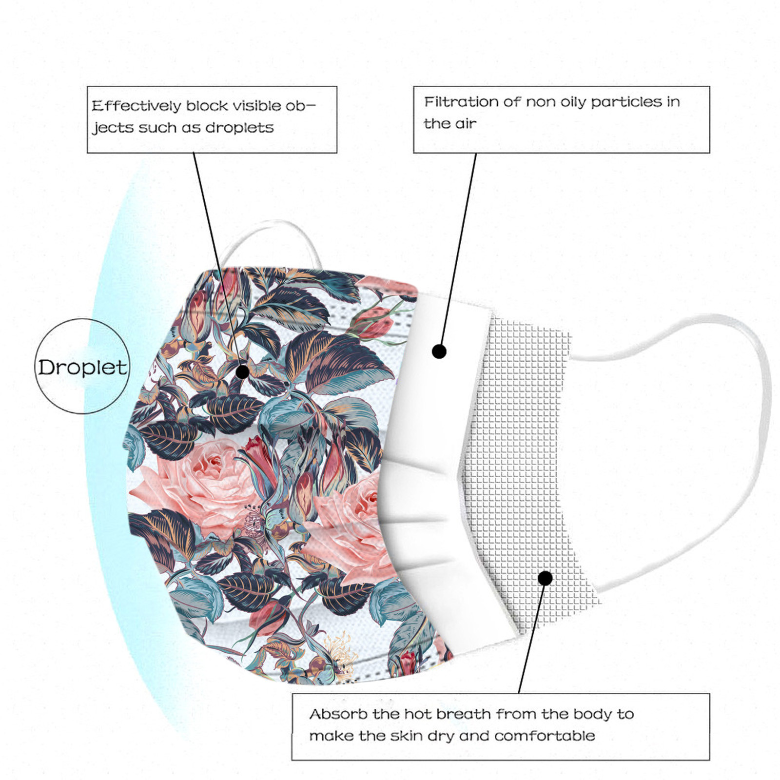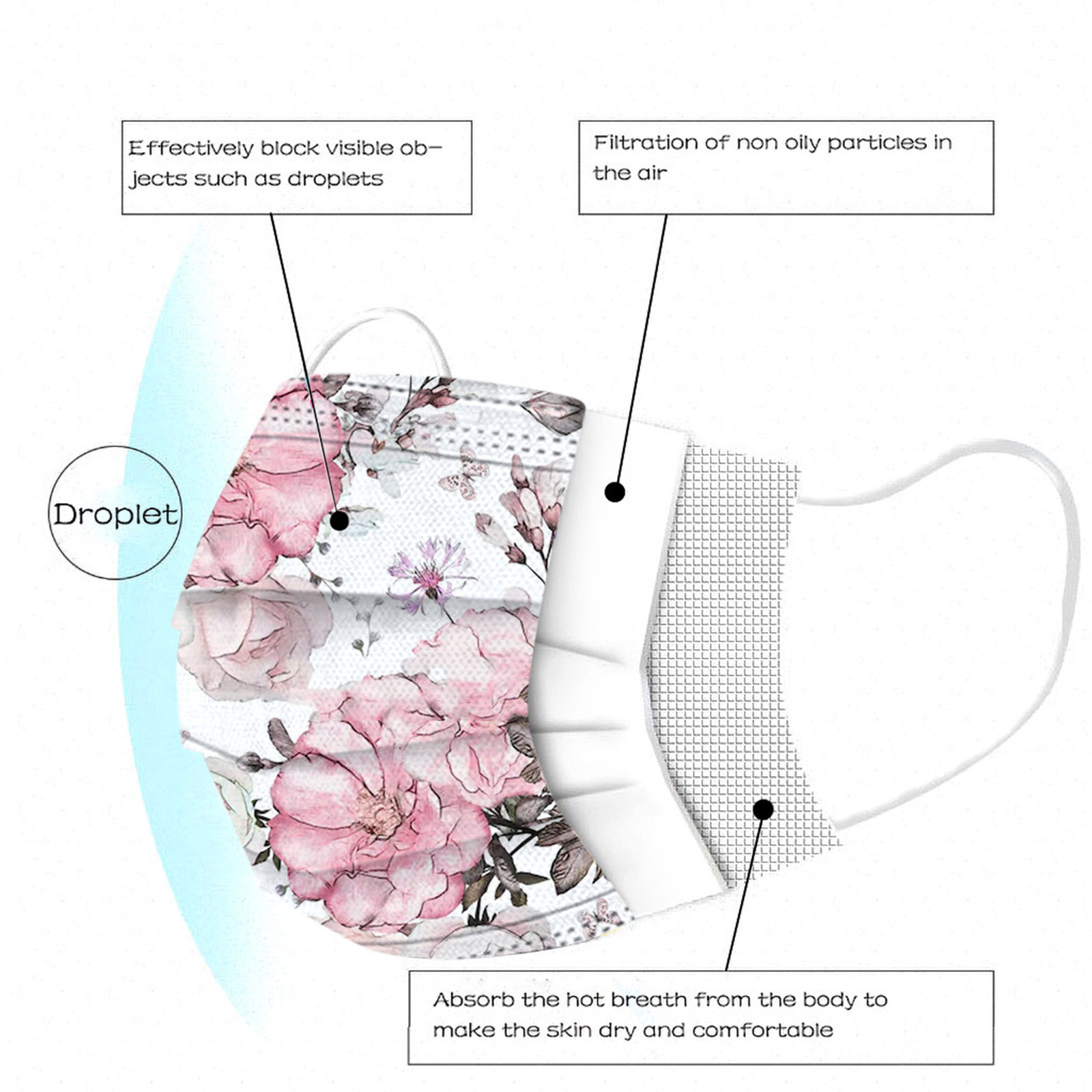 3 слоя Нетканая одноразовая маска изготовлена из 3 слоев нетканого материала, он безопасен для здоровья и безопасный для вас, чтобы использовать. Дышащий материал и милые узоры, что делает его полезным и модным. Специальный 3 слоя из нетканого материала, дизайн, обеспечивает некоторые меры защиты от пыли, автомобильный отходящий газ, пыльцу и т. Д. Эластичная петля уха позволяет легко снимать и надевать цепочку и не давит на уши. Маникюрный салон или любые другие области, где может потребоваться защита