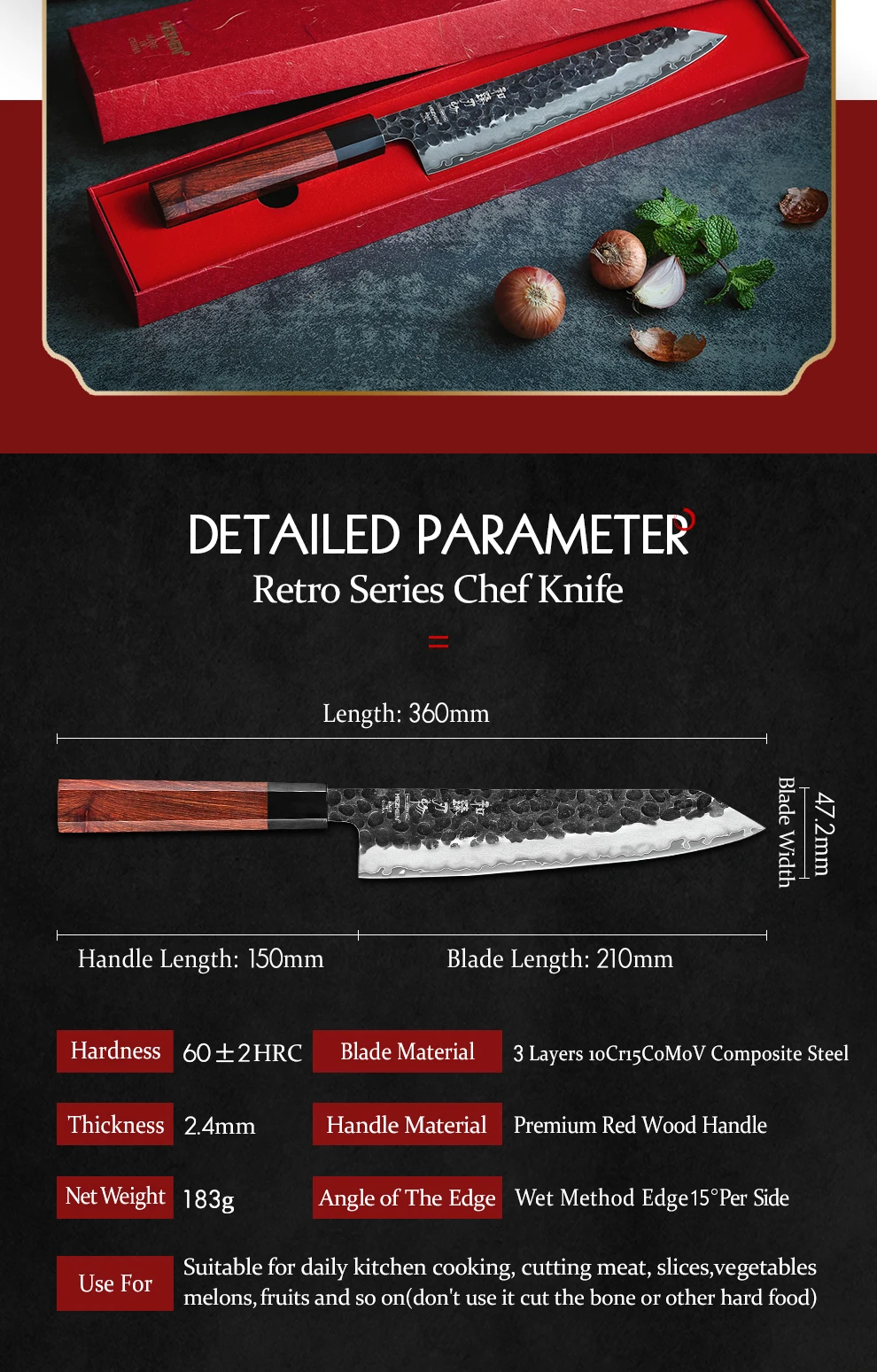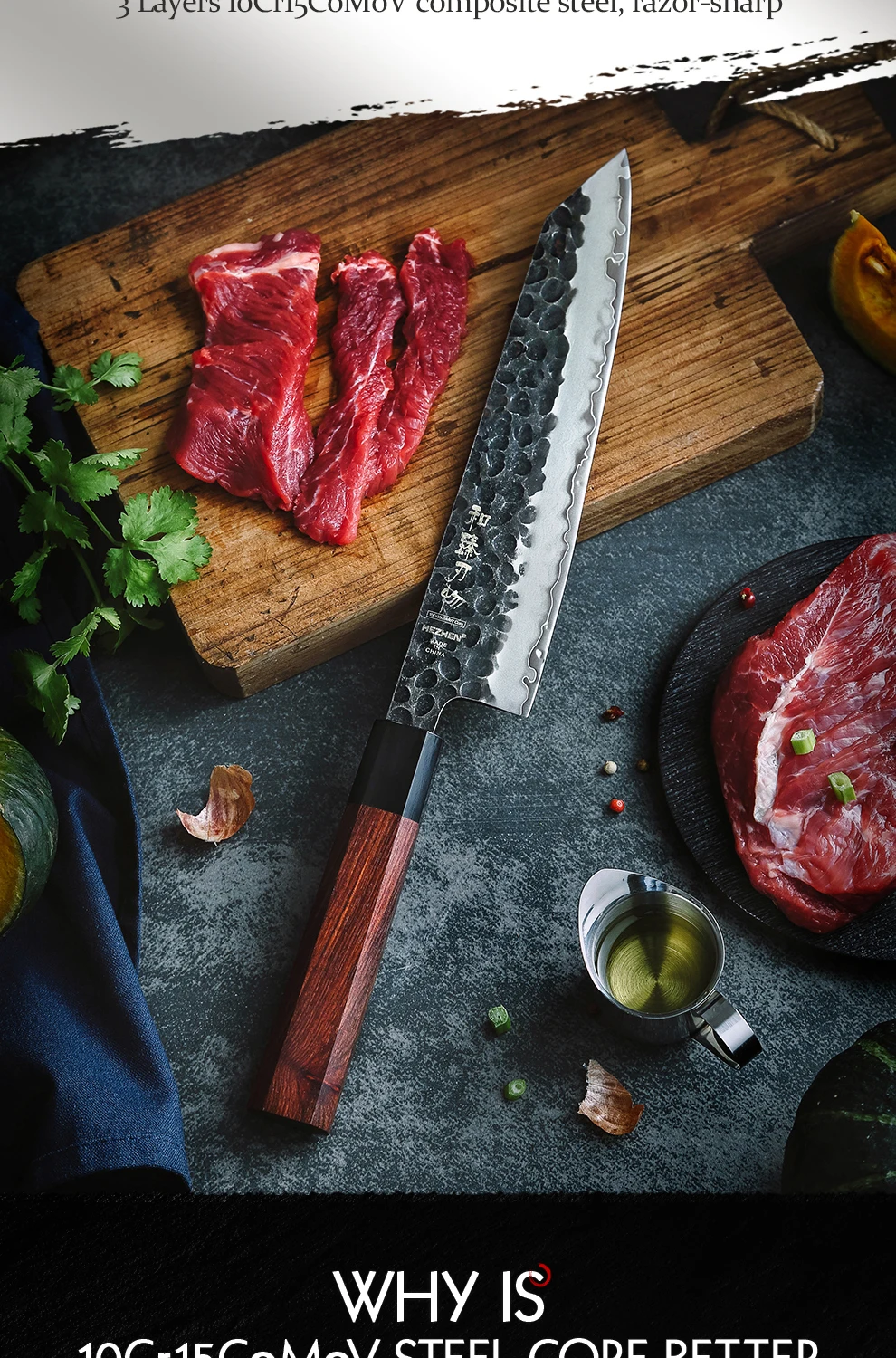 HEZHEN Ретро серии композитный стальной нож шеф-повара