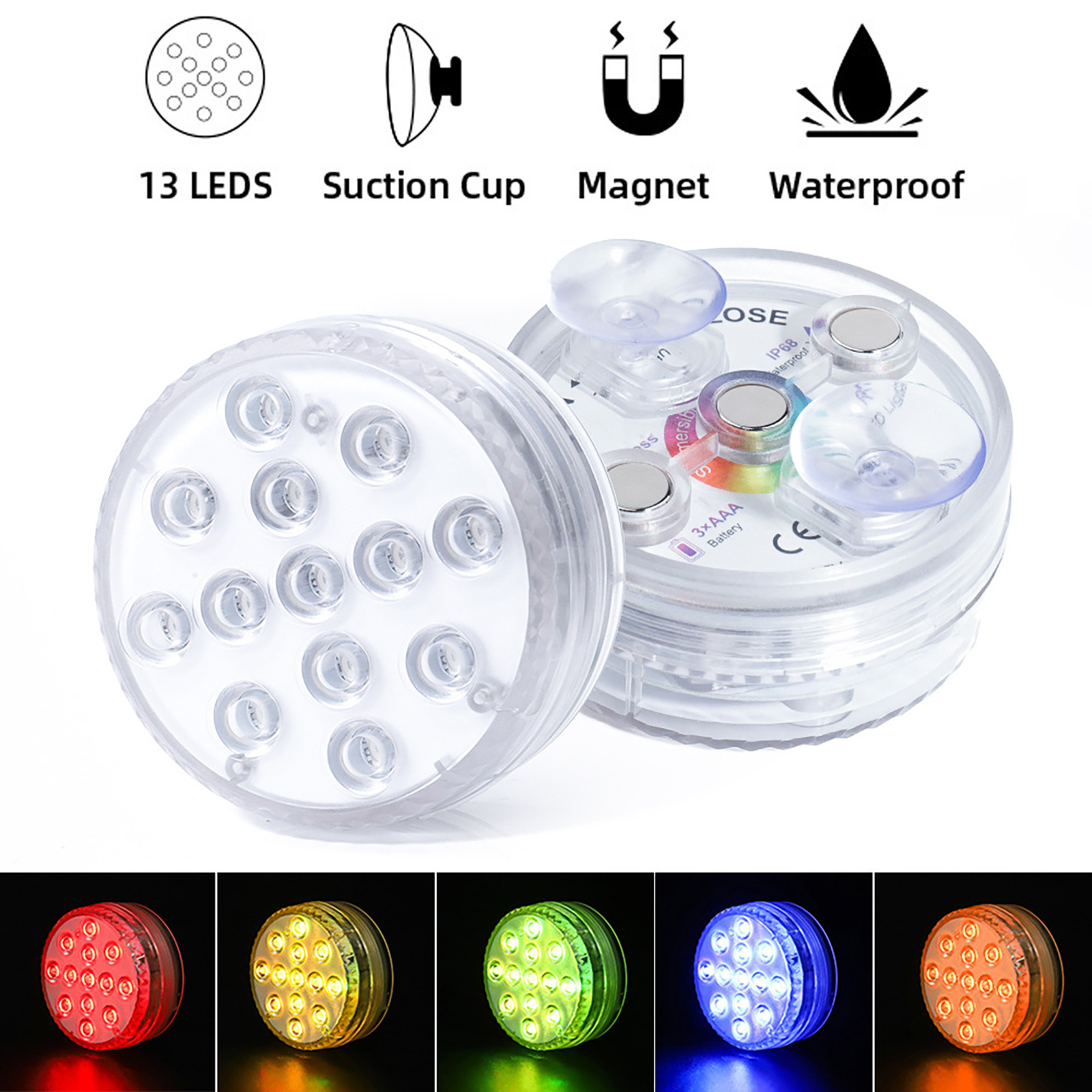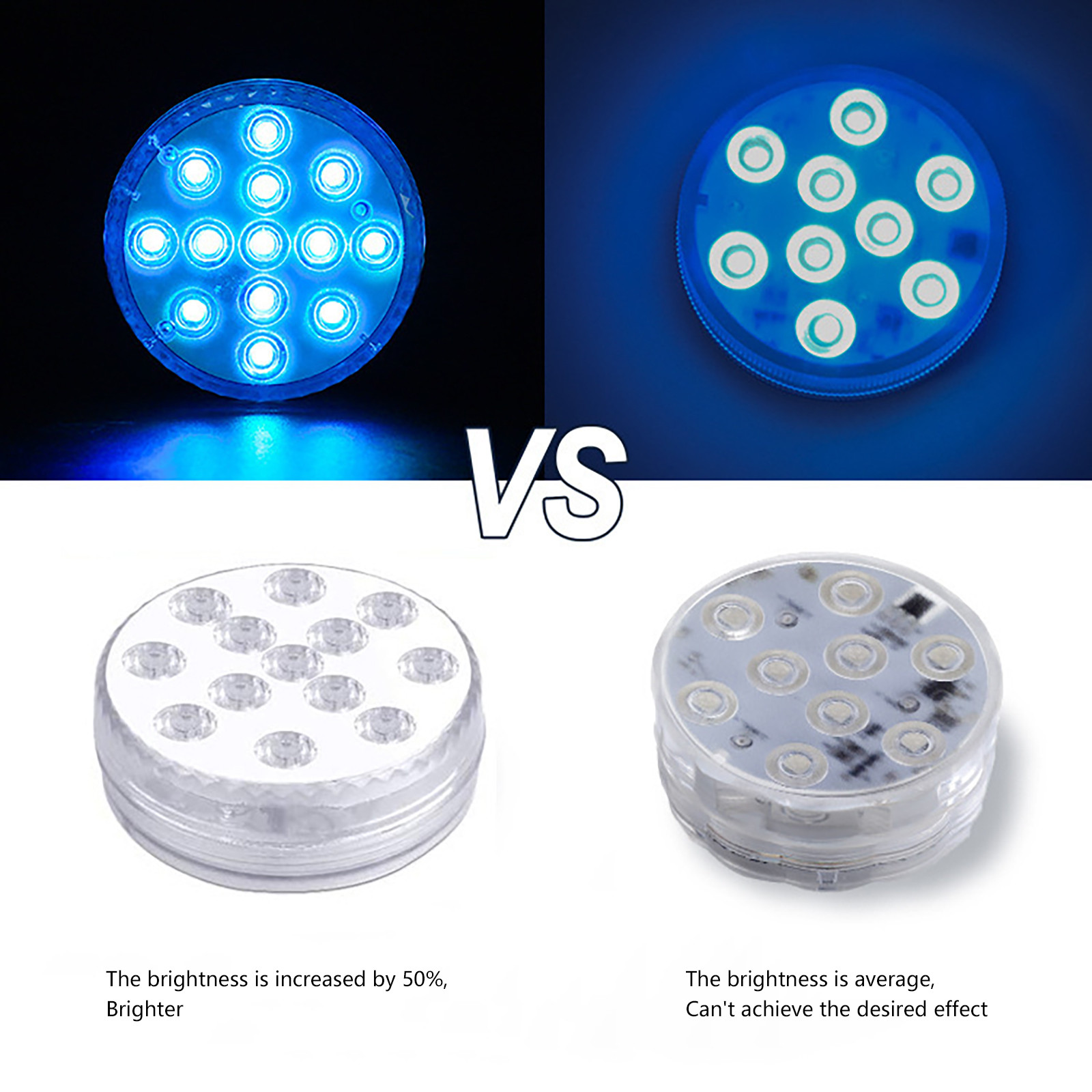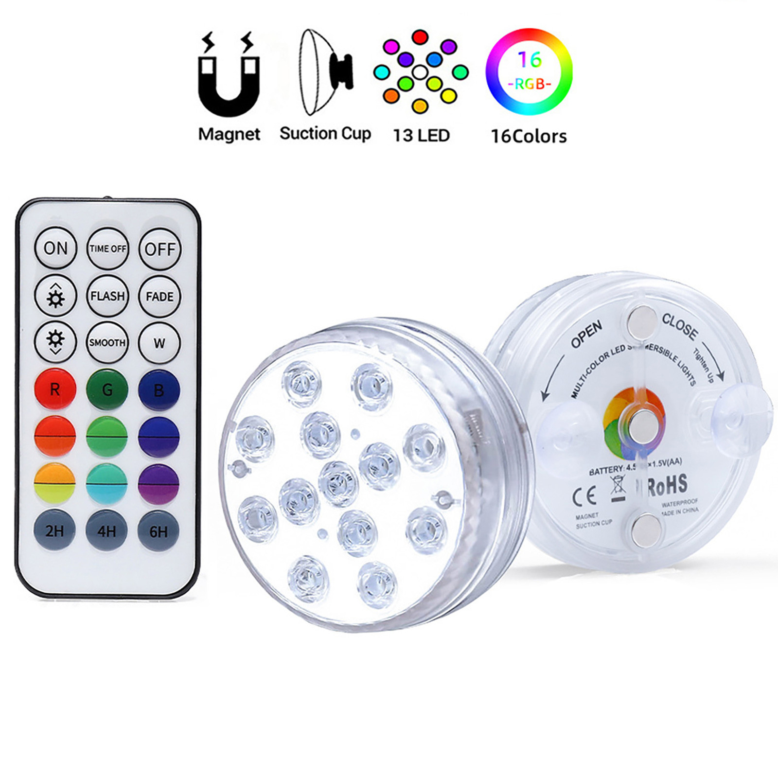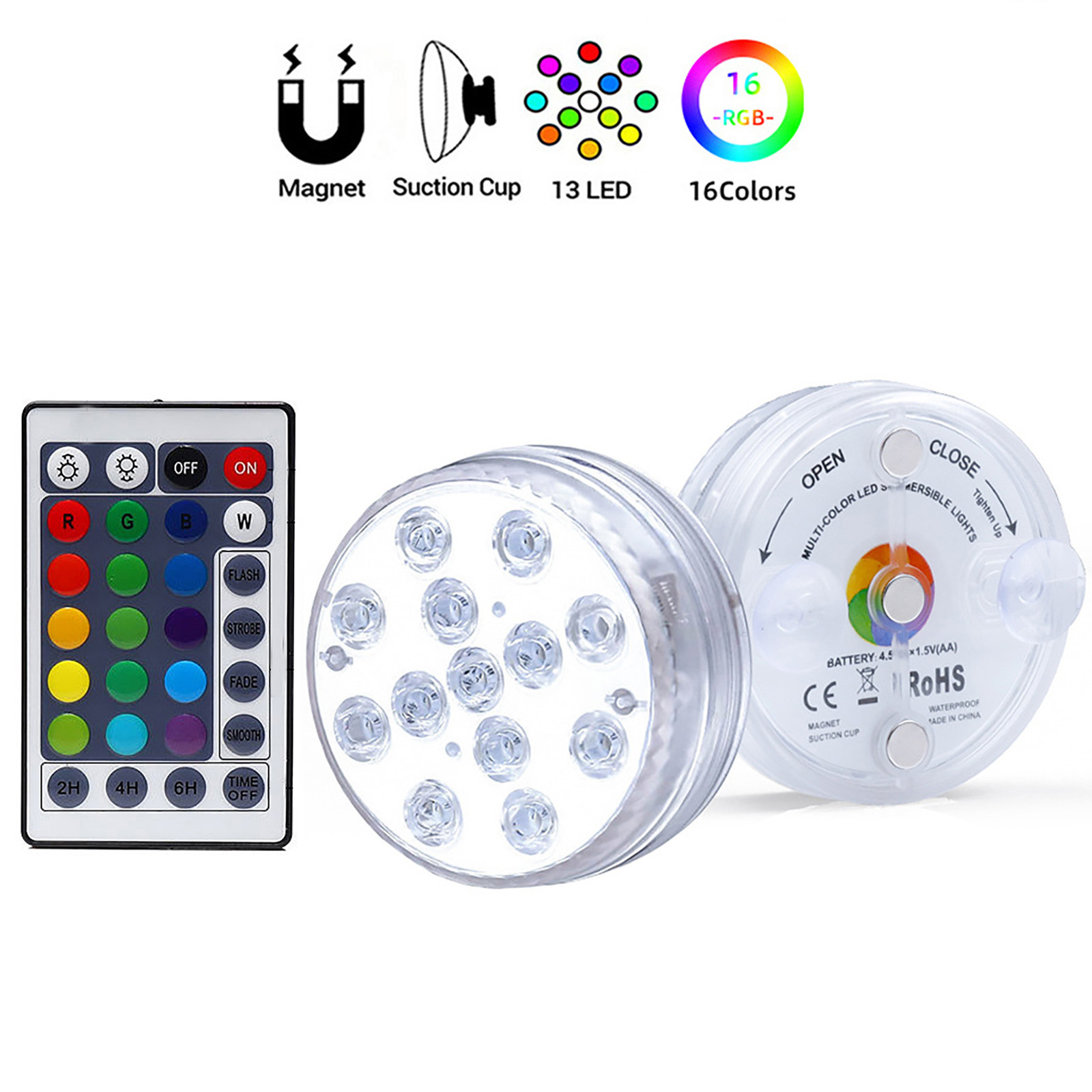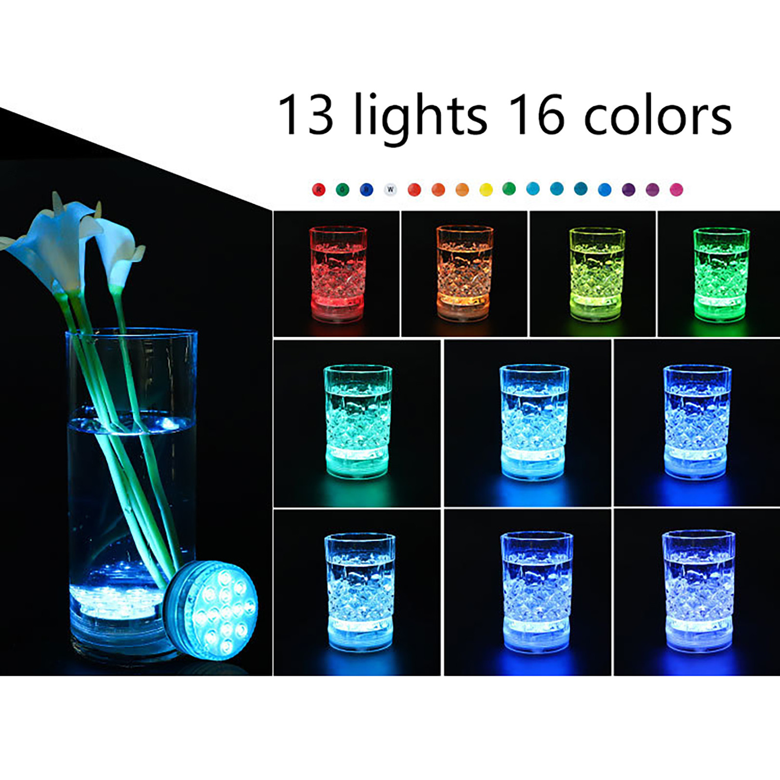 [13 светодиодов, 40 часов длинного дисплея, более яркий более прочный]: водонепроницаемый светильник для пруда s имеет 13 высококачественных светодиодных бусин, он в 3 раза ярче и ярче, чем другой погружной светильник s, который имеет только 10 светодиодов. Светодиодный светильник питается от 3 батареек AA вместо батарей AAA, он работает 20 часов, В 3 раза мощнее и дольше, чем батарея AAA (6 часов). [16 цветов, множество вариантов, затемняемый светильник для бассейна под водой]: оптимизировано 16 динамических цветов, несколько режимов (вспышка, выцветание, гладкая), увеличено 3 кнопки таймера (2h, 4h, 6h), функция затемнения, дает вам больше выбора и создает более красивую атмосферу, Он сильно отличается от других открытых бассейнов в маркетинге (6 цветов, меньше вариантов режима вспышки). С функцией памяти, он запоминает ваши последние настройки, нет необходимости устанавливать снова.Нужно принести свои собственные батареи 3xAA