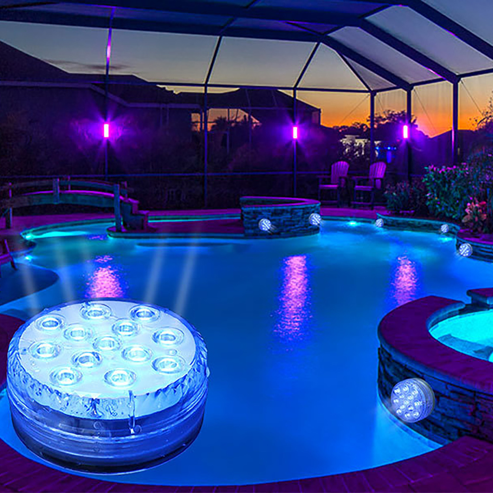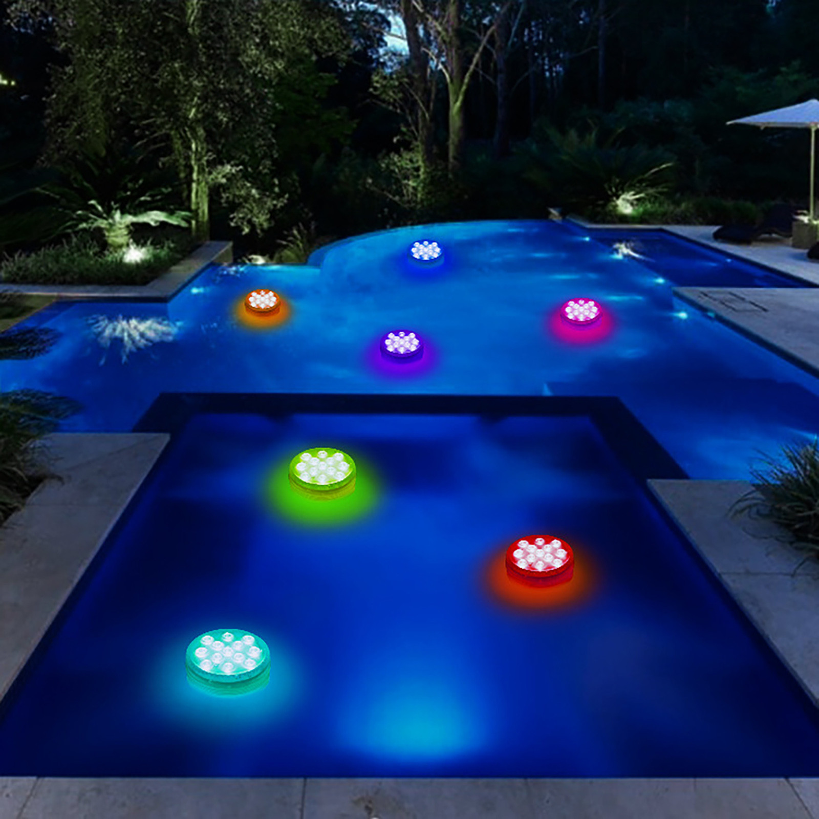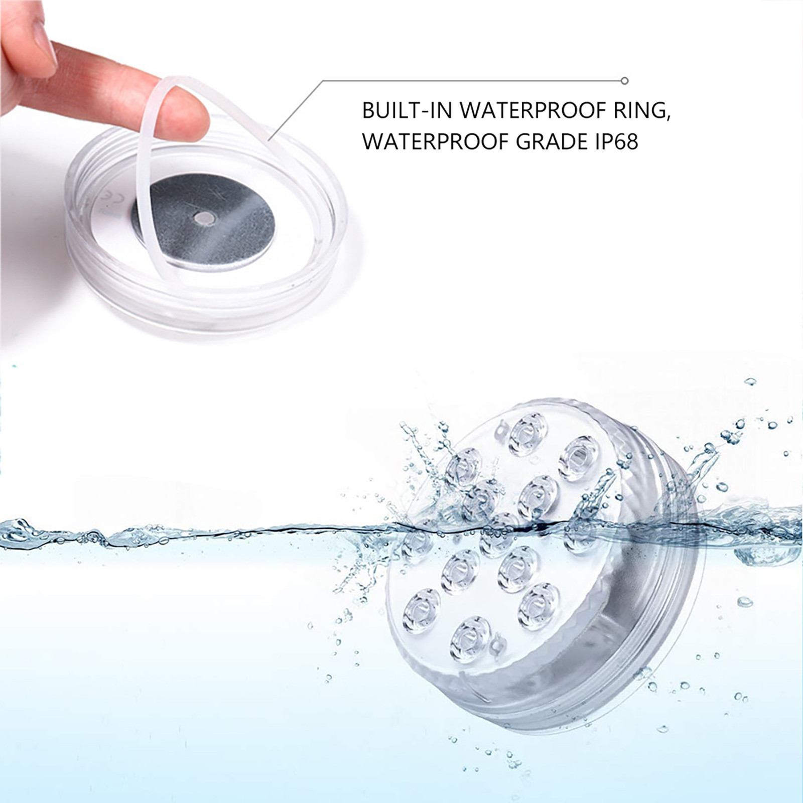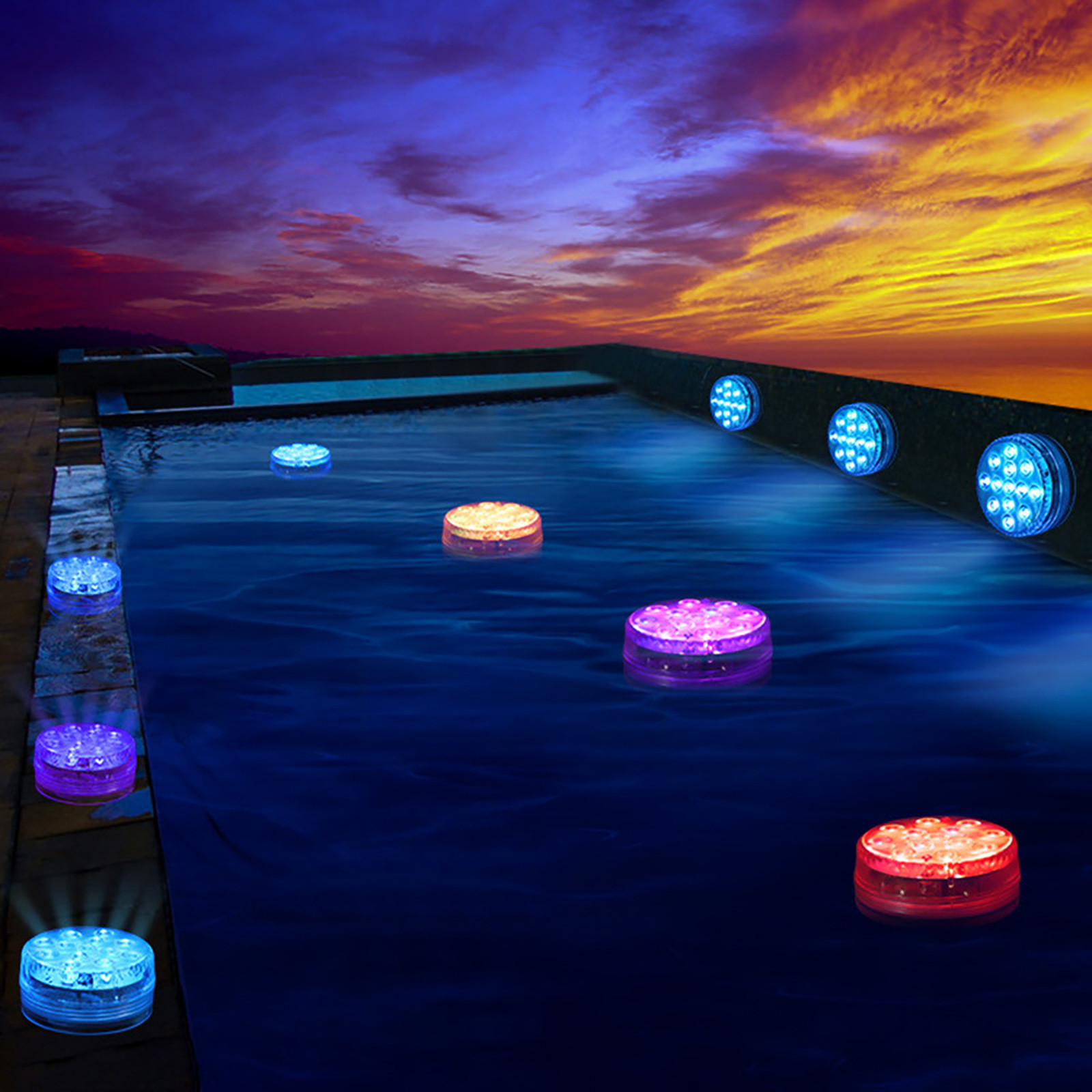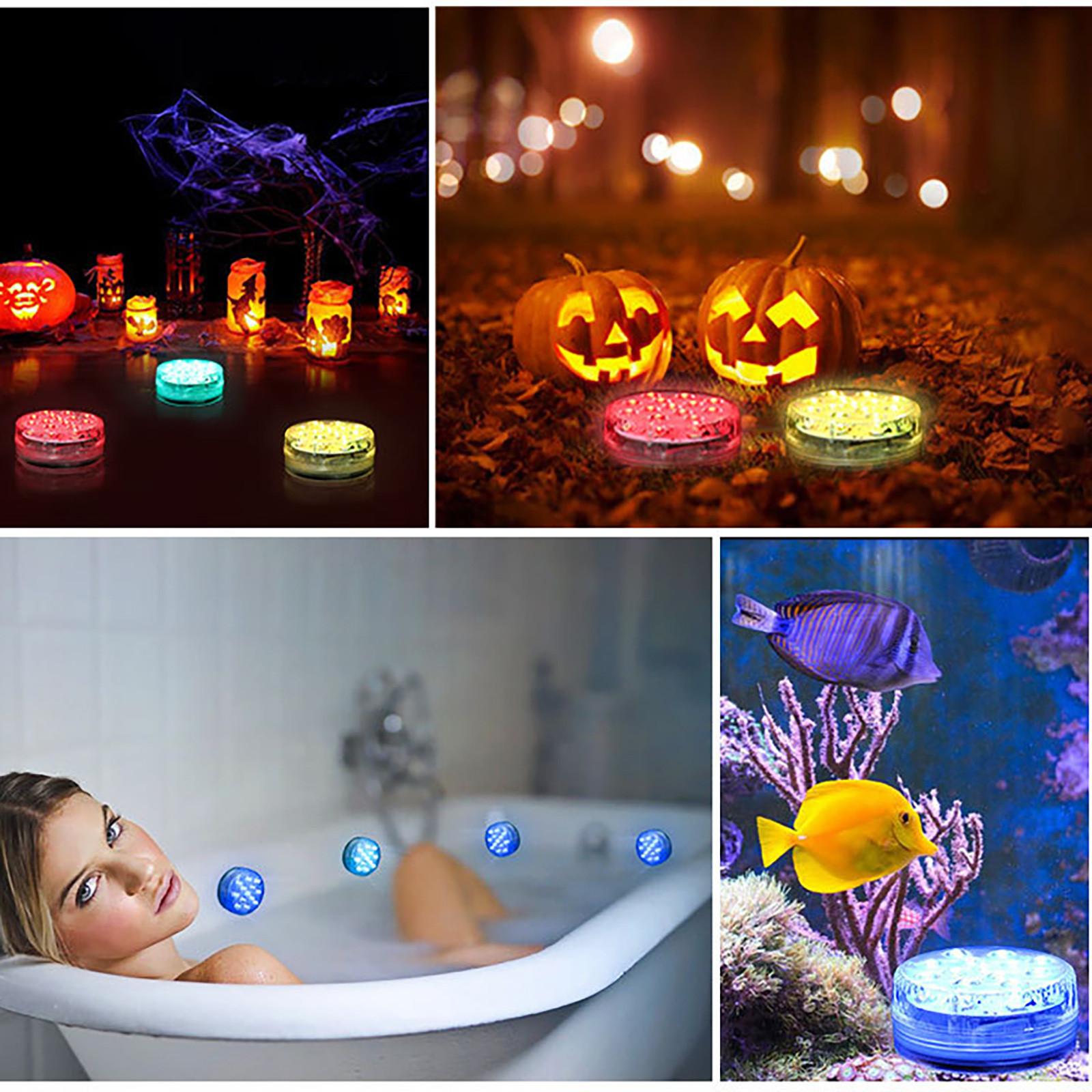[13 светодиодов, 40 часов длинного дисплея, более яркий более прочный]: водонепроницаемый светильник для пруда s имеет 13 высококачественных светодиодных бусин, он в 3 раза ярче и ярче, чем другой погружной светильник s, который имеет только 10 светодиодов. Светодиодный светильник питается от 3 батареек AA вместо батарей AAA, он работает 20 часов, В 3 раза мощнее и дольше, чем батарея AAA (6 часов). [16 цветов, множество вариантов, затемняемый светильник для бассейна под водой]: оптимизировано 16 динамических цветов, несколько режимов (вспышка, выцветание, гладкая), увеличено 3 кнопки таймера (2h, 4h, 6h), функция затемнения, дает вам больше выбора и создает более красивую атмосферу, Он сильно отличается от других открытых бассейнов в маркетинге (6 цветов, меньше вариантов режима вспышки). С функцией памяти, он запоминает ваши последние настройки, нет необходимости устанавливать снова.Нужно принести свои собственные батареи 3xAA